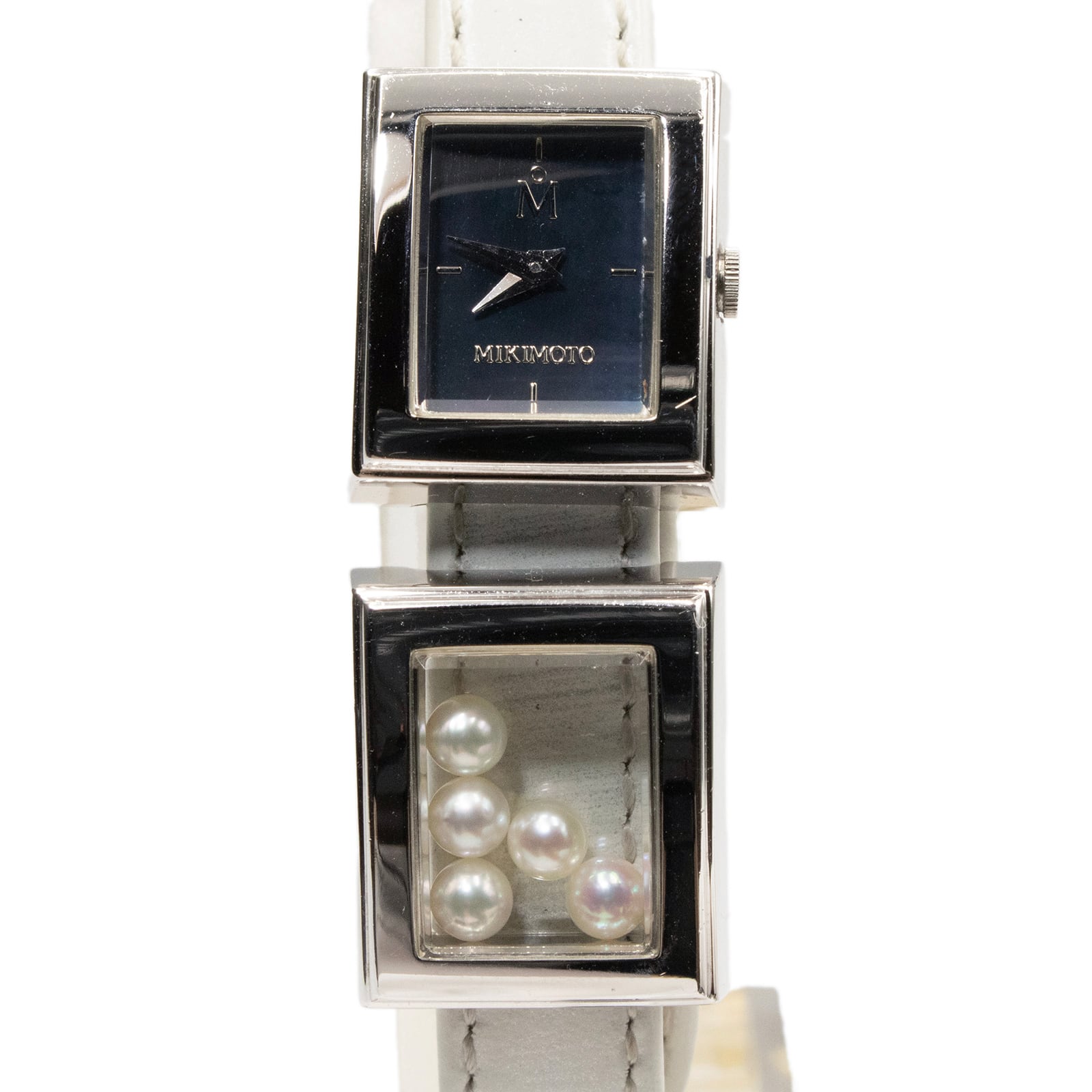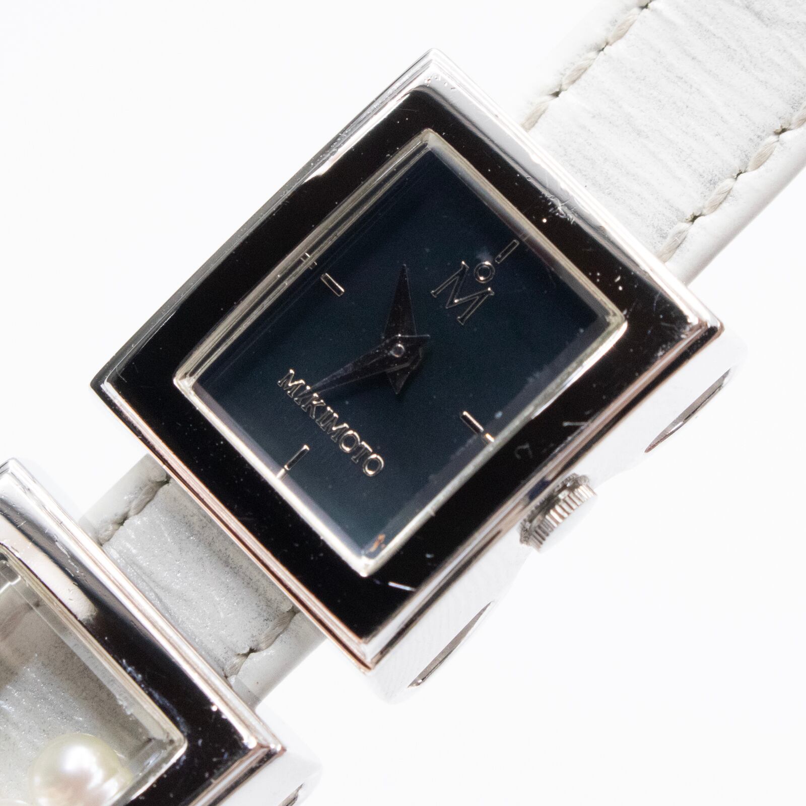 送料無料 ミキモト 腕時計 クオーツ NNS1321GF380 ブラックシェル 白 シルバー レディース ドレスウォッチ パール 真珠 黒蝶貝盤 レア Q022