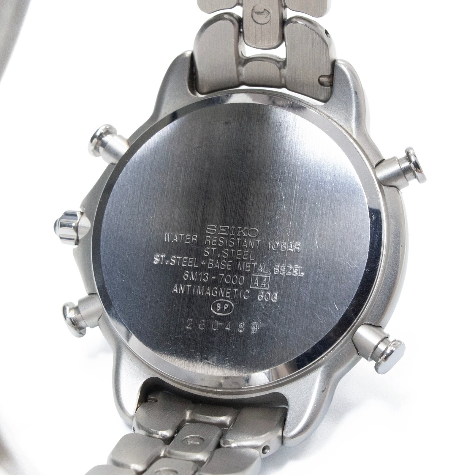 送料無料 セイコー 腕時計 PRESAGE プレサージュ 6M13-7000 シルバー グレー メンズ 92年ヴィンテージ 多機能 永久カレンダー 珍しい Q014