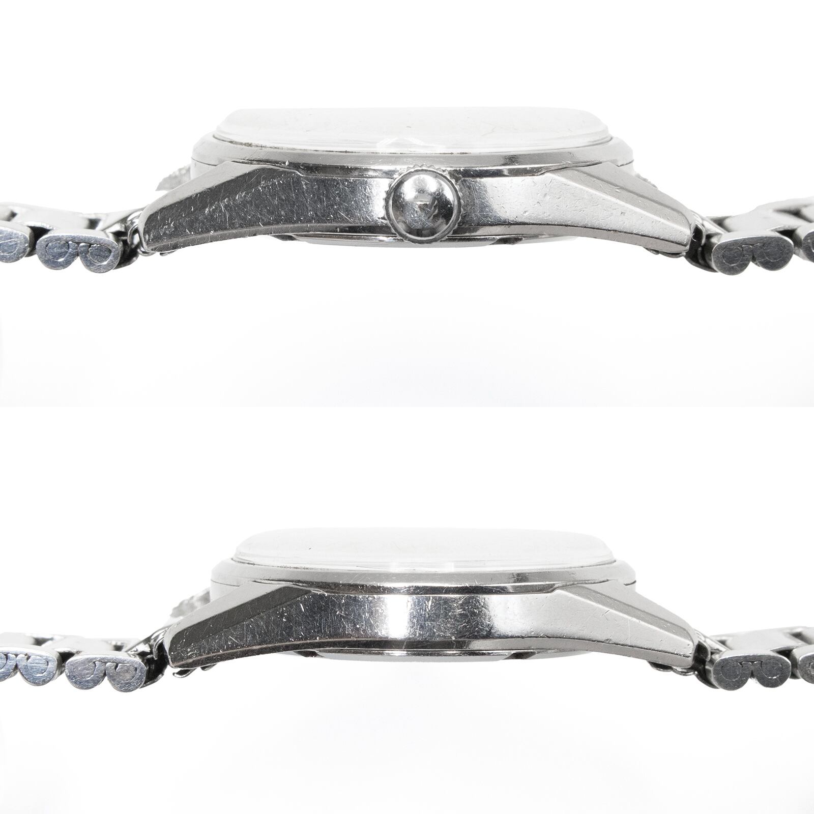 文字盤にヤケ(中)、純正ブレスに薄擦れ・緩み(中)、風防に傷(小)、使用感(中)