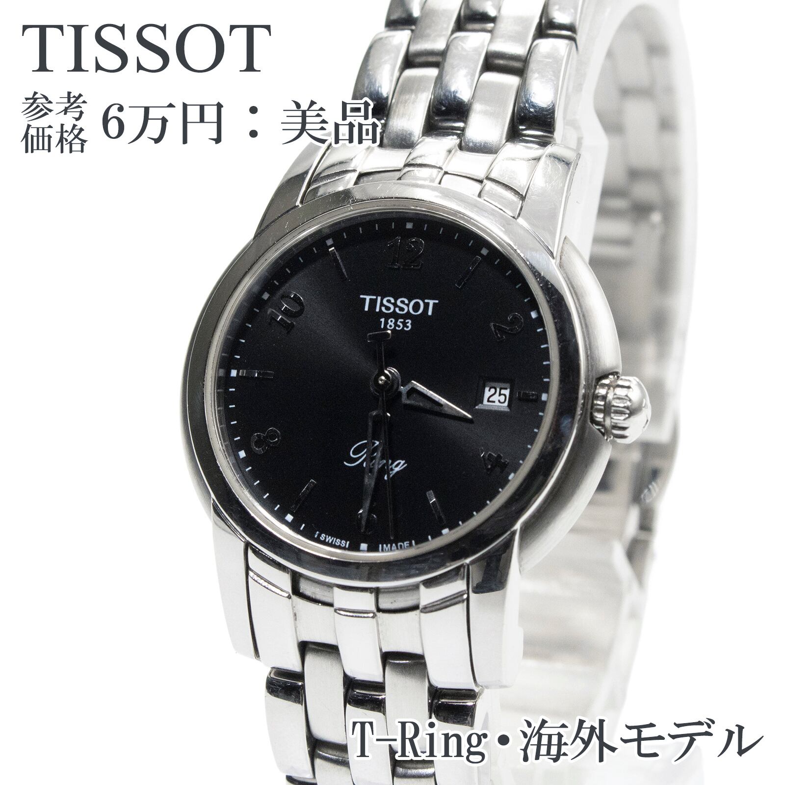 送料無料 ティソ 腕時計 クオーツ T-Ring リング R420/320 ブラック シルバー レディースウォッチ ロゴ 海外モデル クラシック 綺麗 Q019