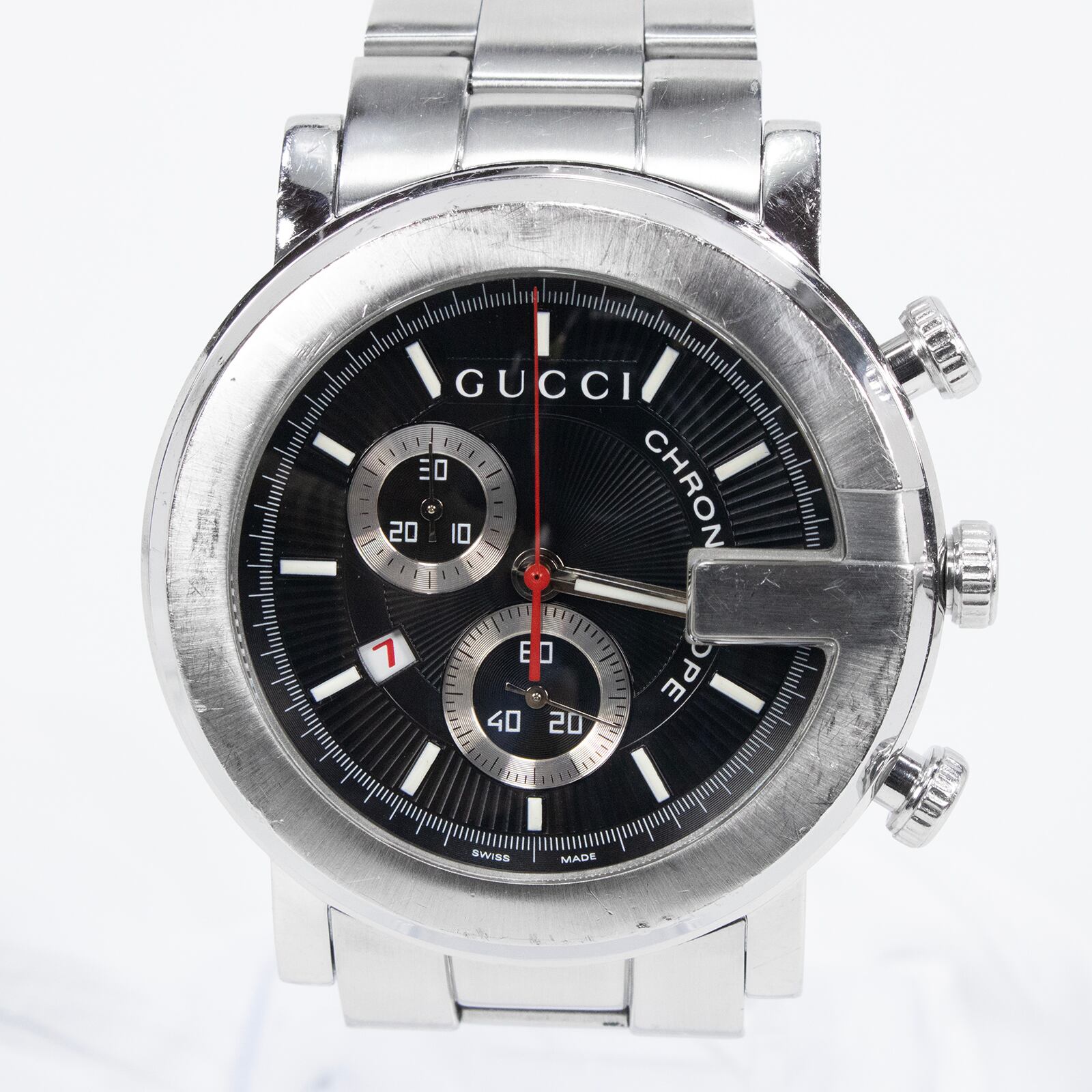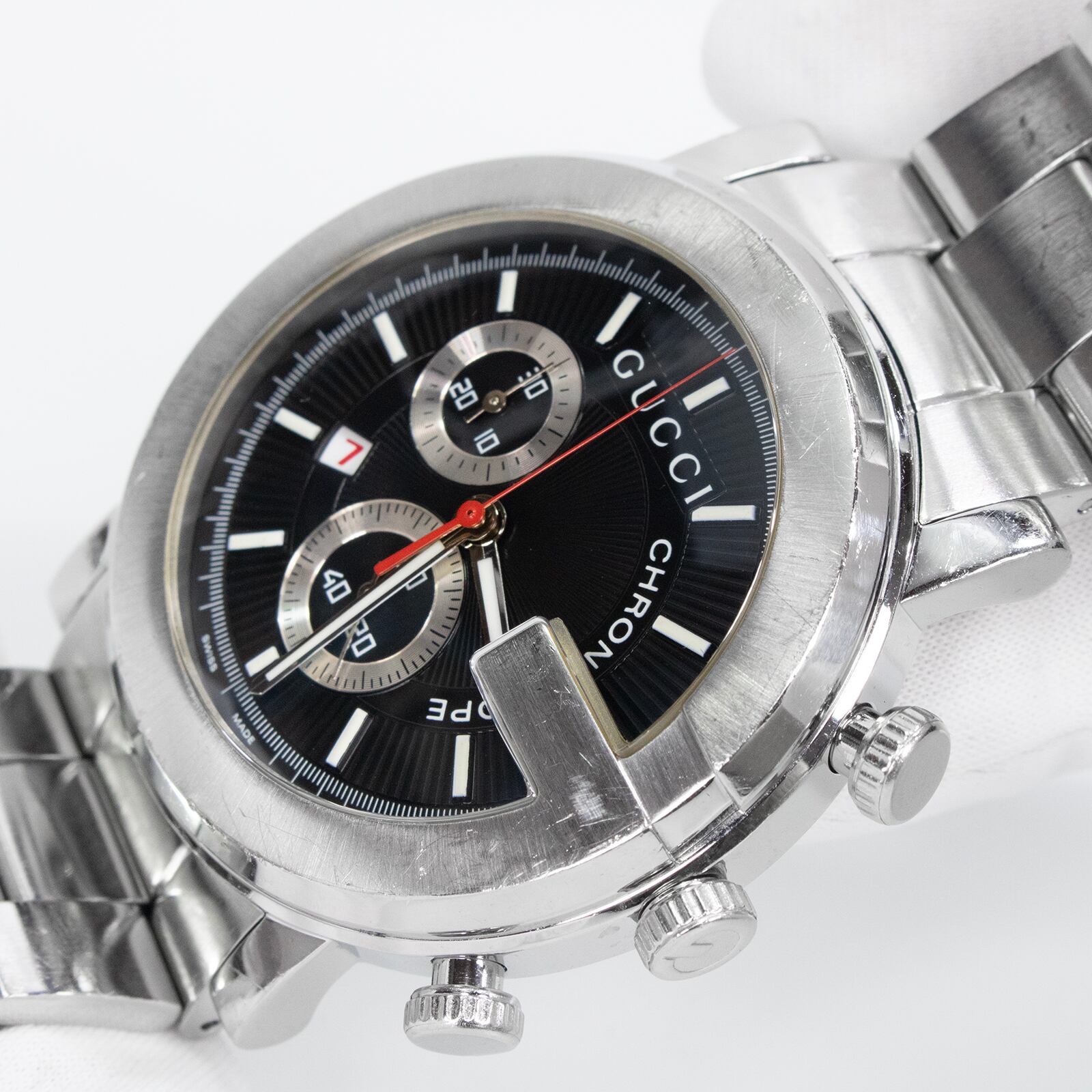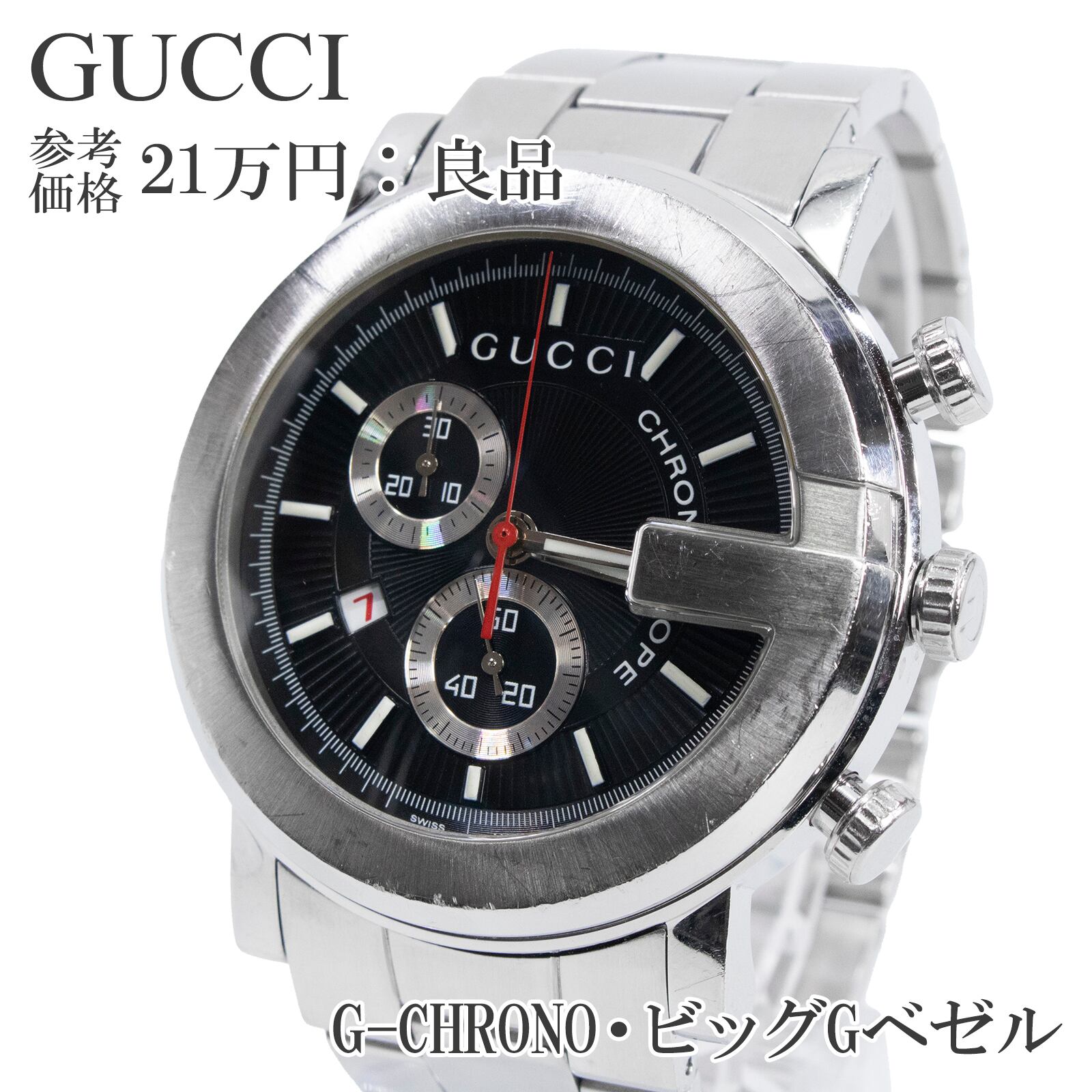 送料無料 グッチ 腕時計 クオーツ 101M G-CHRONO YA101309 メンズウォッチ ブラック シルバー ホワイト ロゴ マーク ビッグGベゼル X051