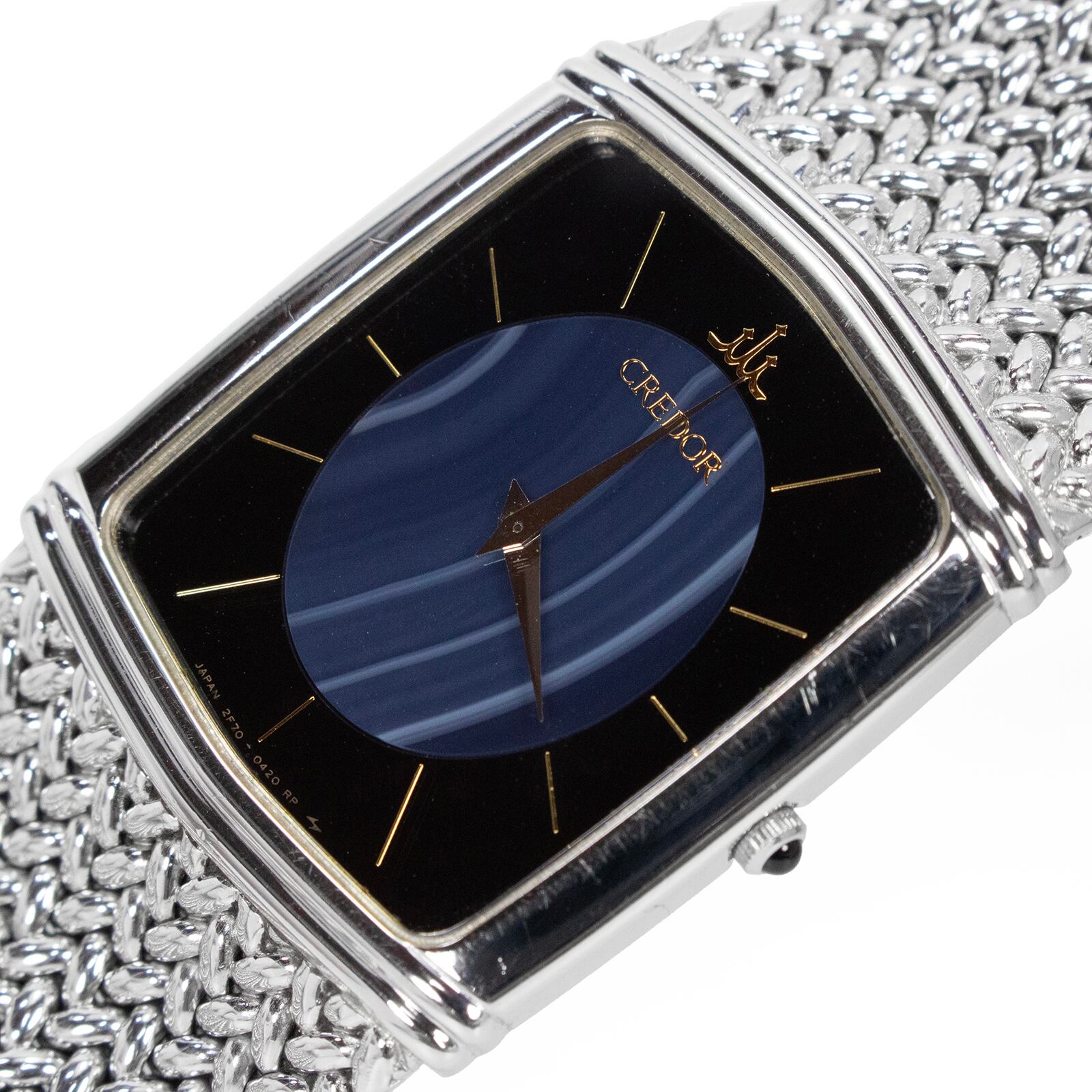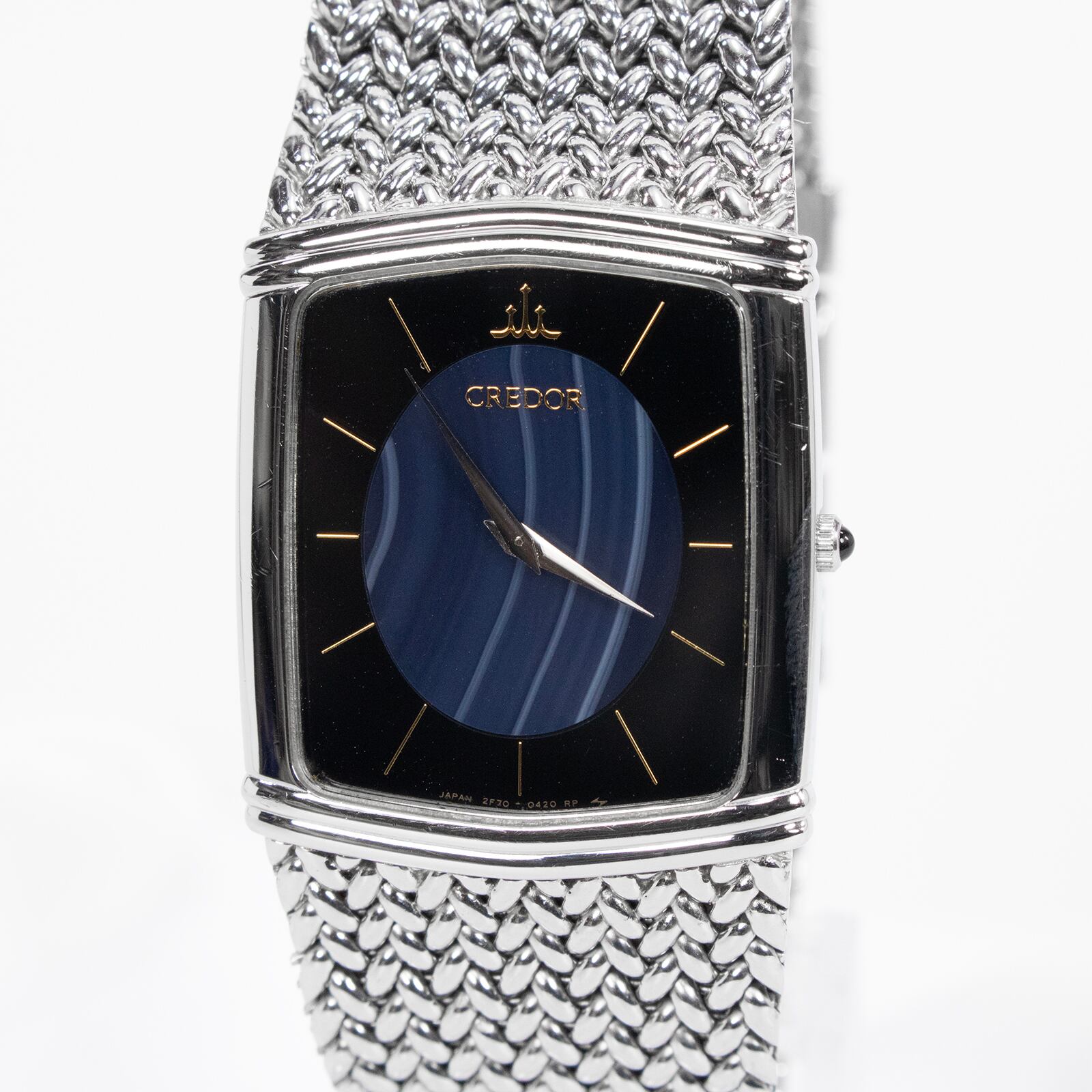 送料無料 セイコー 腕時計 クオーツ CREDOR 2F70 メンズ ドレスウォッチ ブラック ブルー ロゴ マーク 天然石盤 ブルーメノウ 綺麗 X052
