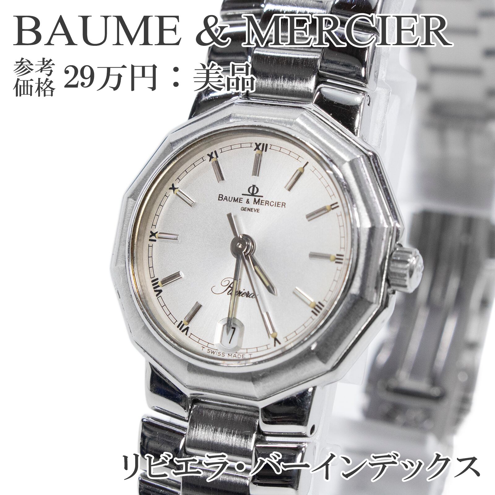 送料無料 ボームアンドメルシエ 腕時計 クオーツ Riviera リビエラ レディース シルバー ロゴ マーク バーインデックス 高級 綺麗 X053