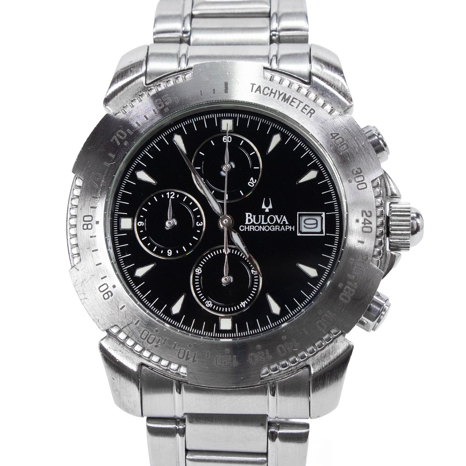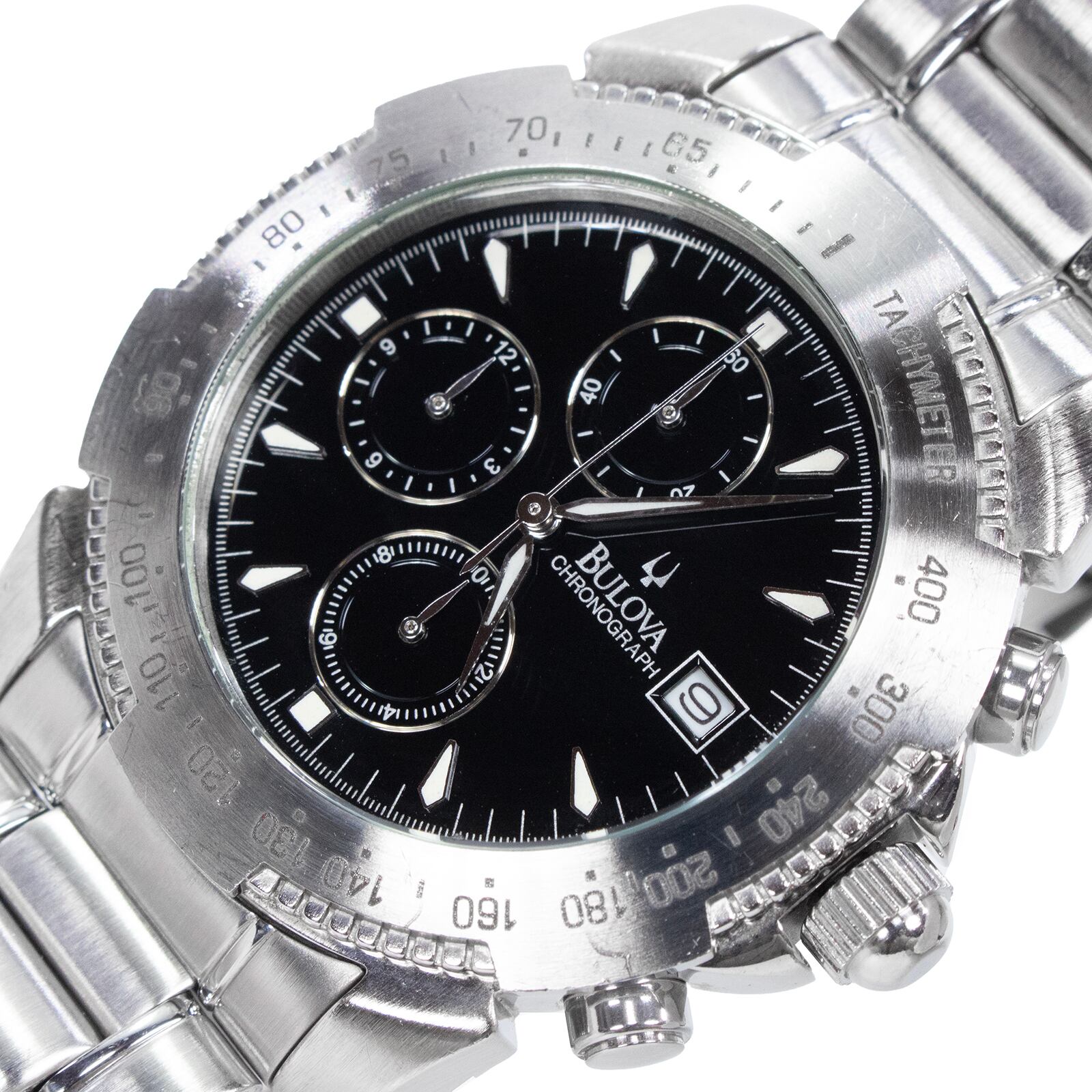 送料無料 ブローバ 腕時計 クオーツ メンズウォッチ ブラック ホワイト シルバー ロゴ マーク ヴィンテージ クロノグラフ スモセコ X054