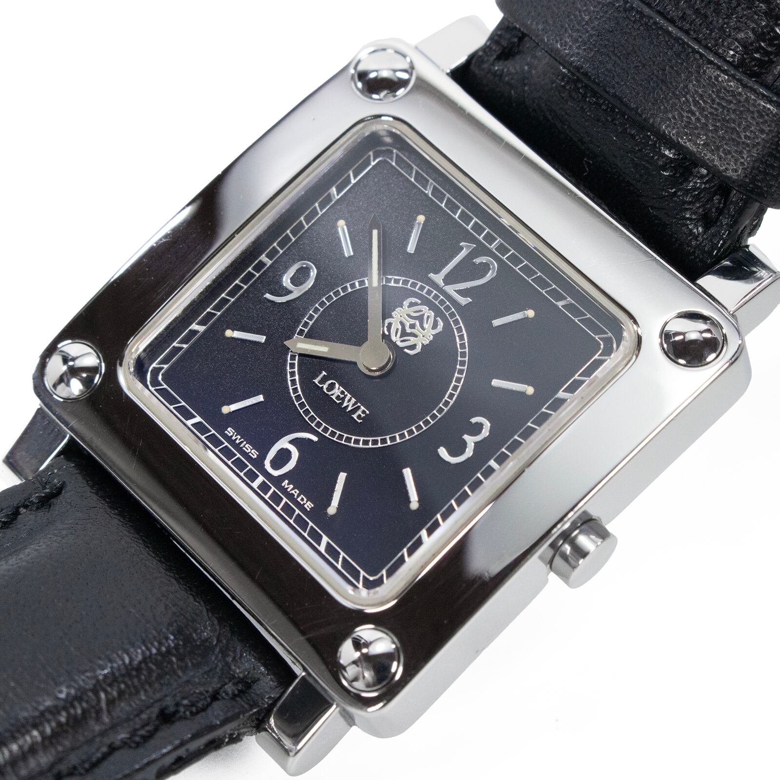 送料無料 ロエベ 腕時計 クオーツ 150周年記念モデル メンズ ボーイズウォッチ ブラック シルバー ロゴ アナグラム 希少 人気 綺麗 X057