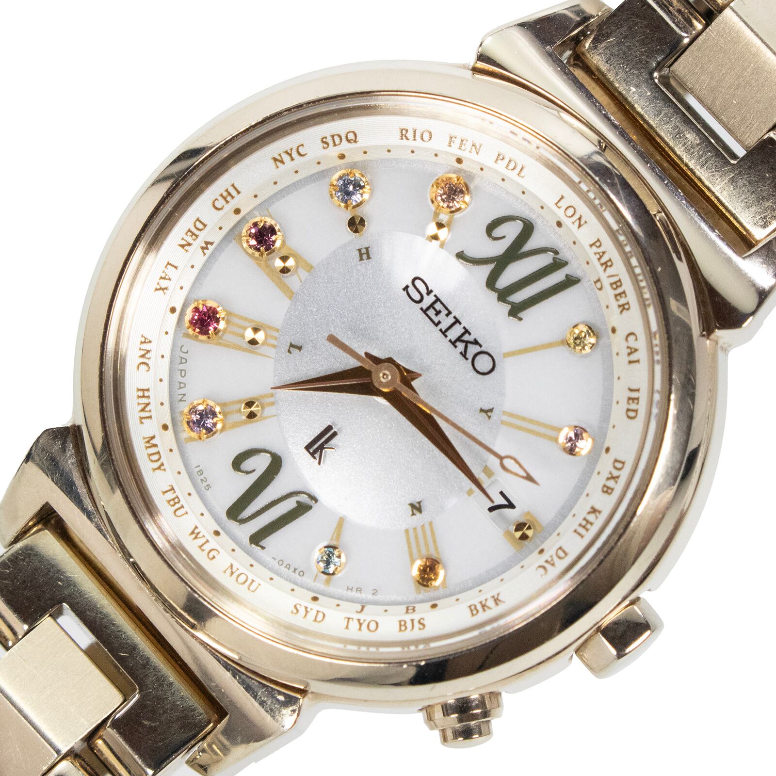 送料無料 セイコー 腕時計 ソーラー電波 ルキア ラッキーパスポート 1B25-0AN0 レディース 白 ゴールド 2016年夏 限定3000本 天然石 X059