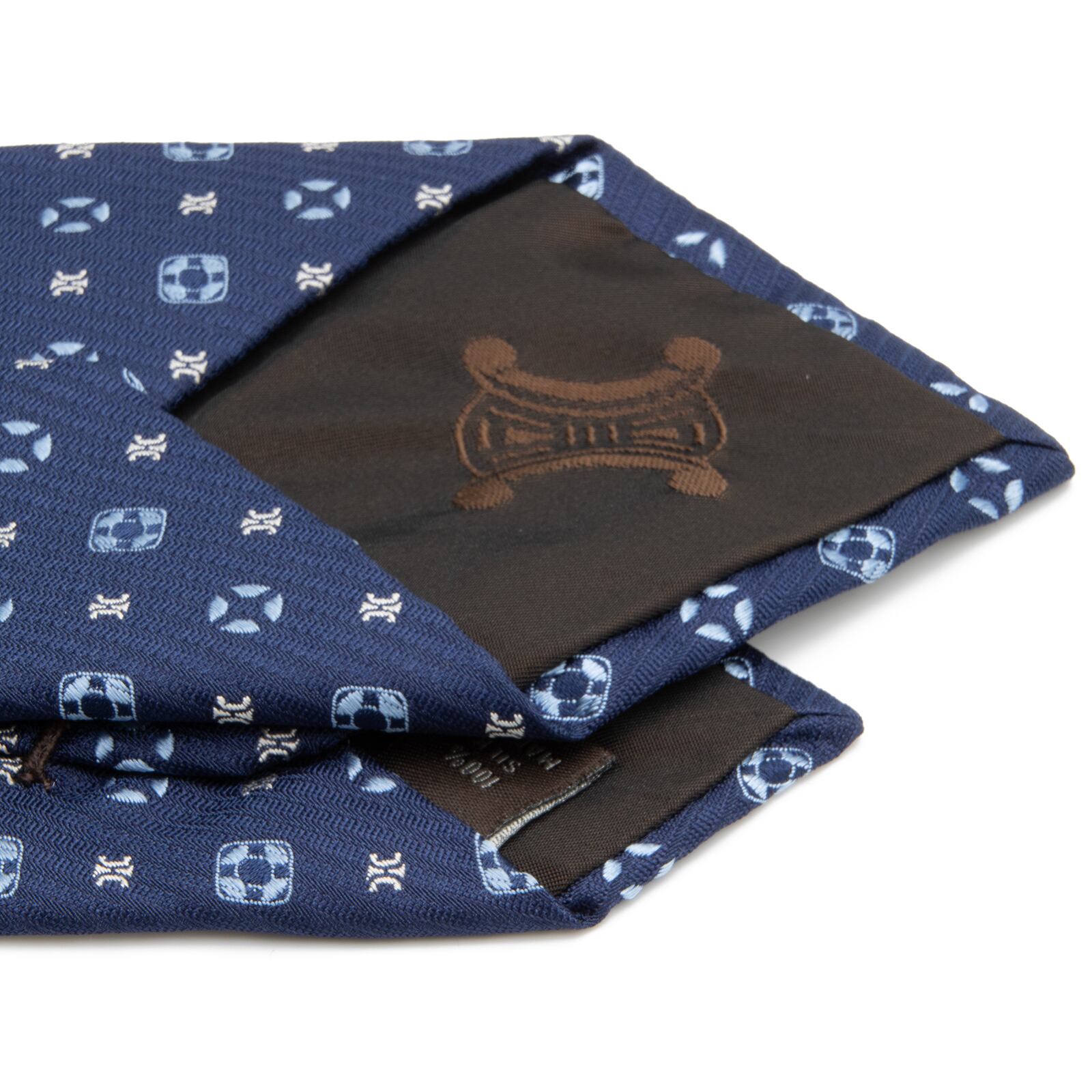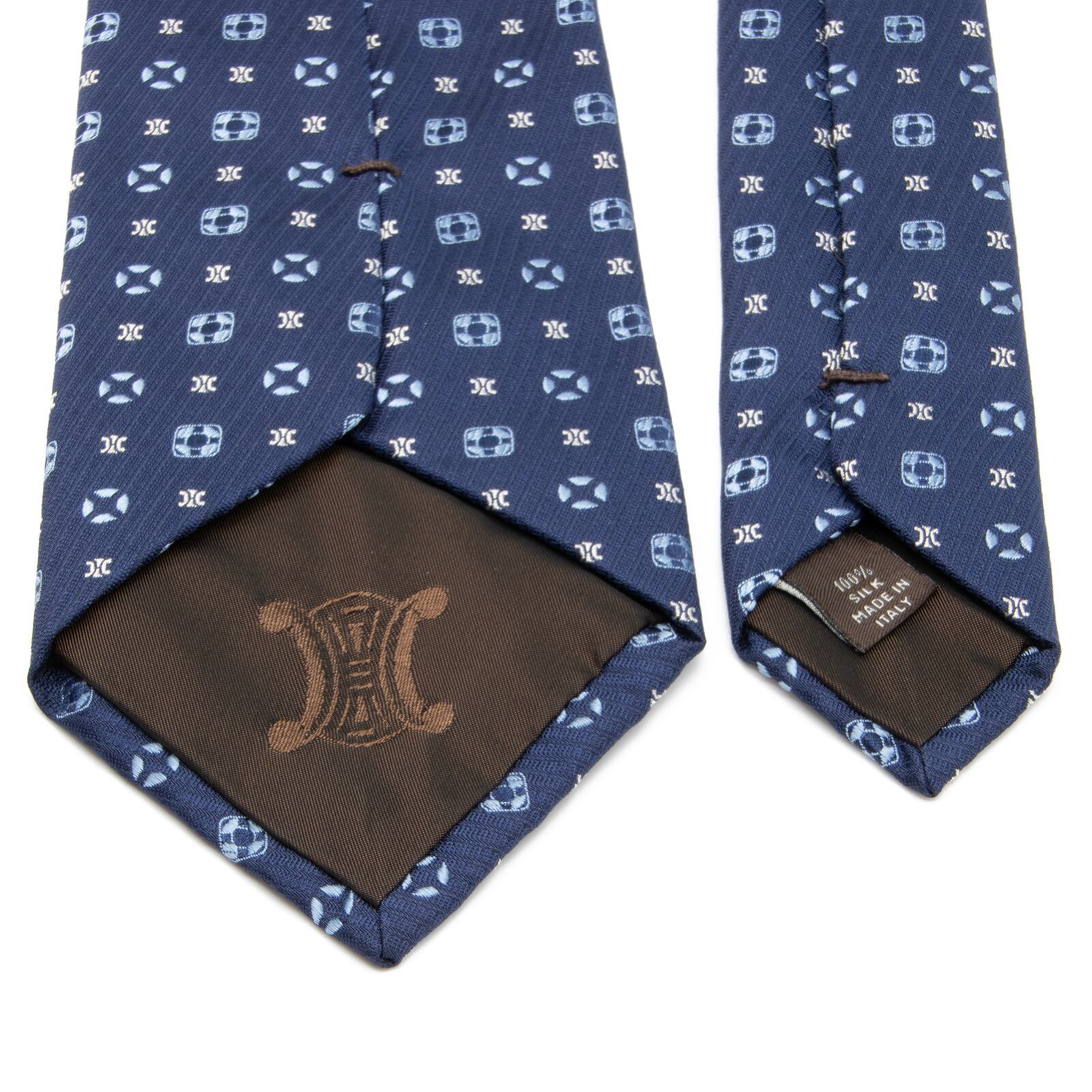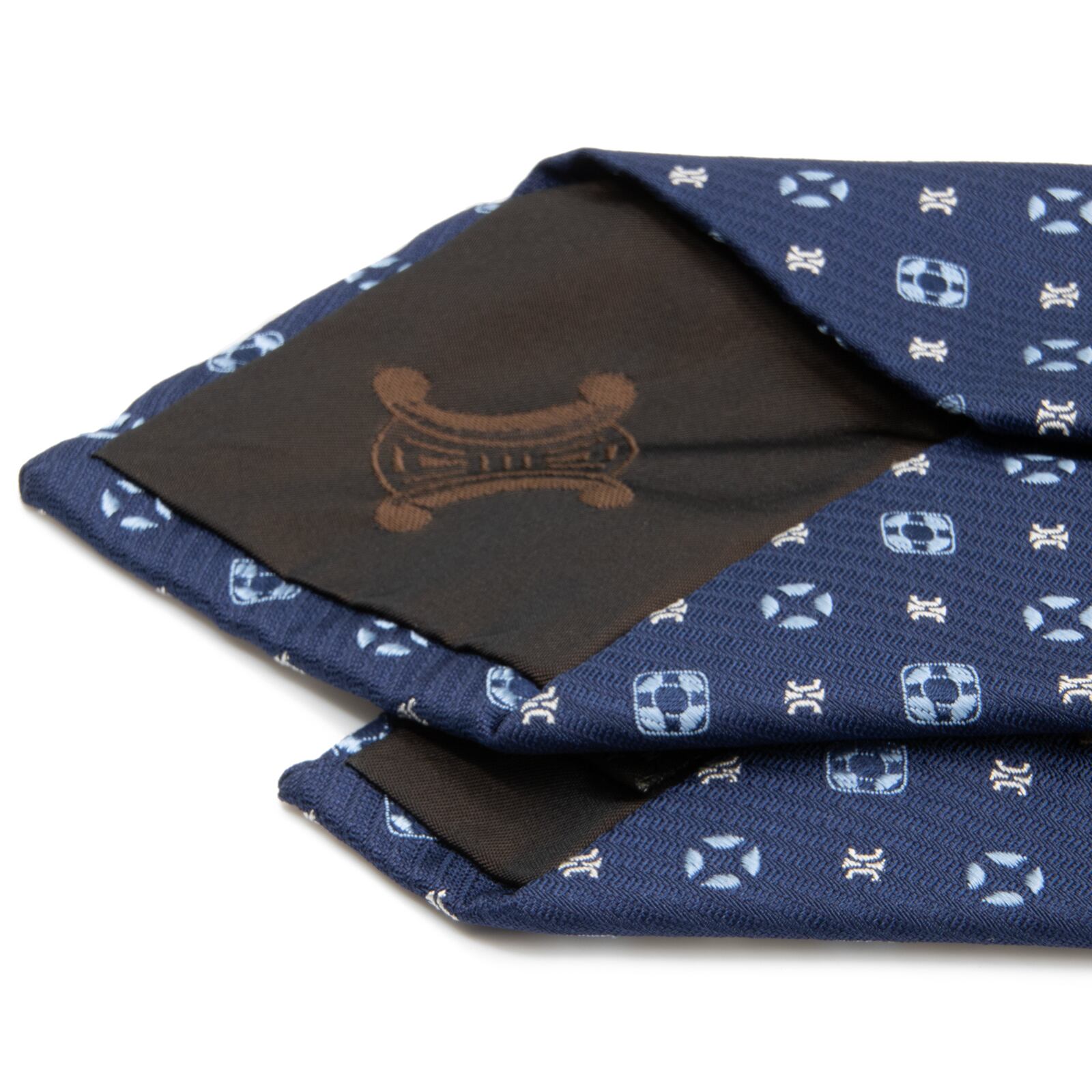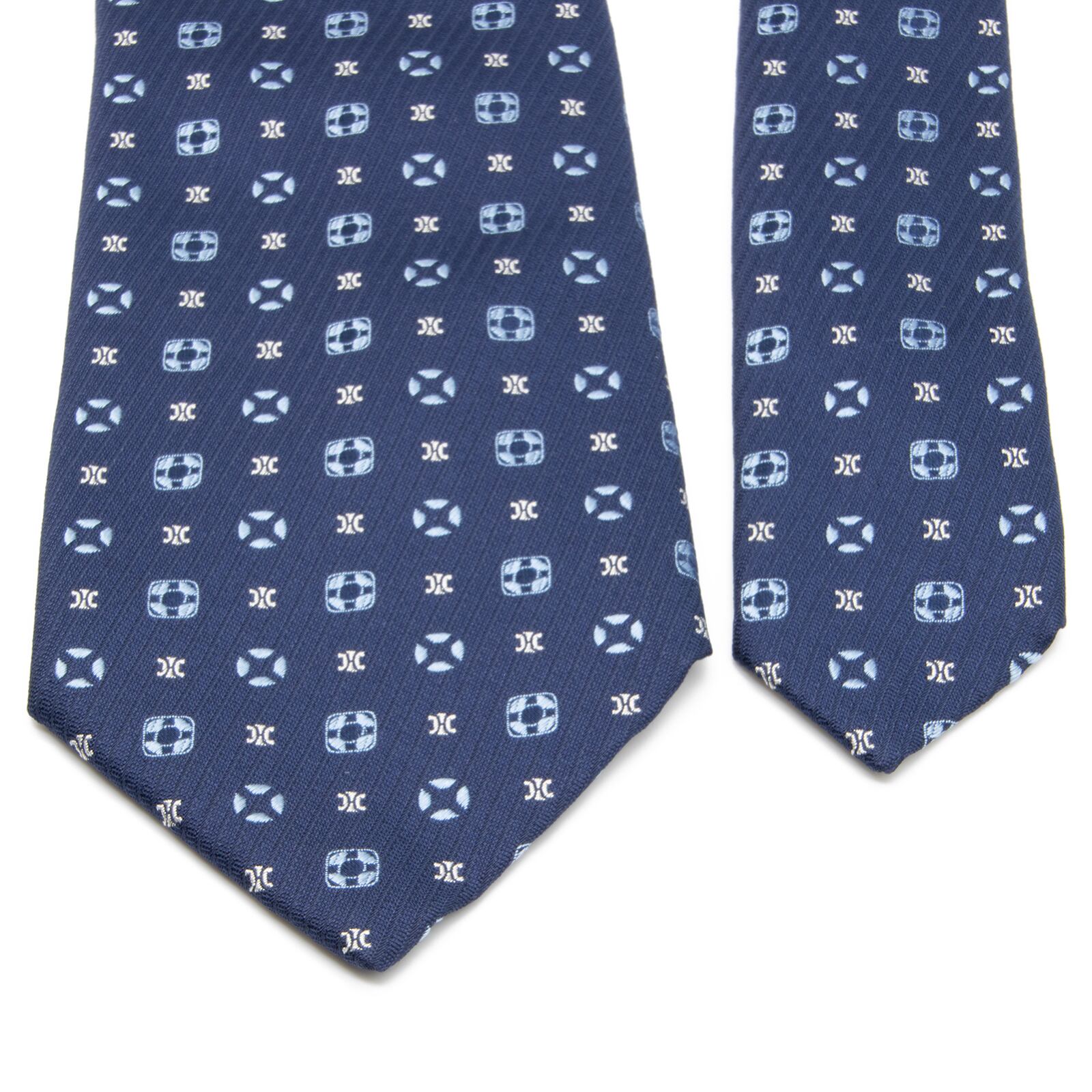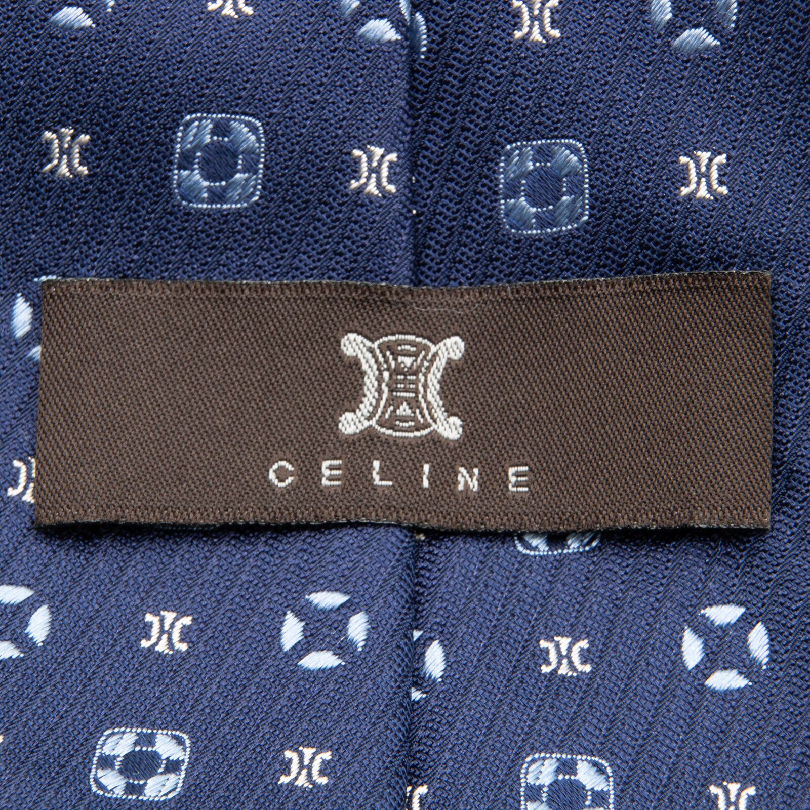 送料無料 セリーヌ ネクタイ 新品 ワイド ジャガードタイ シルク ネイビーブルー シルバー ブランド マカダム ブラゾン ロゴ マーク N066