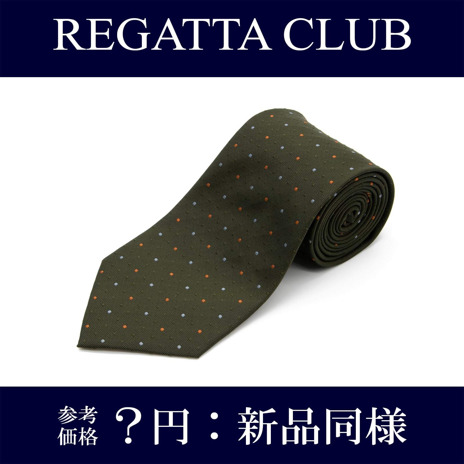 送料無料 レガッタクラブ ネクタイ 新品同様 ワイド ジャガードタイ シルク 緑 グリーン 青 ブルー オレンジ ブランド ドット 綺麗 N081