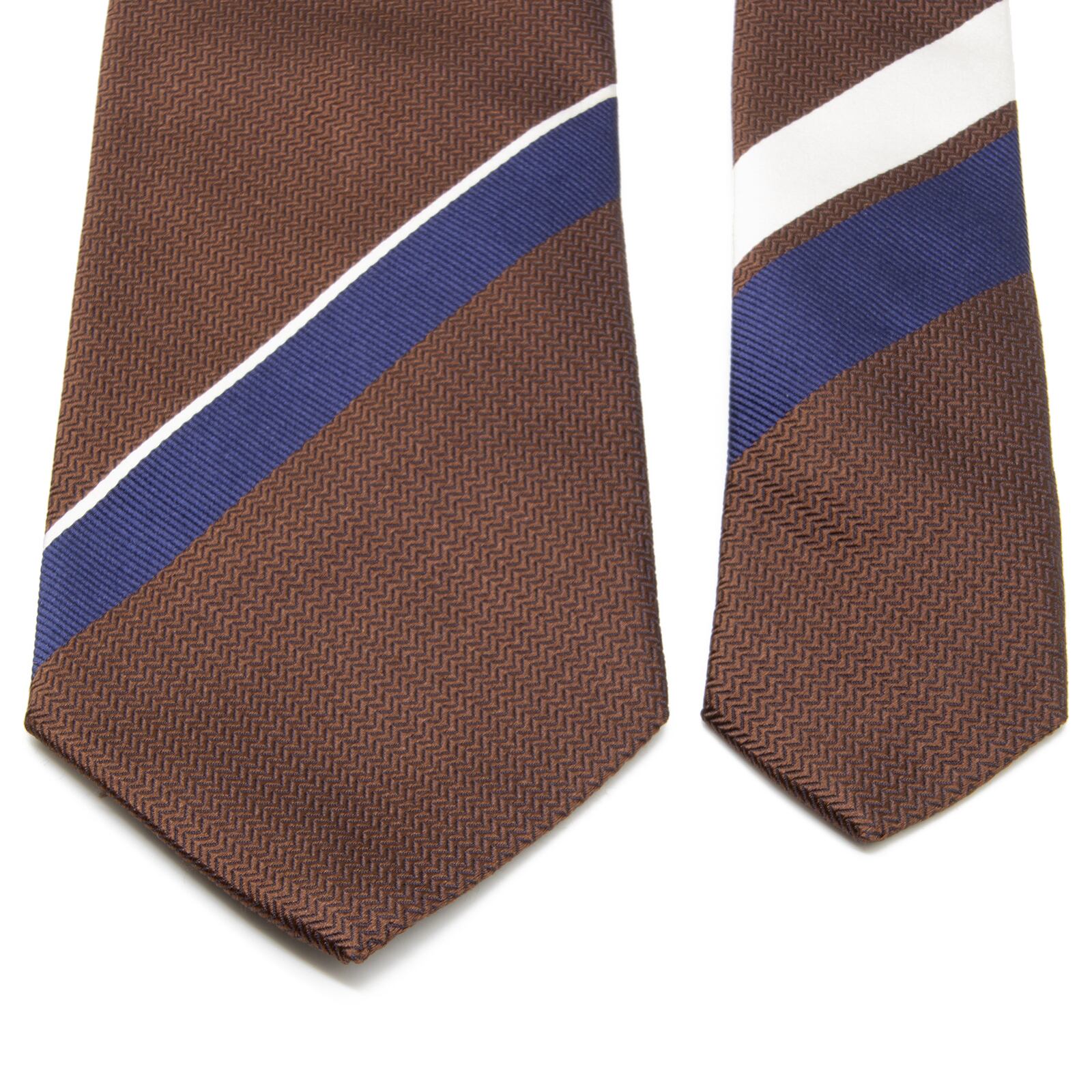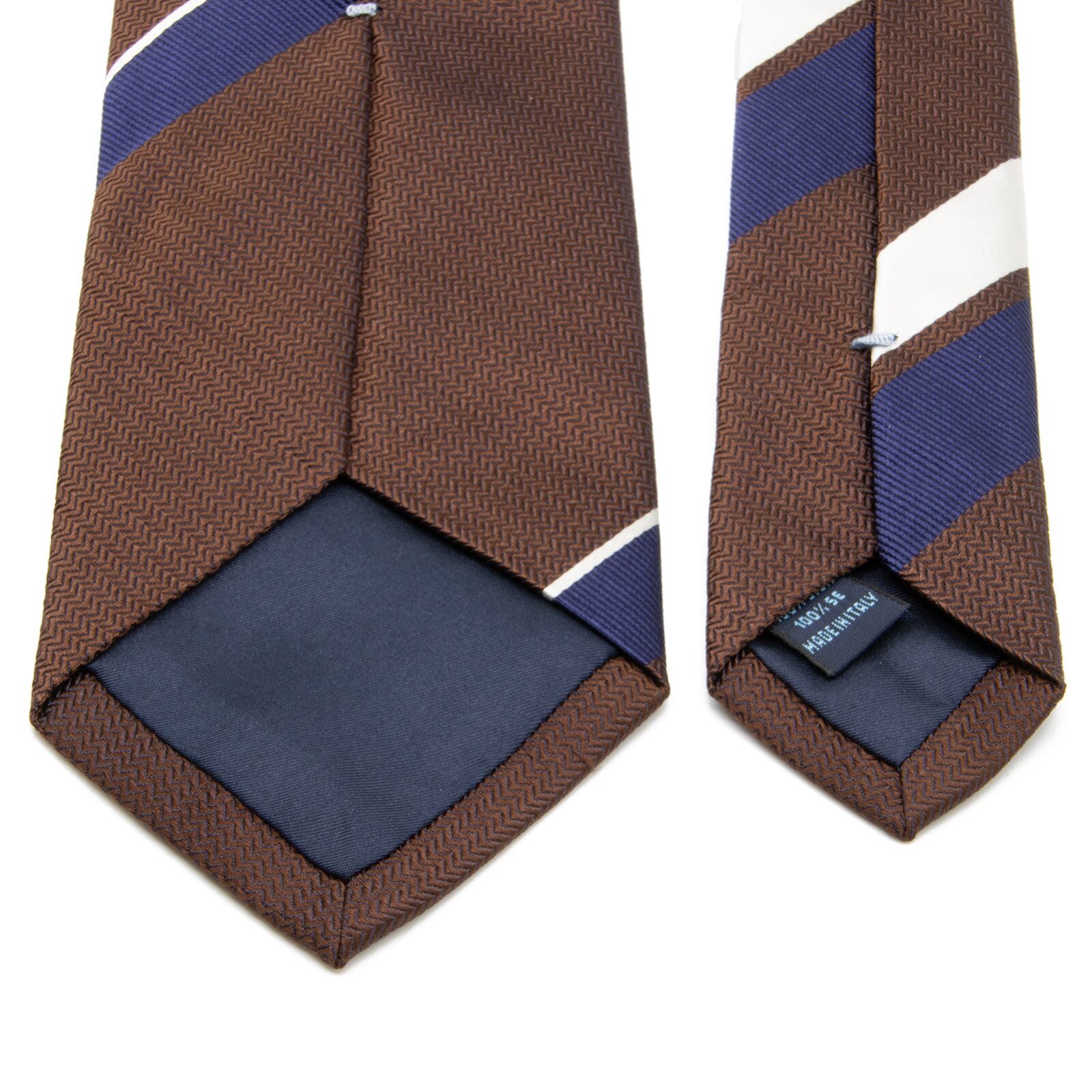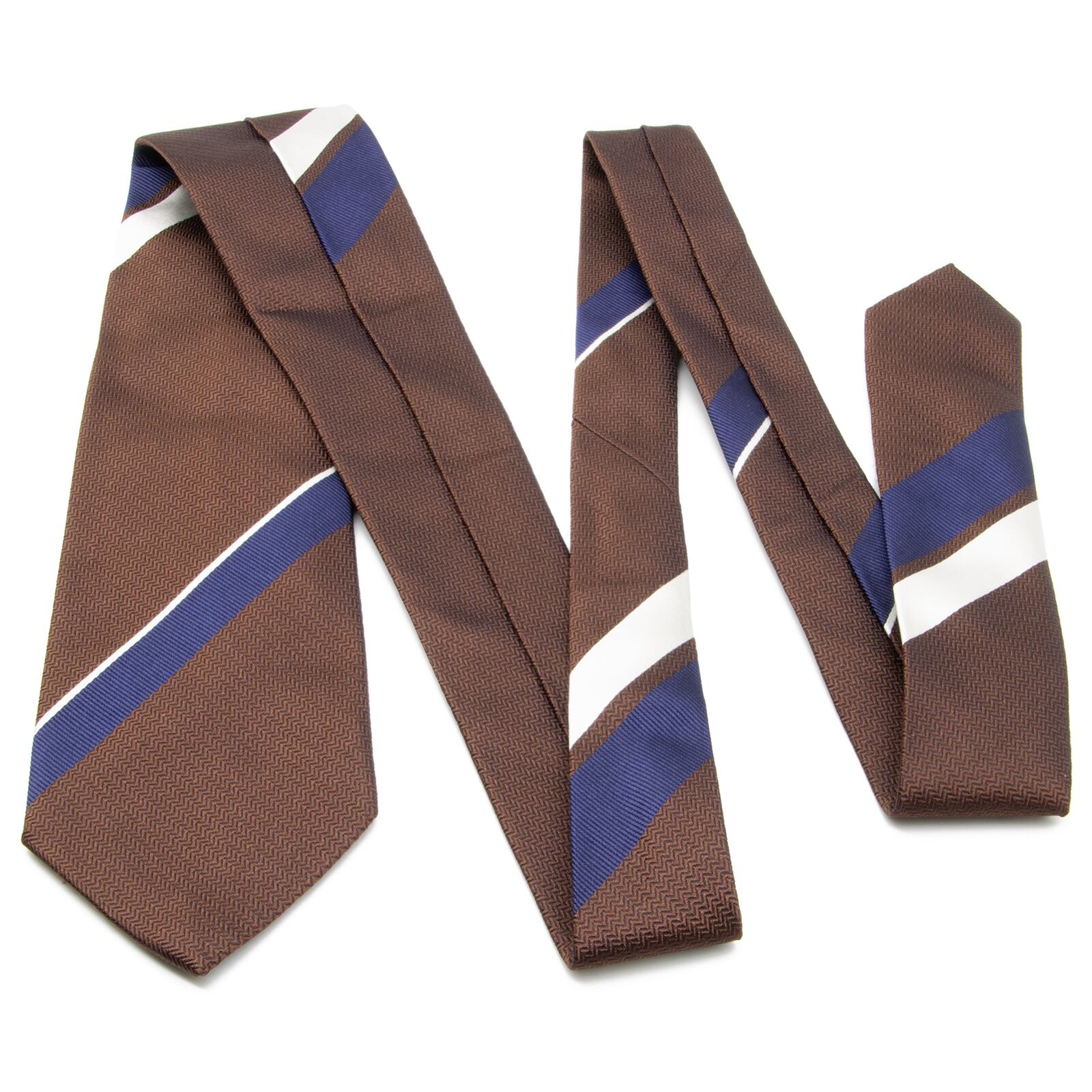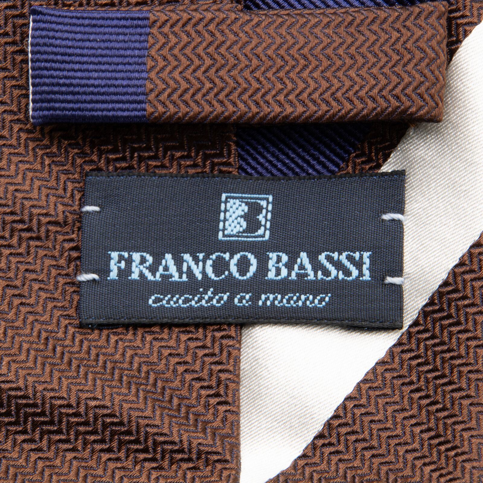 送料無料 フランコバッシ ネクタイ 新品同様 レギュラー ジャガードタイ シルク 茶色 ブラウン 青 ブルー 白 ブランド ストライプ N090