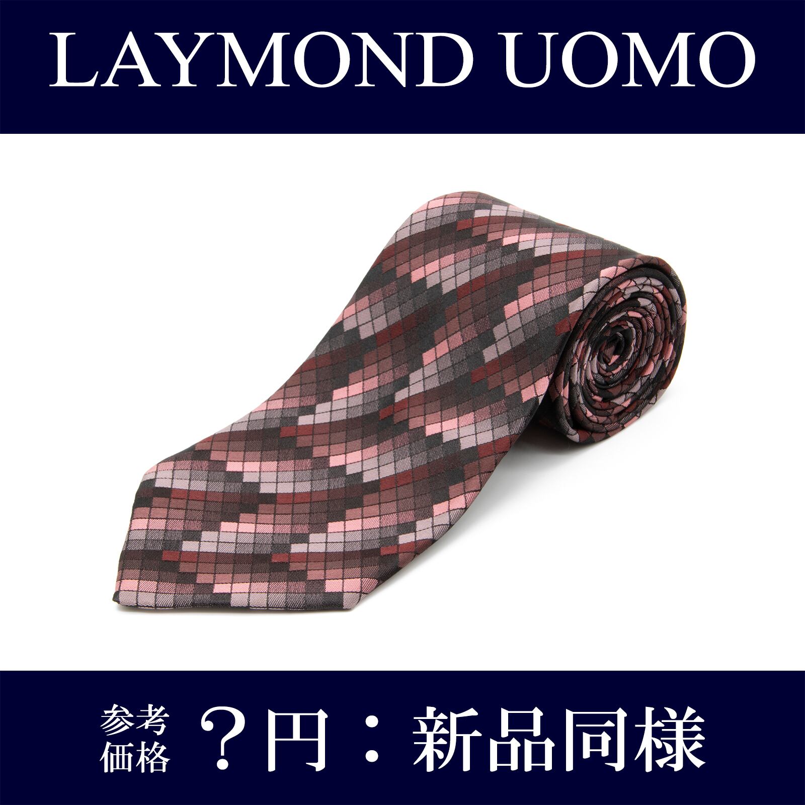 送料無料 レイモンドウォモ ネクタイ 新品同様 ジャガードタイ シルク ピンク ボルドー 黒 ブラック シルバー ブランド タイル 綺麗 N097