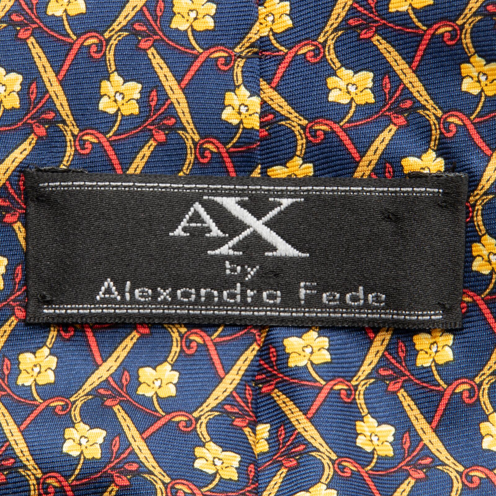 送料無料 アレクサンドラフェデ ネクタイ 新品 ワイドタイ シルク ネイビーブルー 黄色 イエロー 赤 レッド ブランド 花 イタリア製 N104