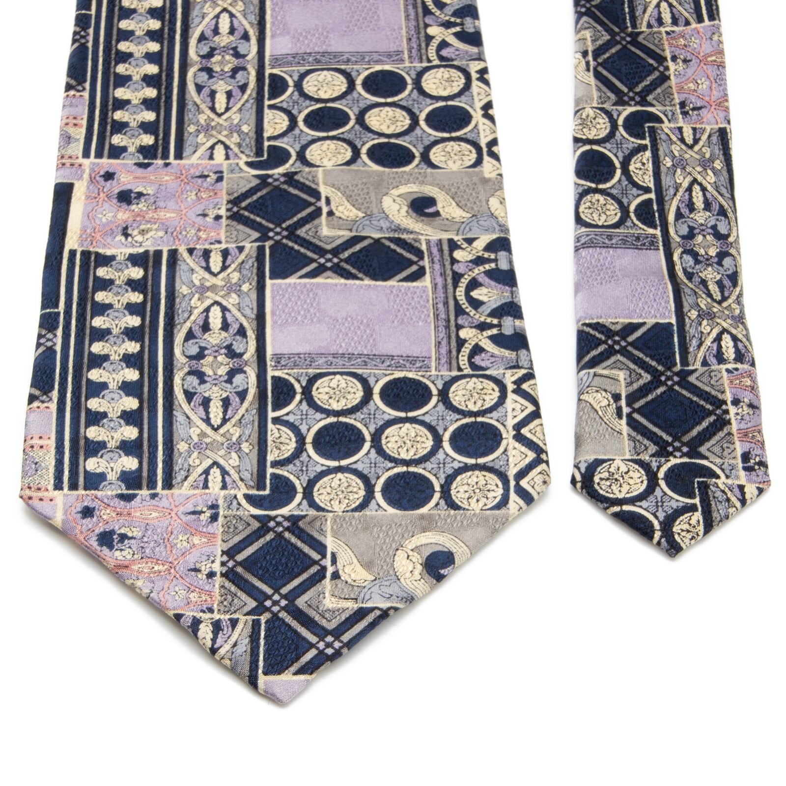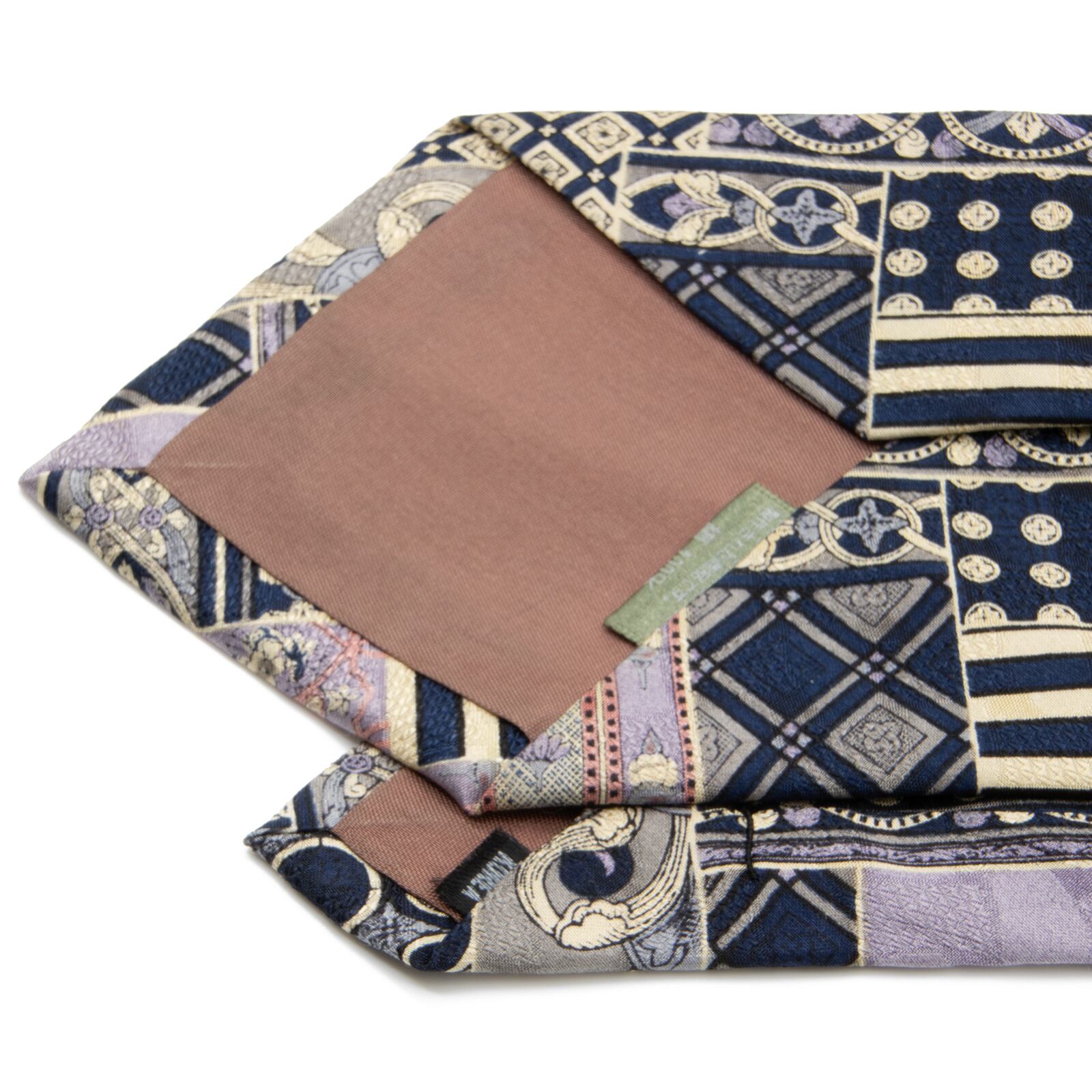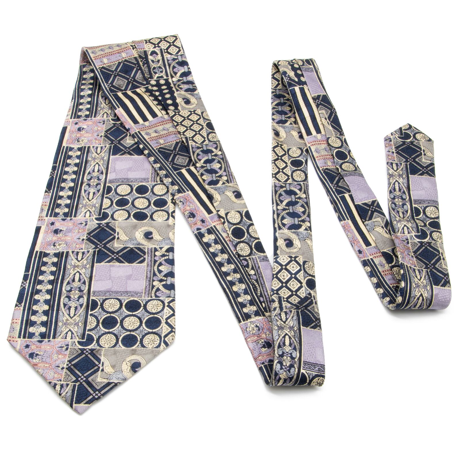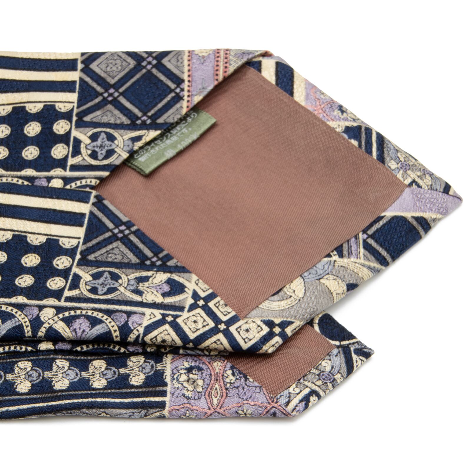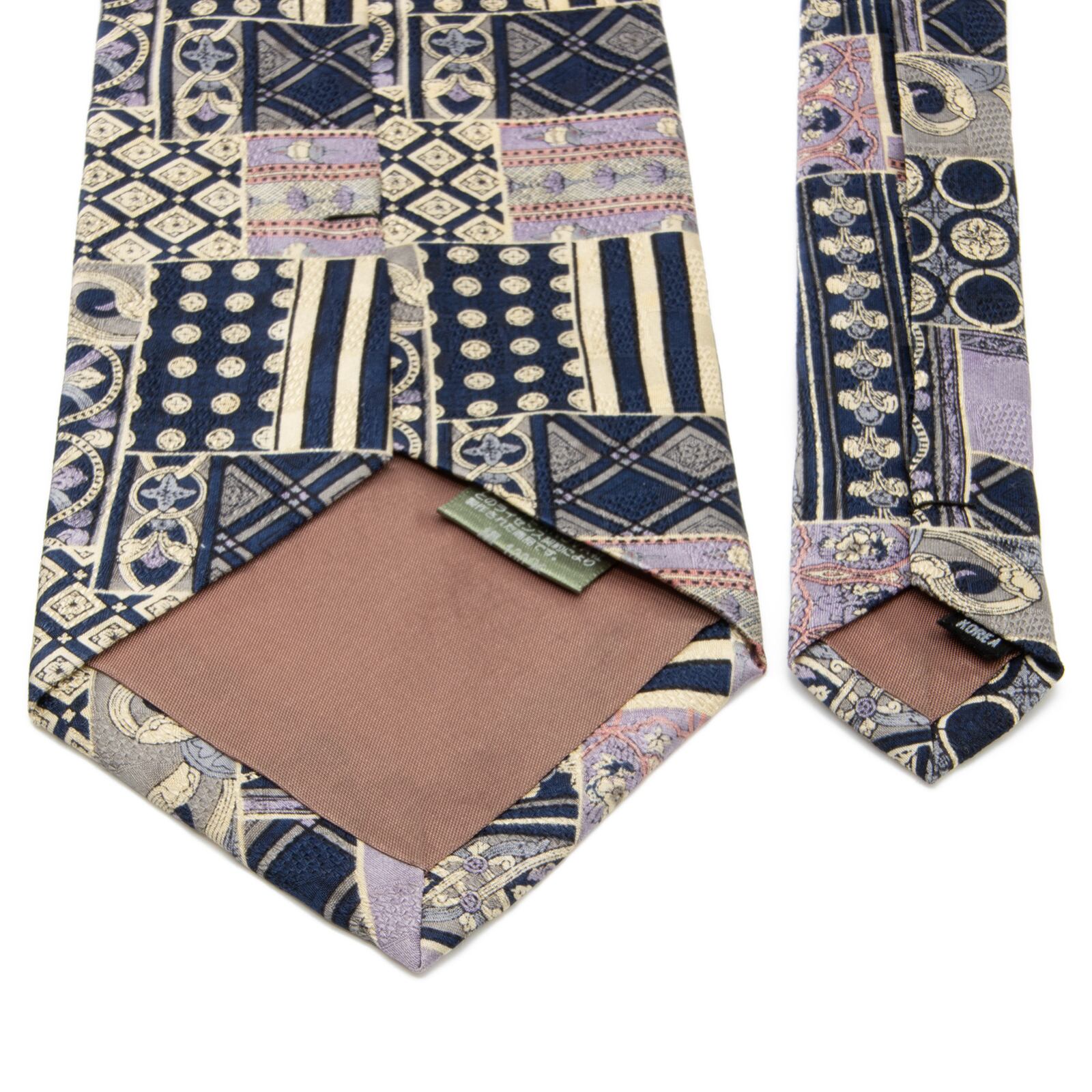 送料無料 S.GATTI ネクタイ 新品同様 ワイドタイ シルク フレンチグレー ネイビーブルー 紫 パープル ブランド レア 綺麗 カジュアル N168