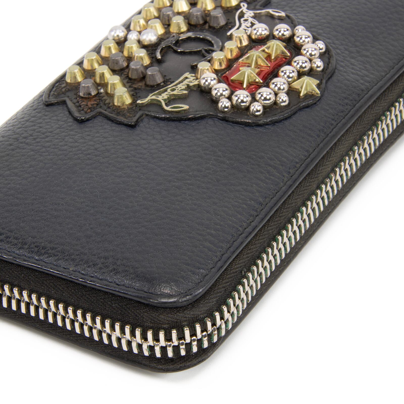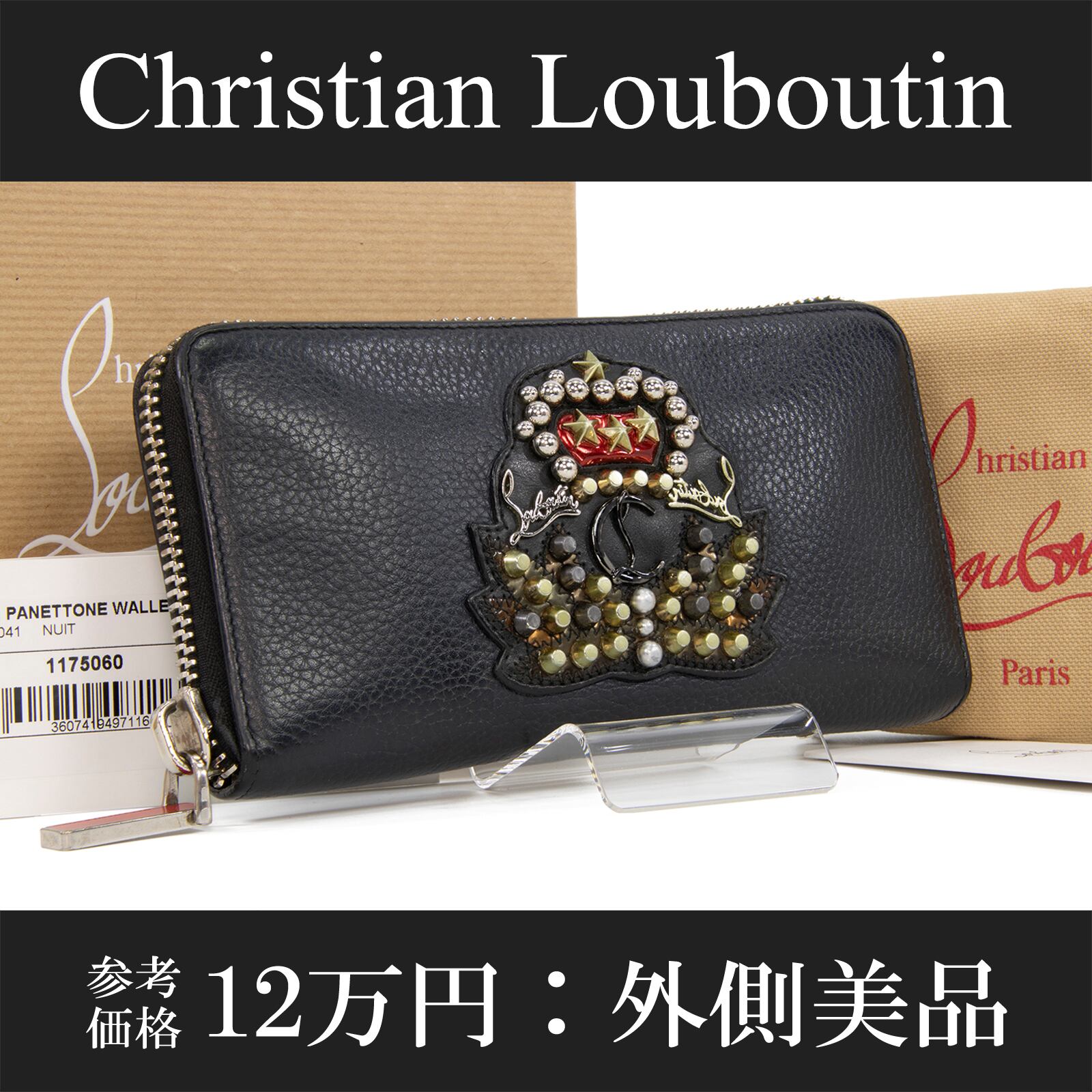 本物 送料無料 ルブタン 長財布 ラウンドファスナー ジップタイプ メンズ レディース パネトーネ ブラック スタッズ クラウン レア D174