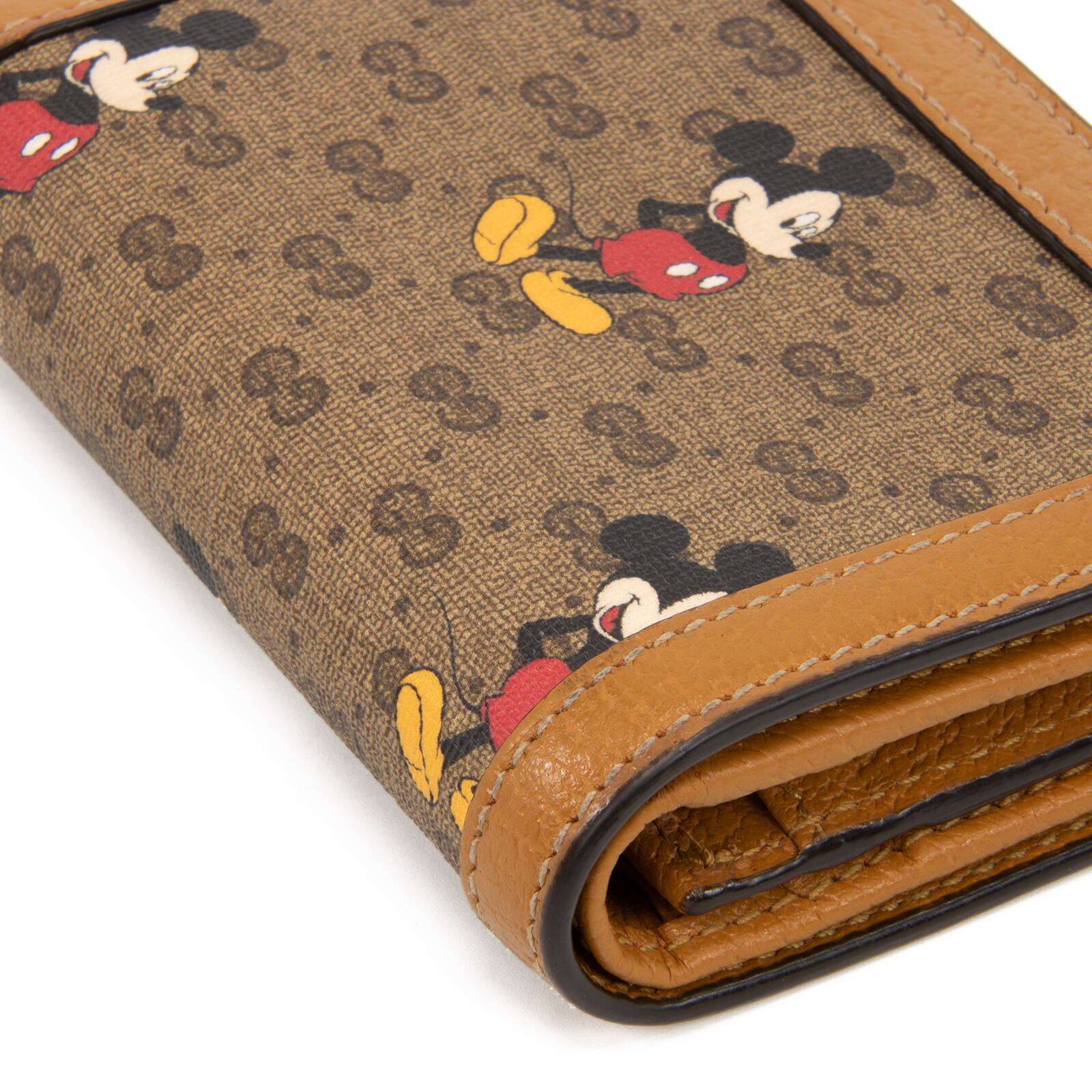 本物 送料無料 グッチ 短財布 二つ折り財布 メンズ レディース ディズニーコラボ GGスプリーム ブラウン ミッキー GGロゴ 総柄 綺麗 D175