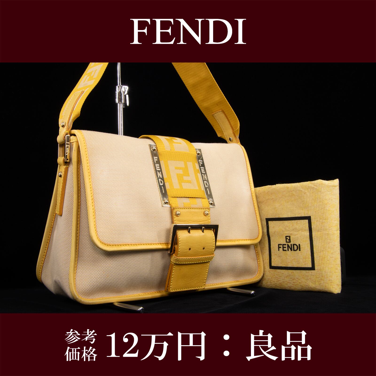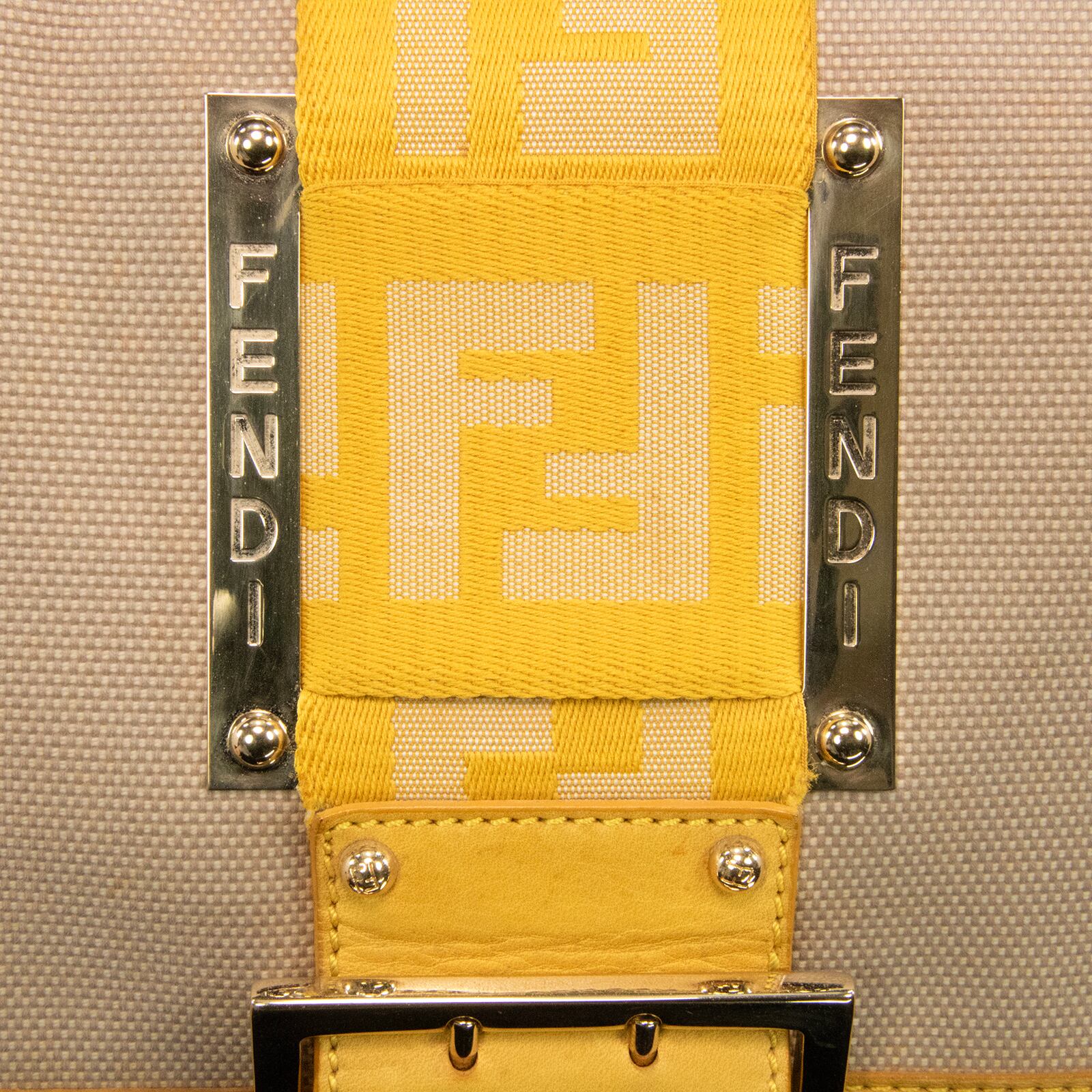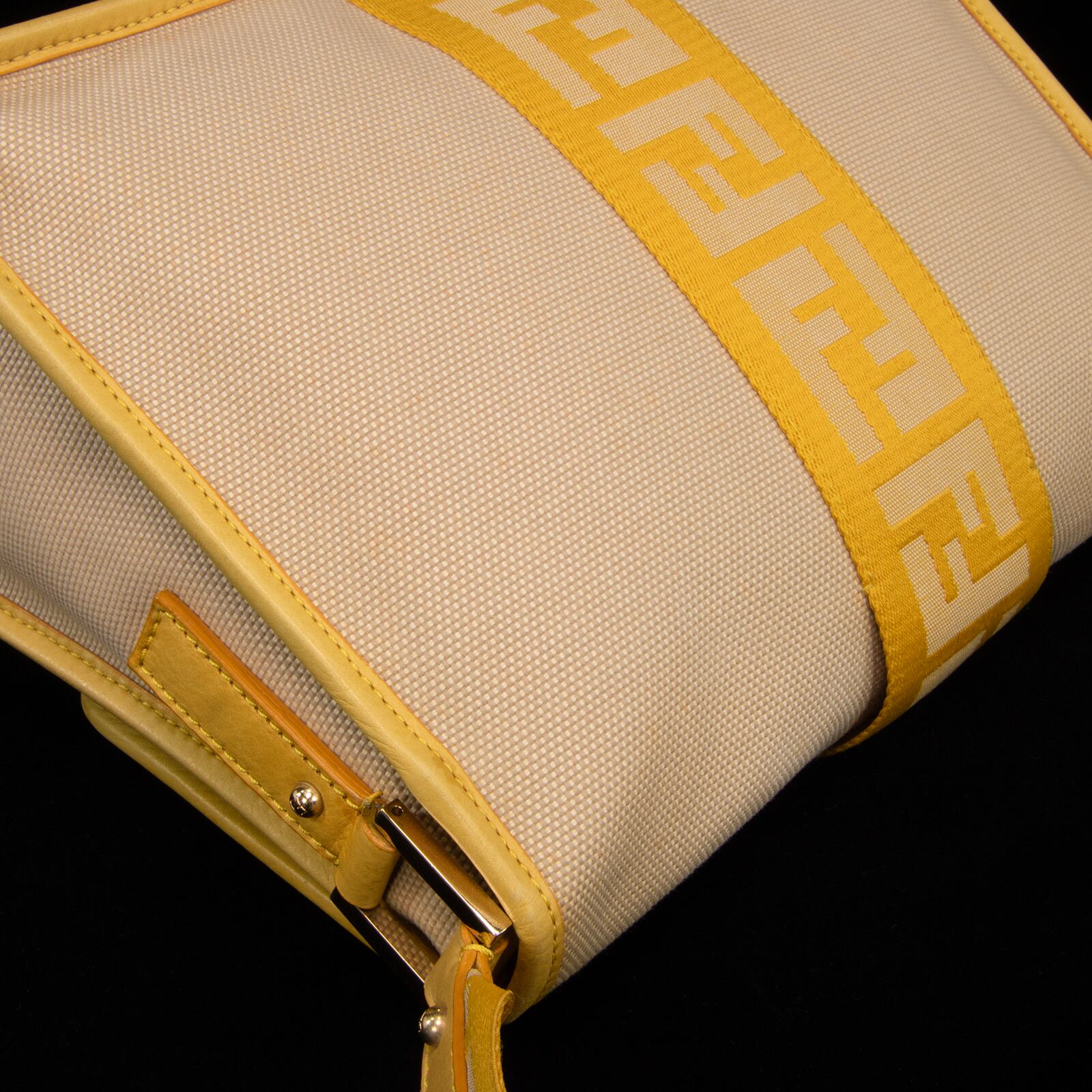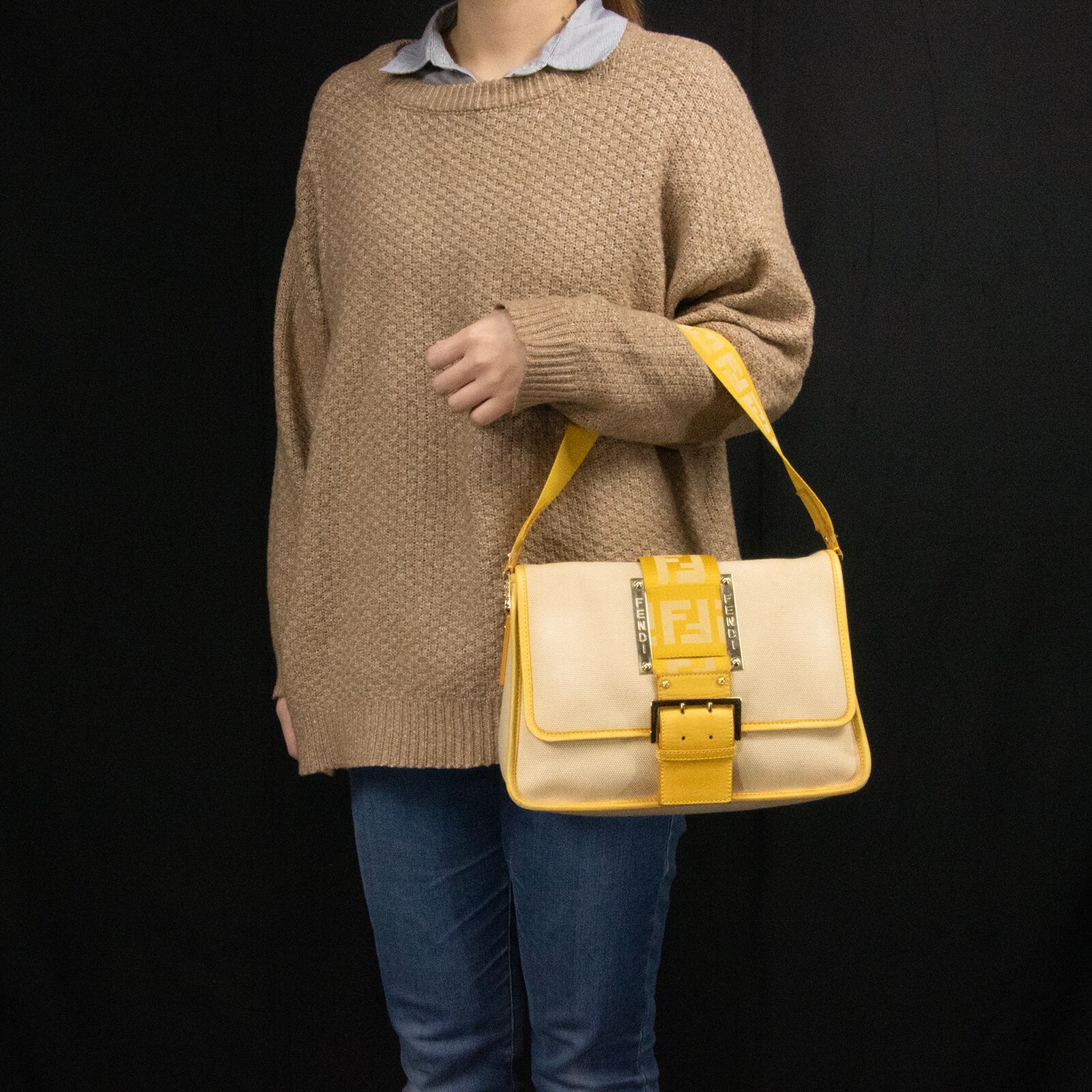 本物 送料無料 フェンディ ワンショルダーバッグ レディース キャンバス ズッカ ベージュ 黄色 FFロゴ マーク ゴールド金具 鞄 バック E354