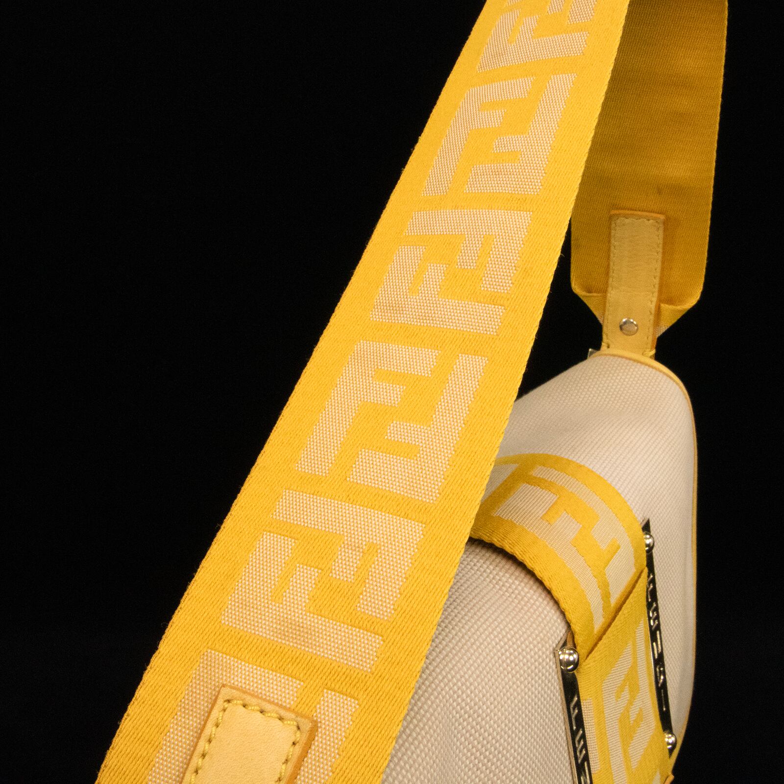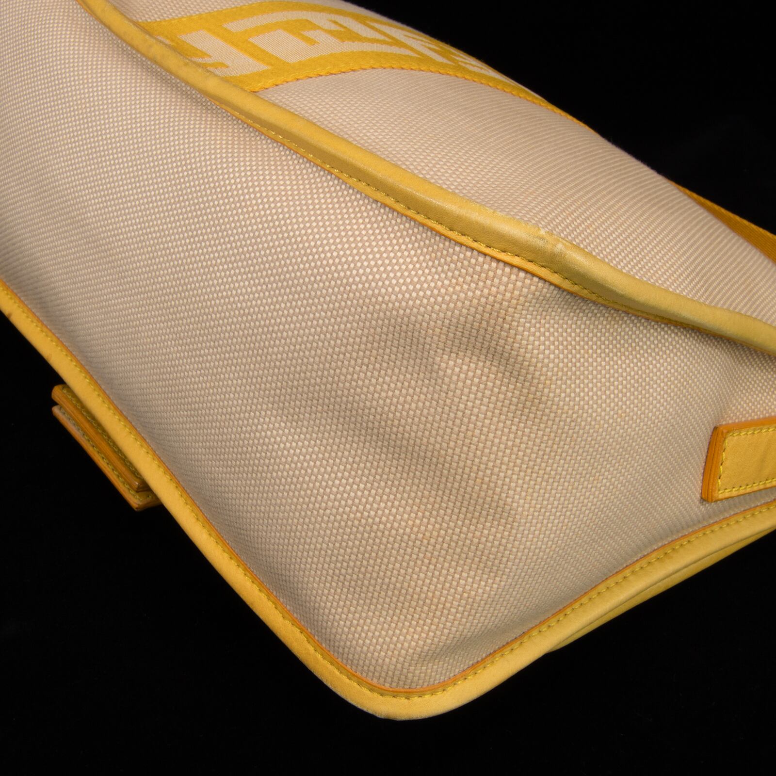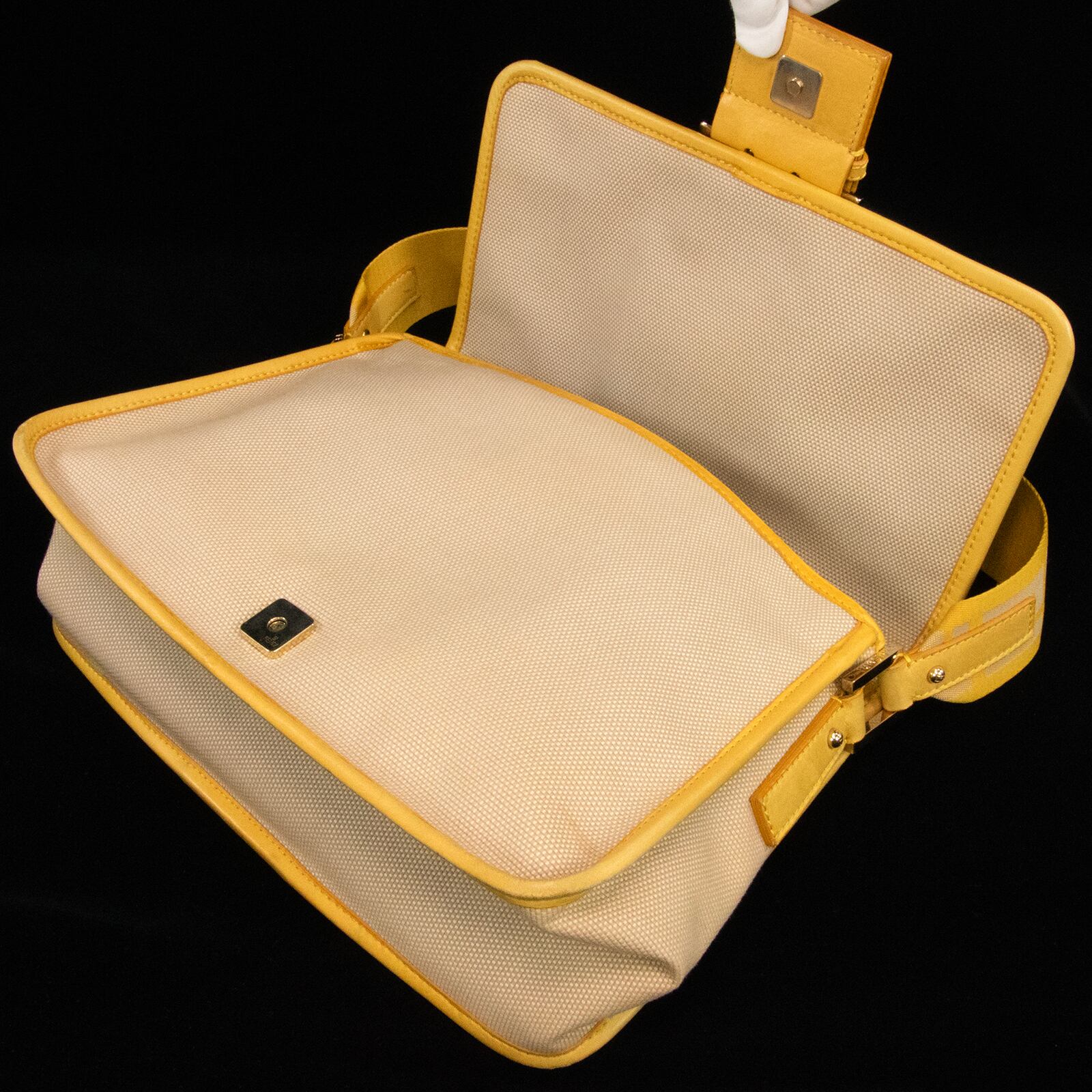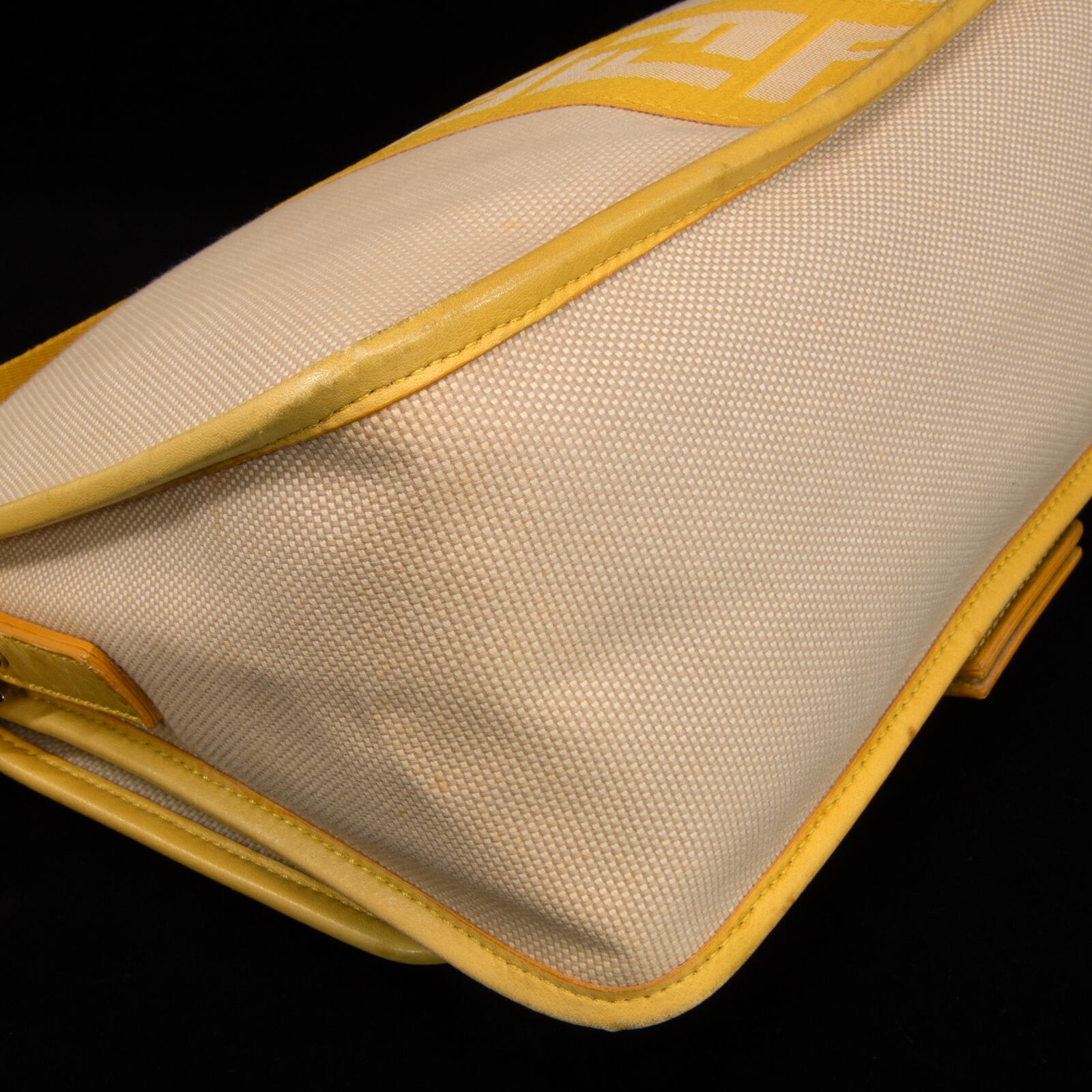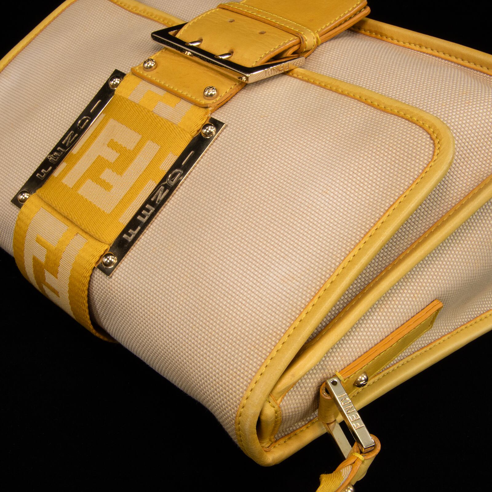 本物 送料無料 フェンディ ワンショルダーバッグ レディース キャンバス ズッカ ベージュ 黄色 FFロゴ マーク ゴールド金具 鞄 バック E354