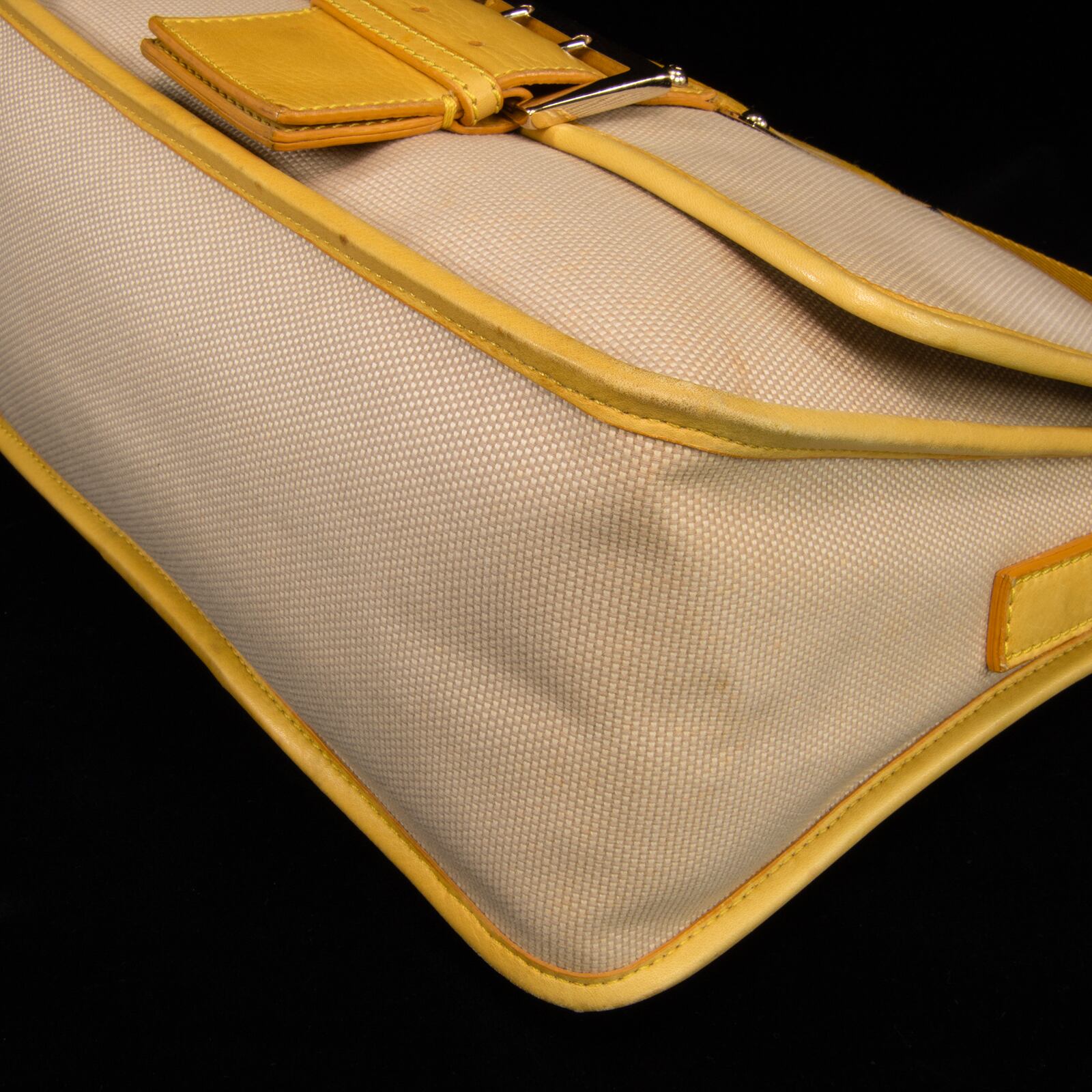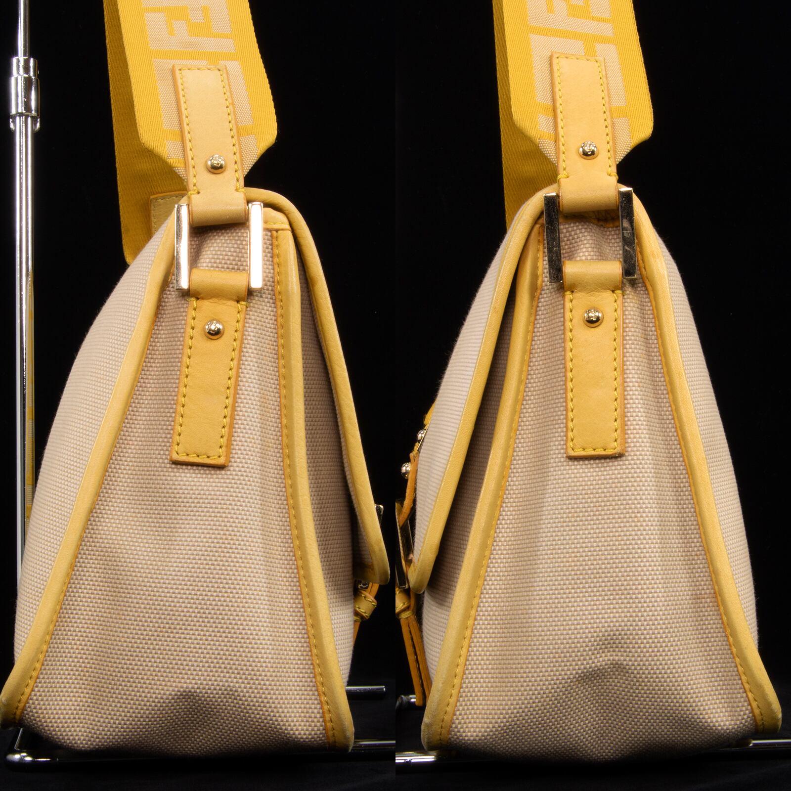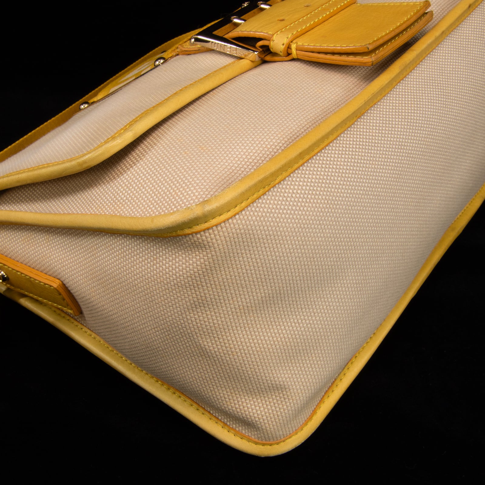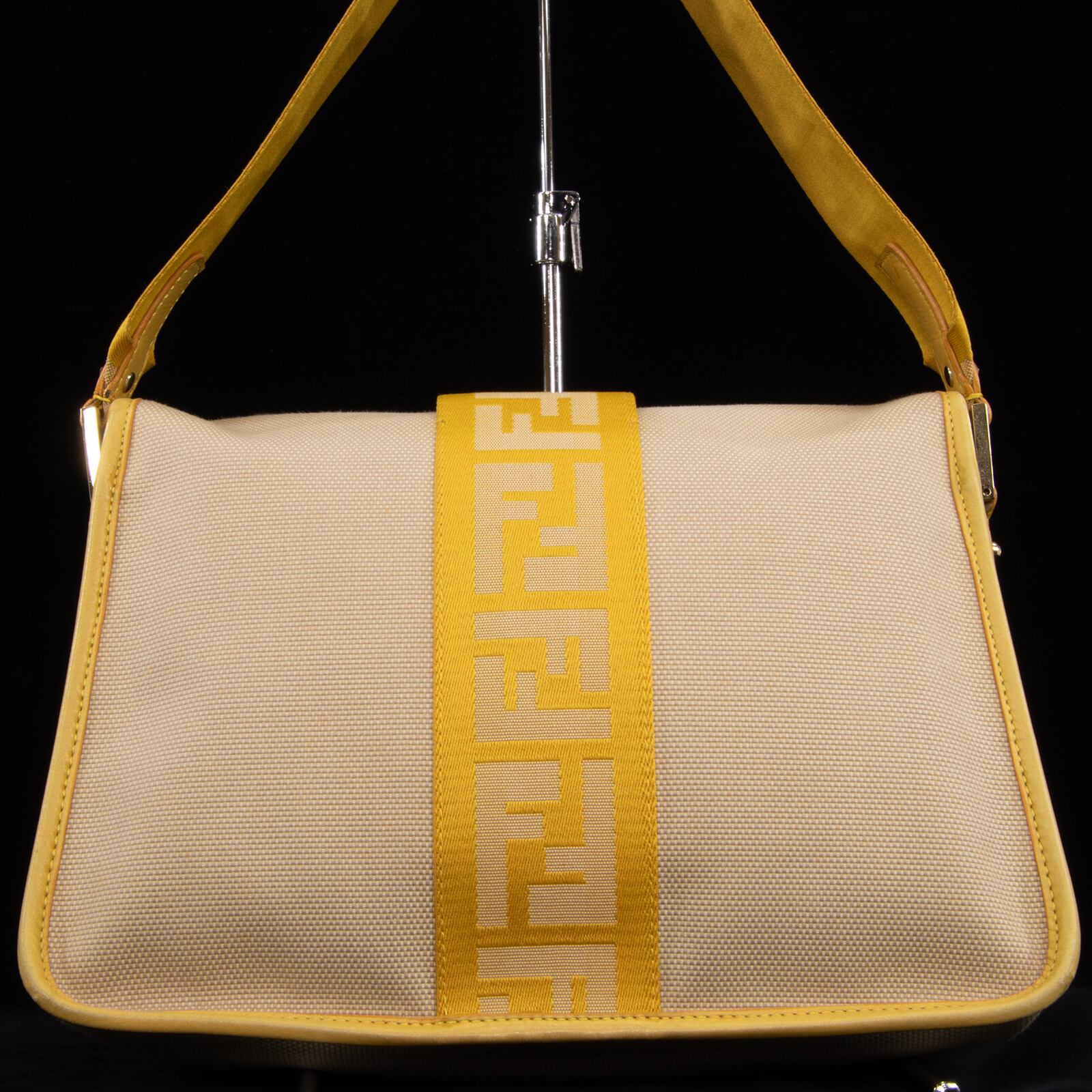 本物 送料無料 フェンディ ワンショルダーバッグ レディース キャンバス ズッカ ベージュ 黄色 FFロゴ マーク ゴールド金具 鞄 バック E354
