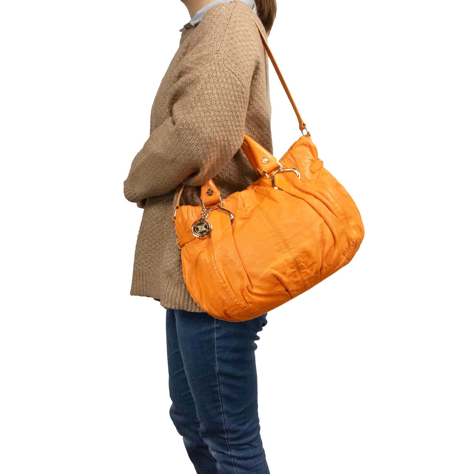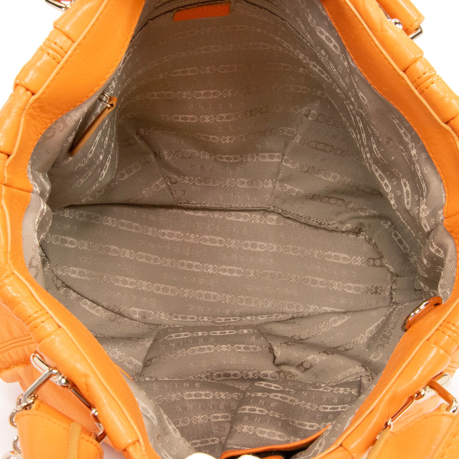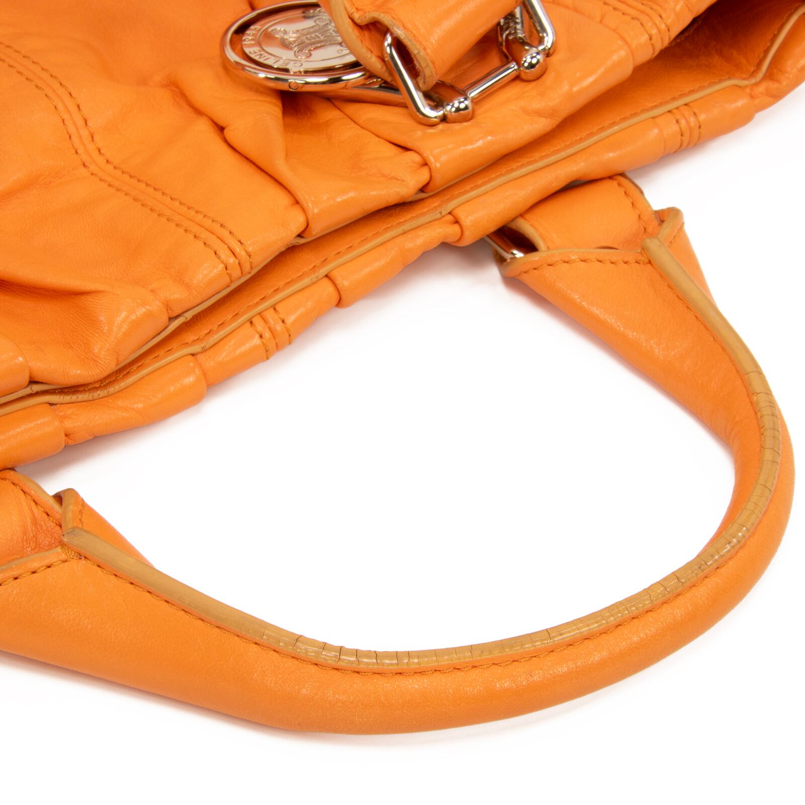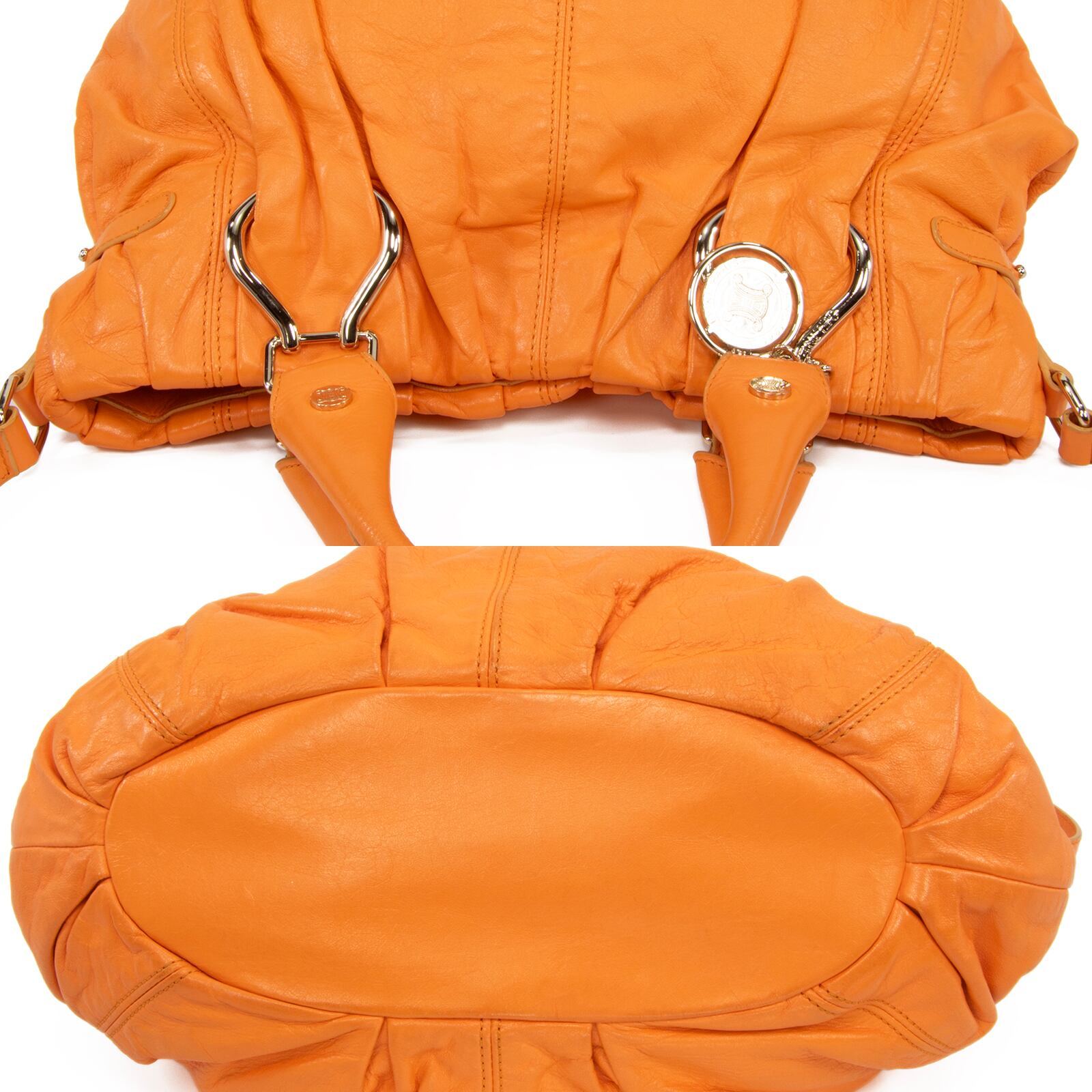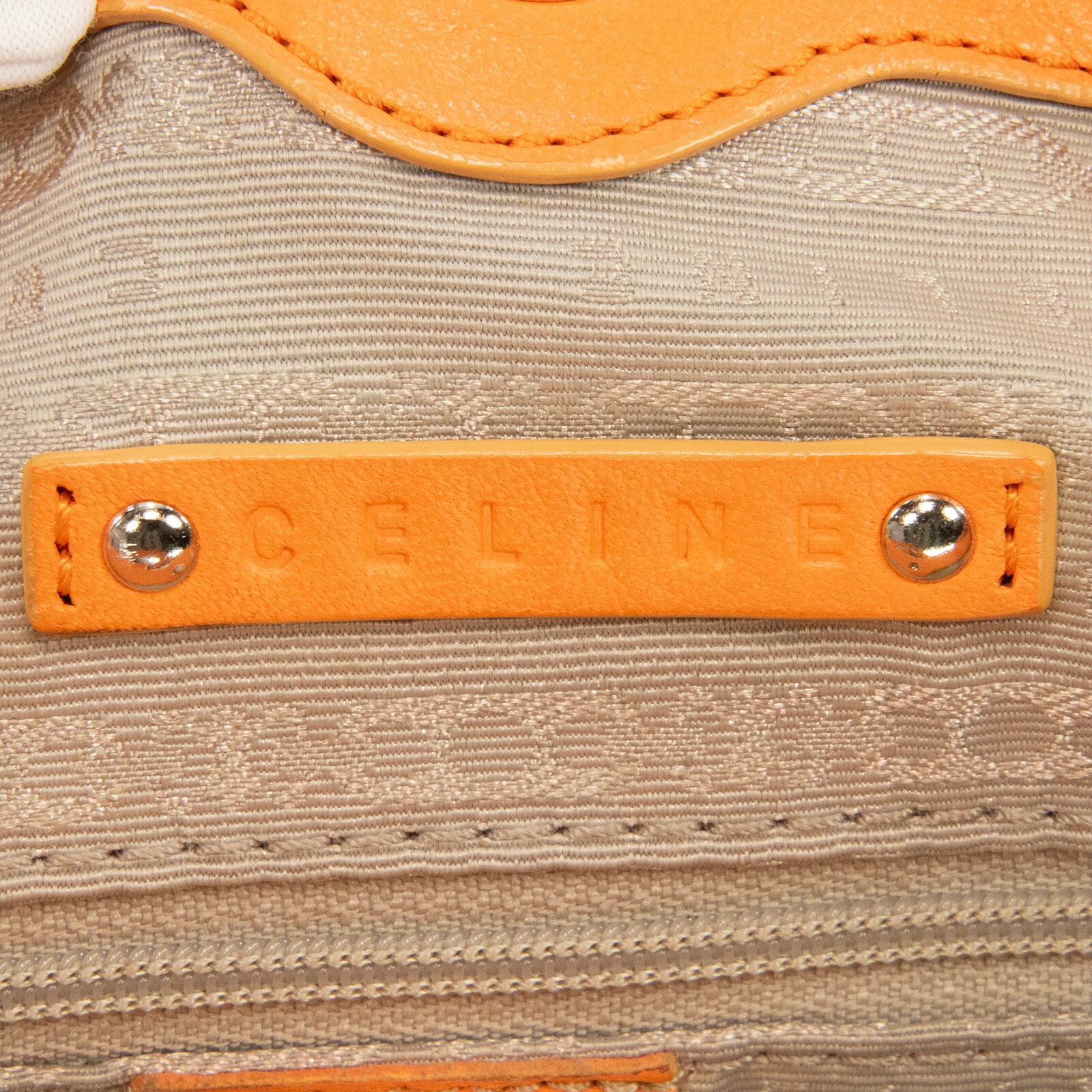 本物 送料無料 セリーヌ 2WAYハンドバッグ セミショルダーバッグ レディース ピロースモール 橙色 オレンジ ロゴ マカダム 鞄 バック F210