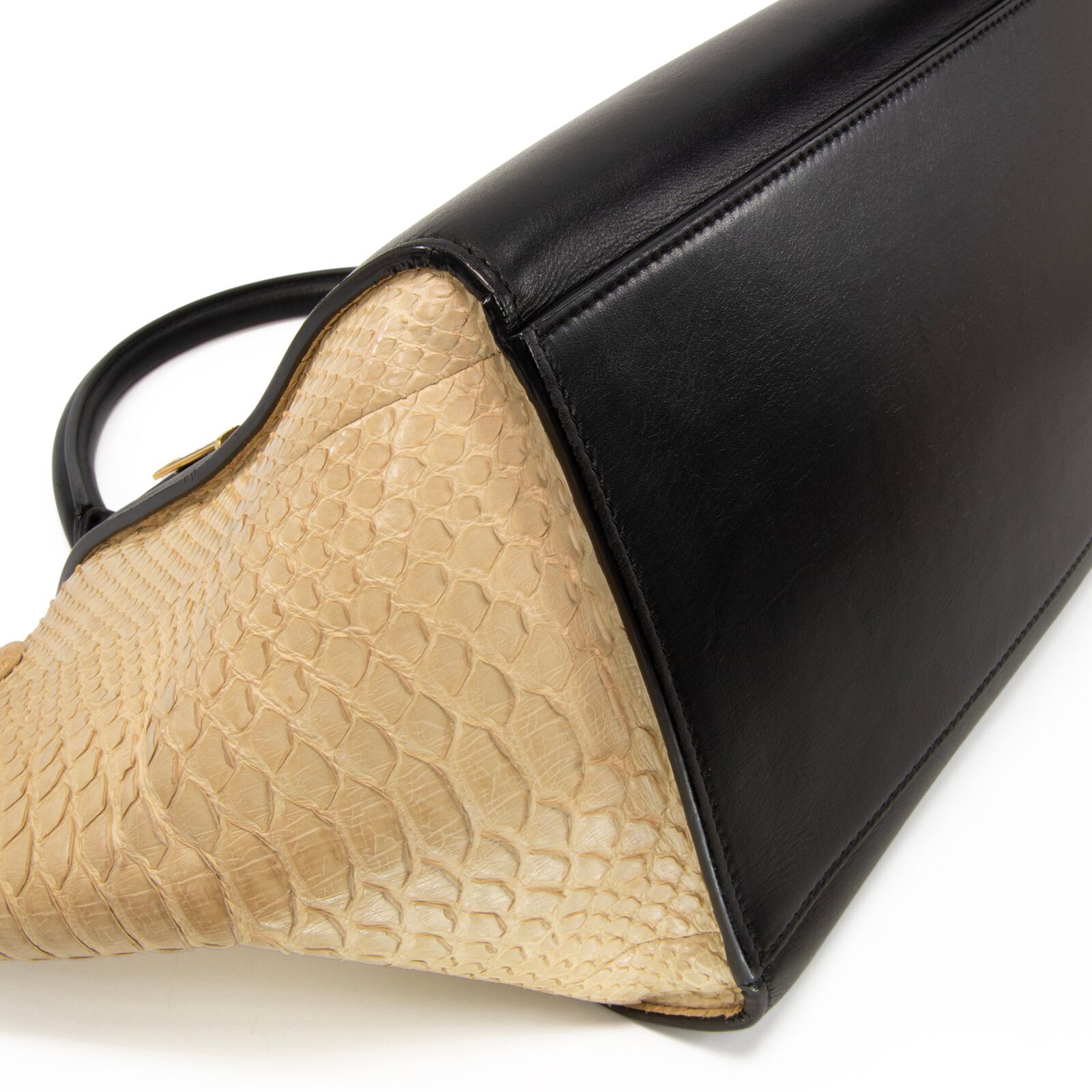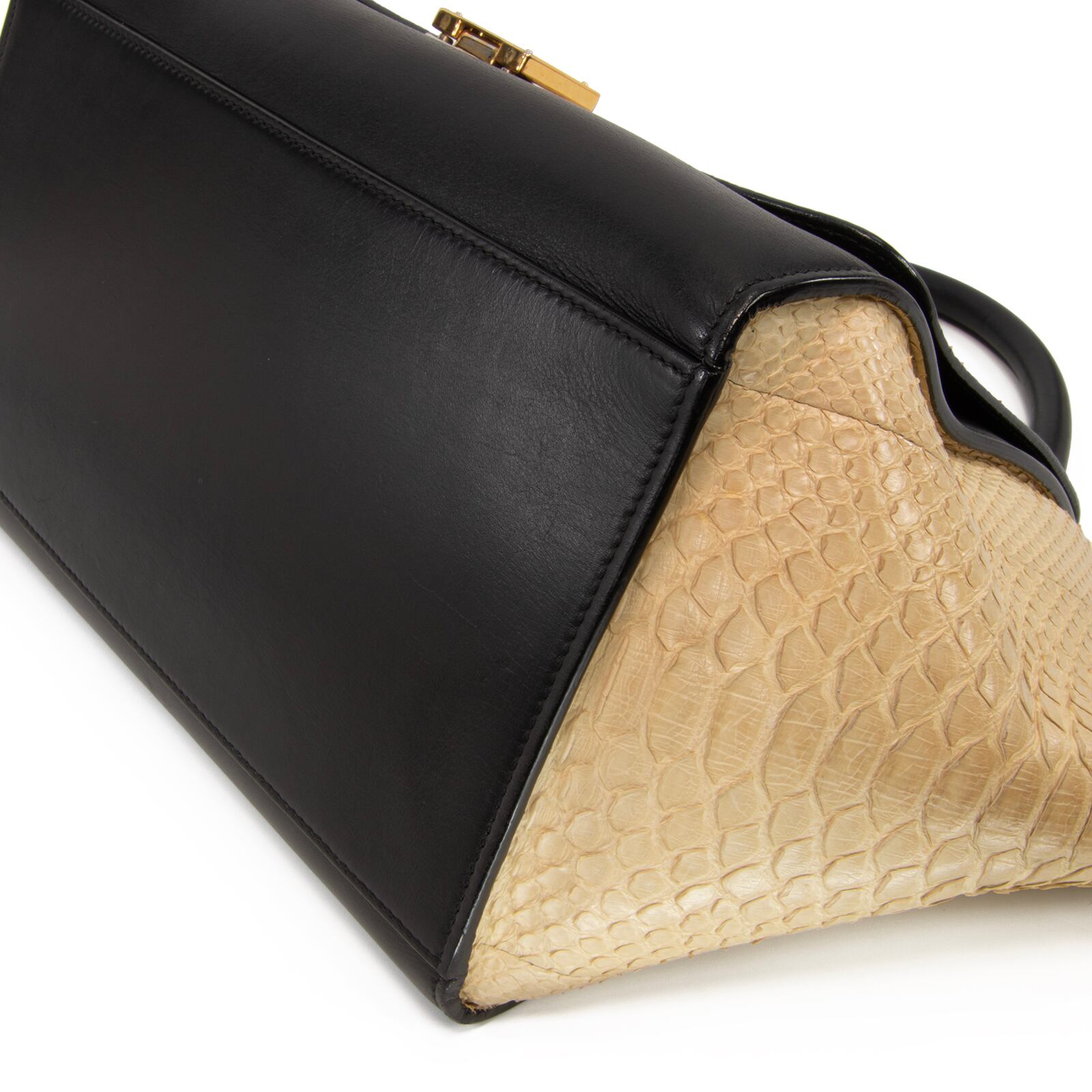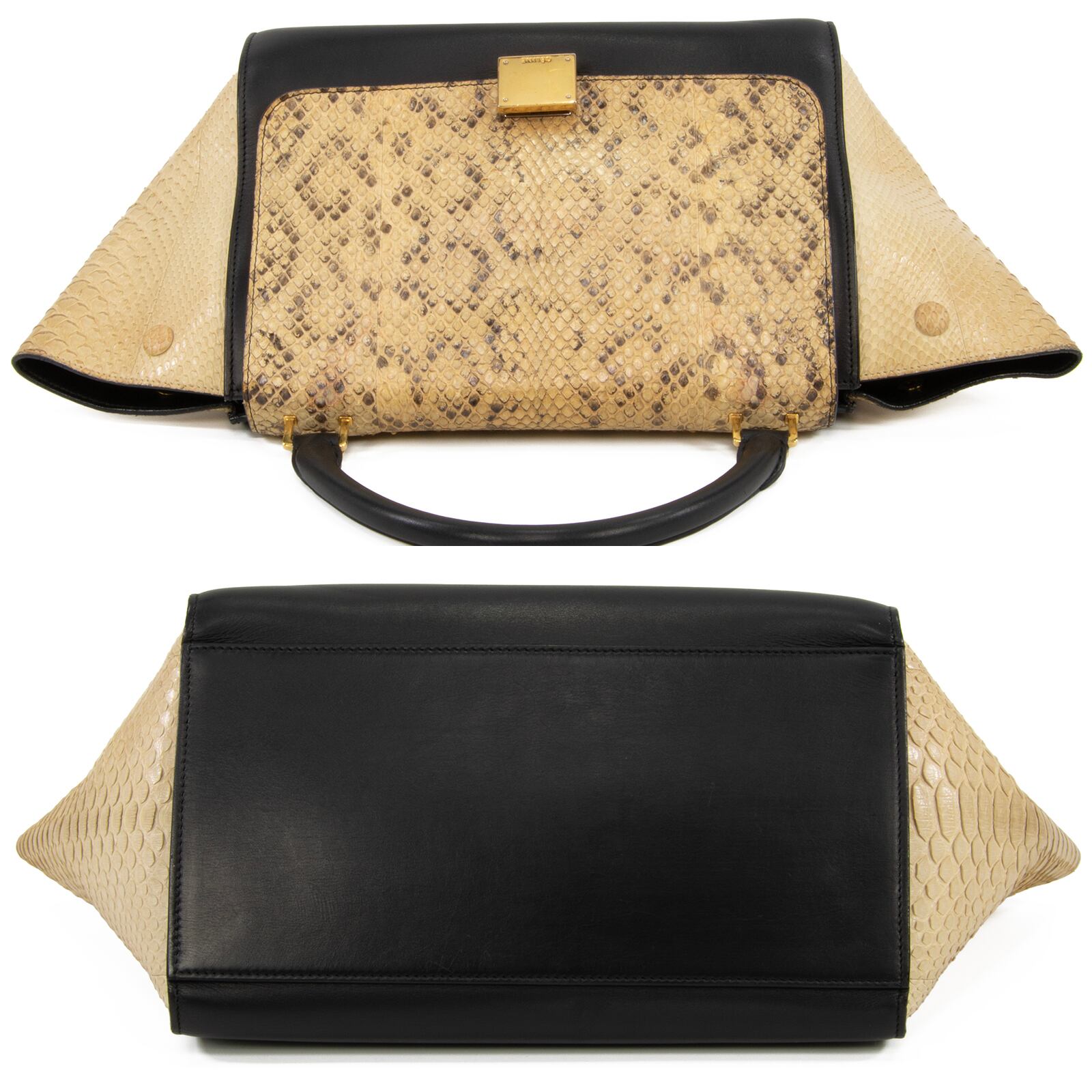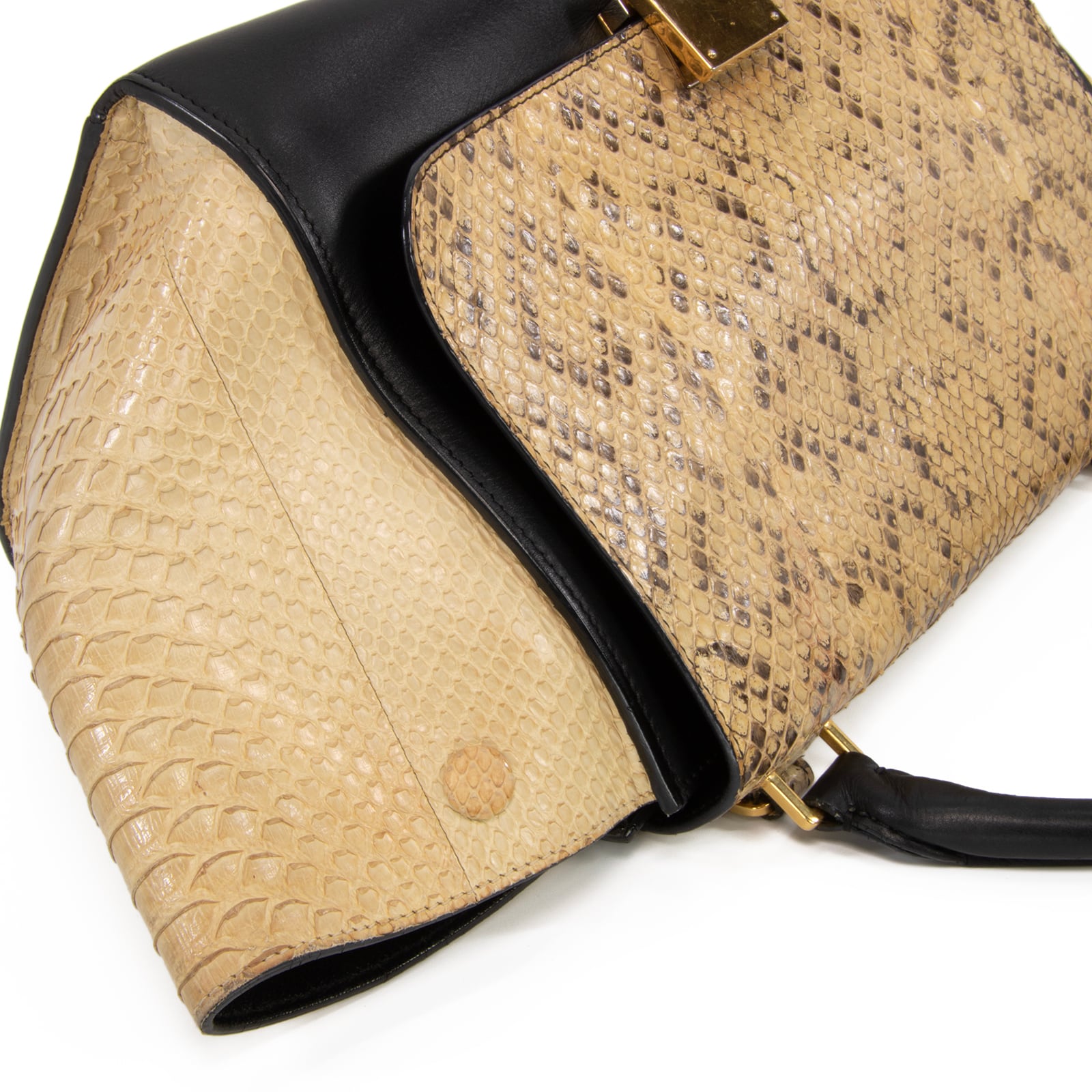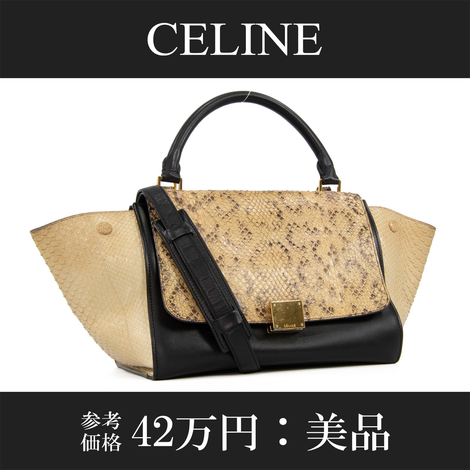 本物 送料無料 セリーヌ 2WAYハンドバッグ ショルダーバッグ 女性 パイソン トラペーズ S ブラック ゴールド金具 ロゴ 希少 鞄 バック A793