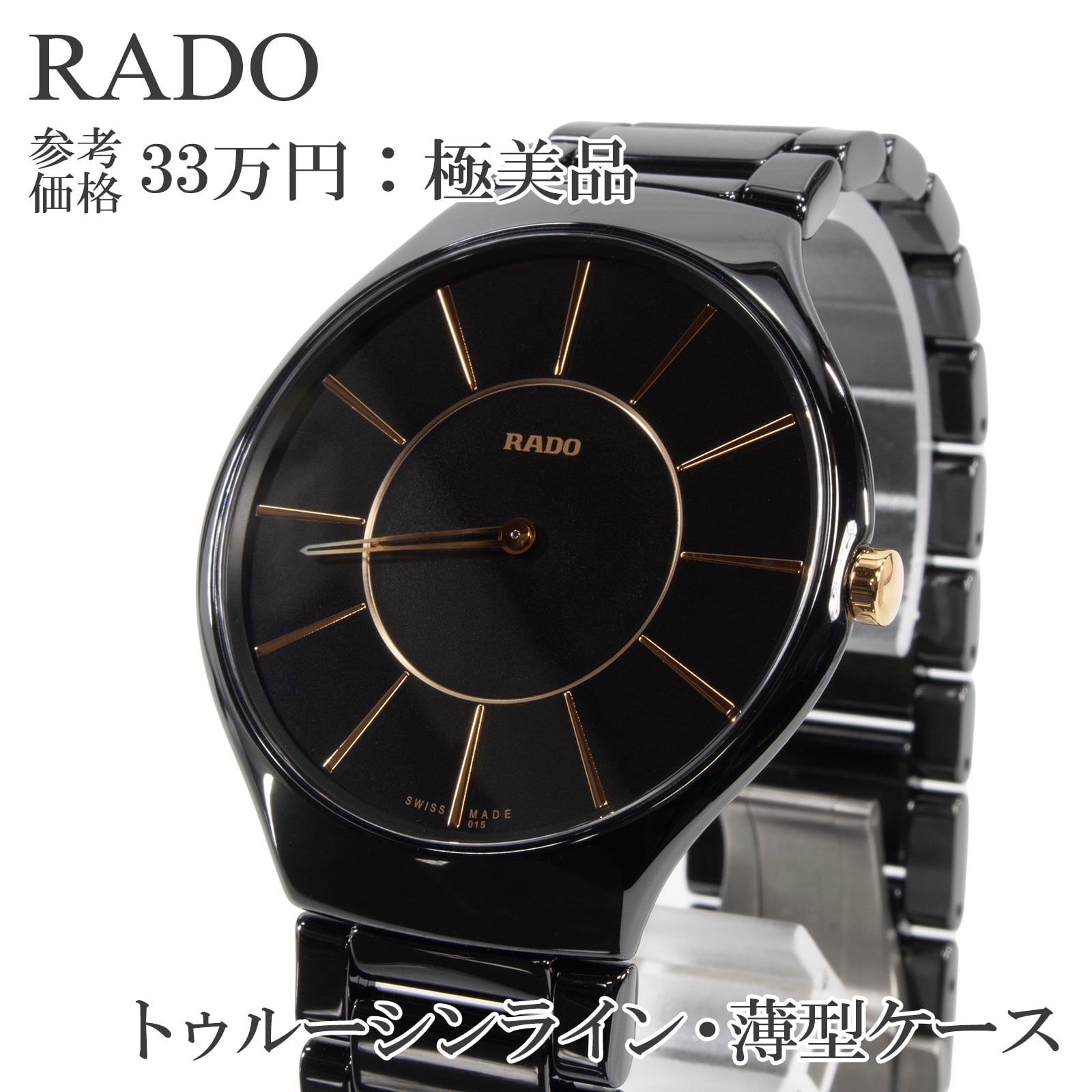 送料無料 ラドー 腕時計 クォーツ メンズ レディース トゥルーシンライン R27741152 黒 ゴールド ロゴ 完売モデル 薄型 スリム 綺麗 X062