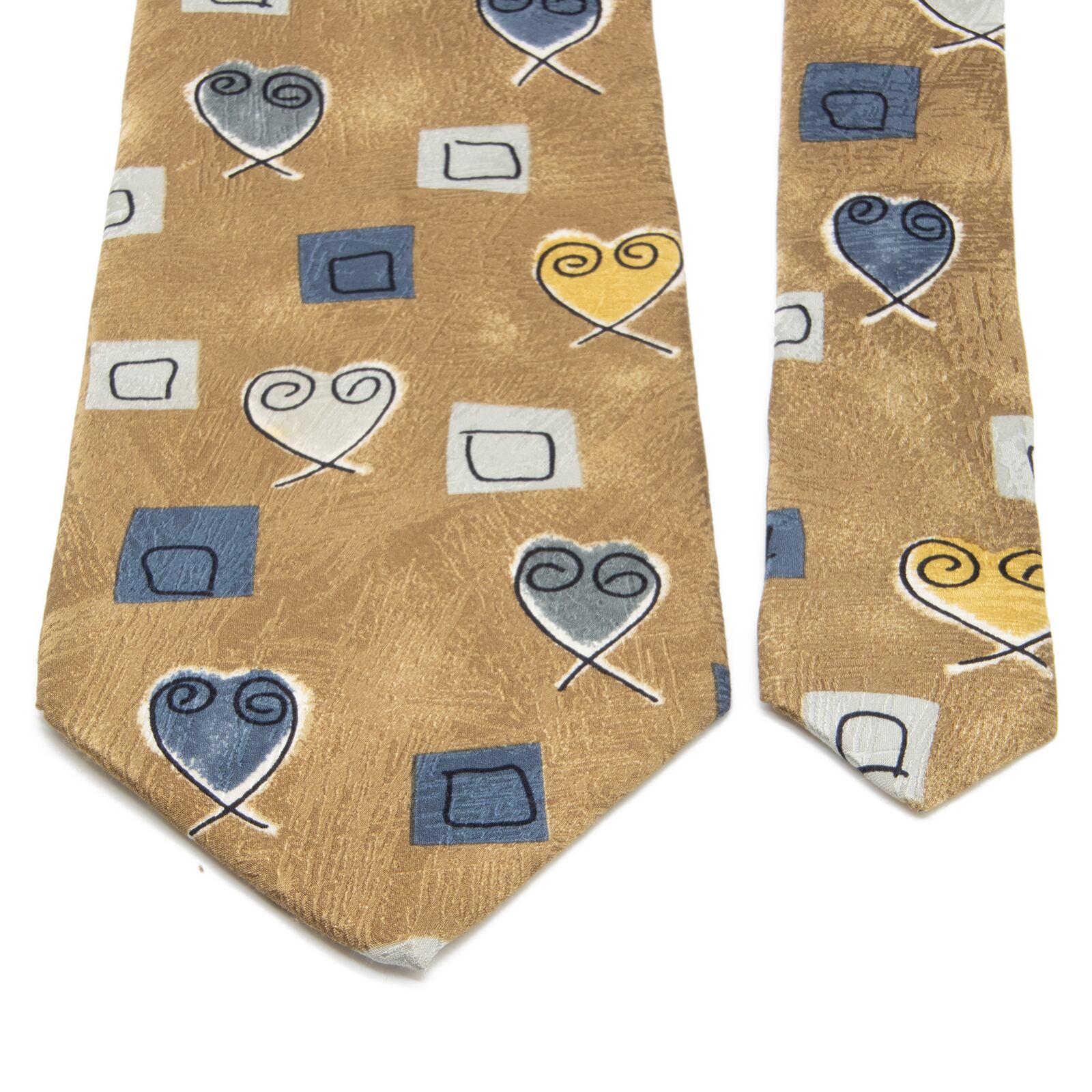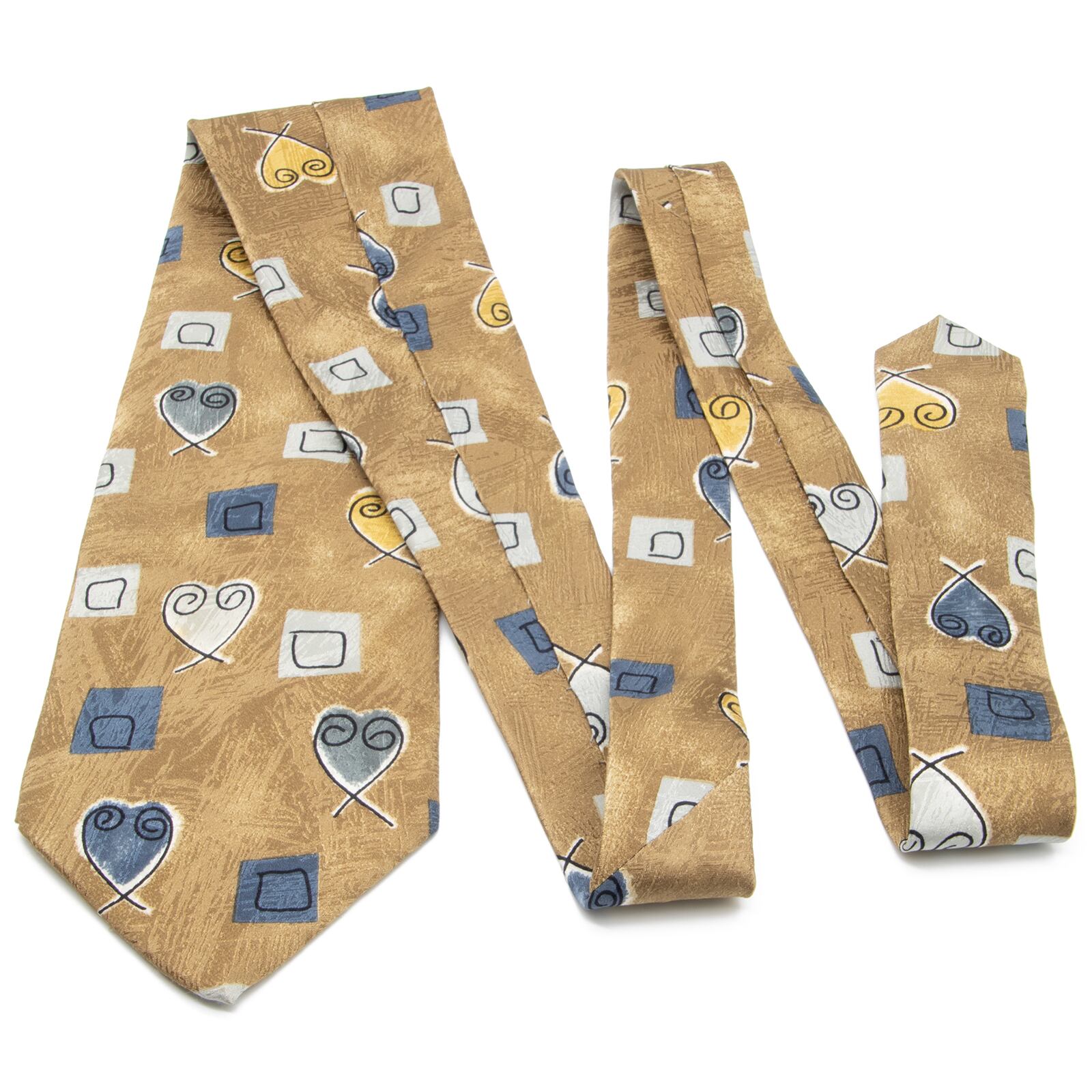 送料無料 プリマコレツィオーネ ネクタイ 新品同様 ワイドタイ シルク ゴールド 黄色 イエロー 青 ブルー グレー ブランド ハート N172