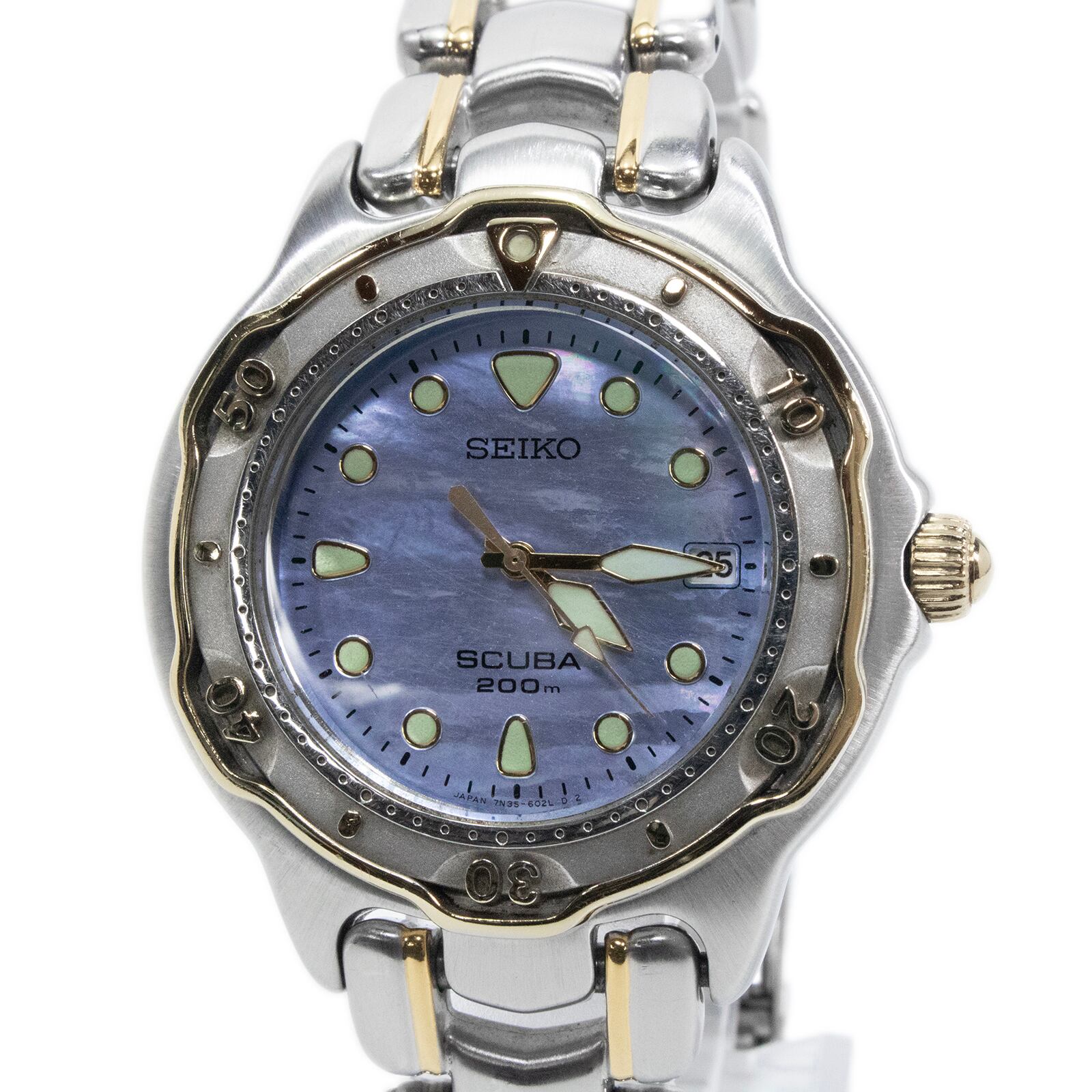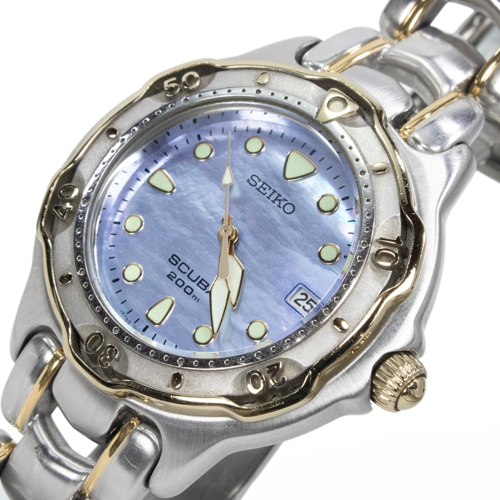 送料無料 セイコー 腕時計 メンズ レディース ボーイズ SCUBA スキューバ ゴールド 青 ロゴ コンビカラー ブルーシェル盤 レア 綺麗 X066