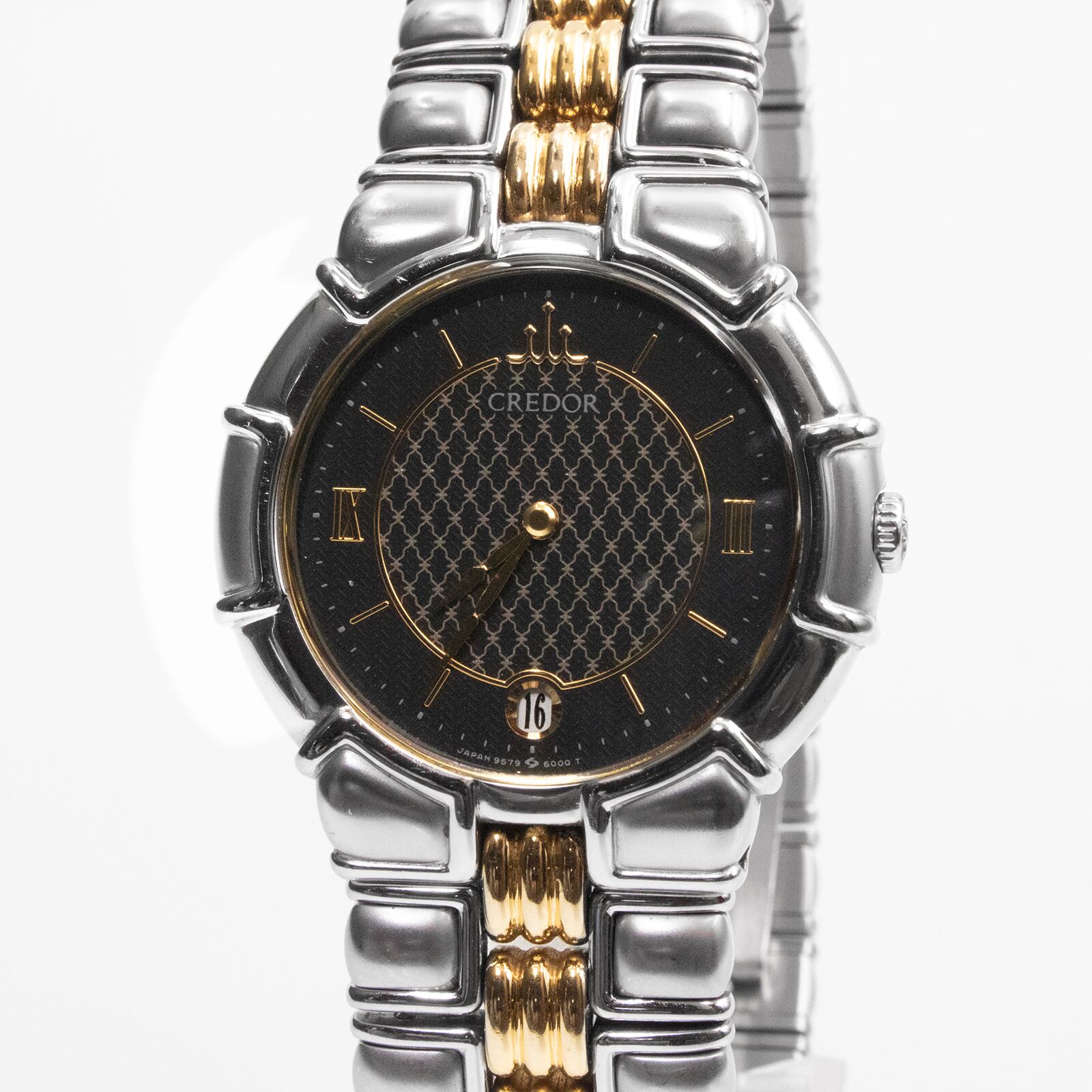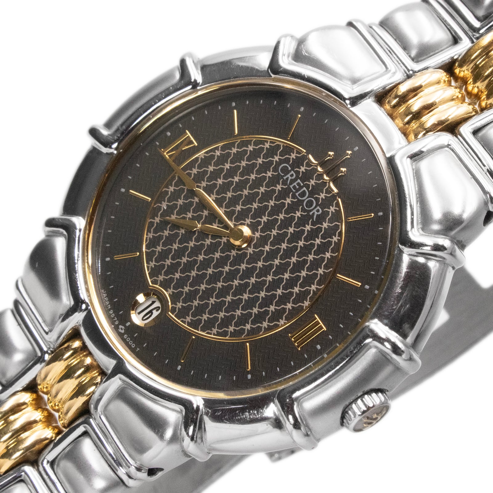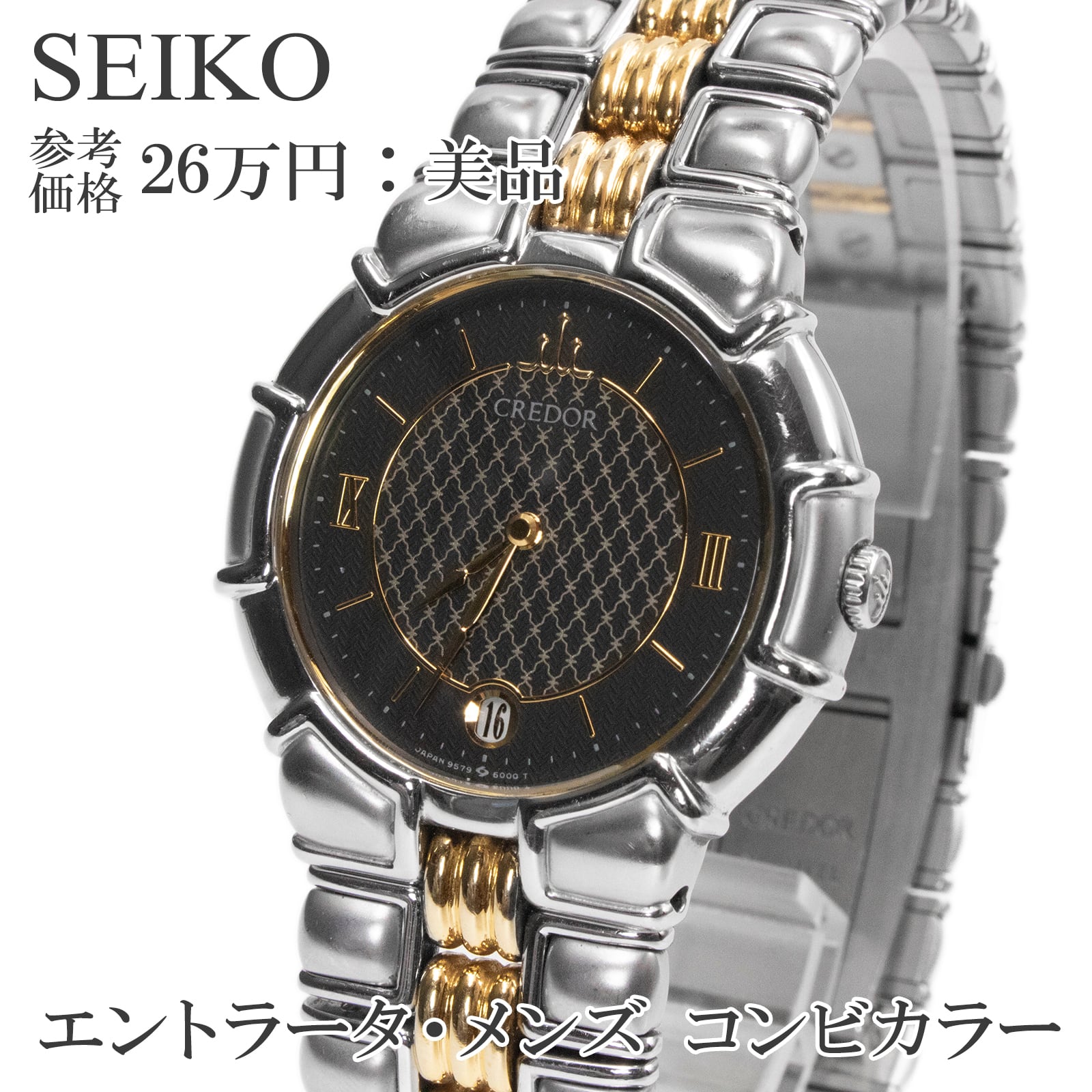 送料無料 セイコー 腕時計 クオーツ メンズ CREDOR クレドール エントラータ GKJW038 ブラック 黒 ゴールド コンビカラー ロゴ 高級 レア 綺麗 X068