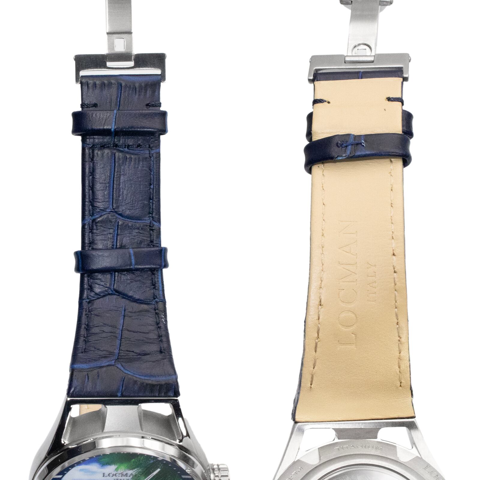 ケース・バンドの素材:チタン・クロコダイル型押しレザー