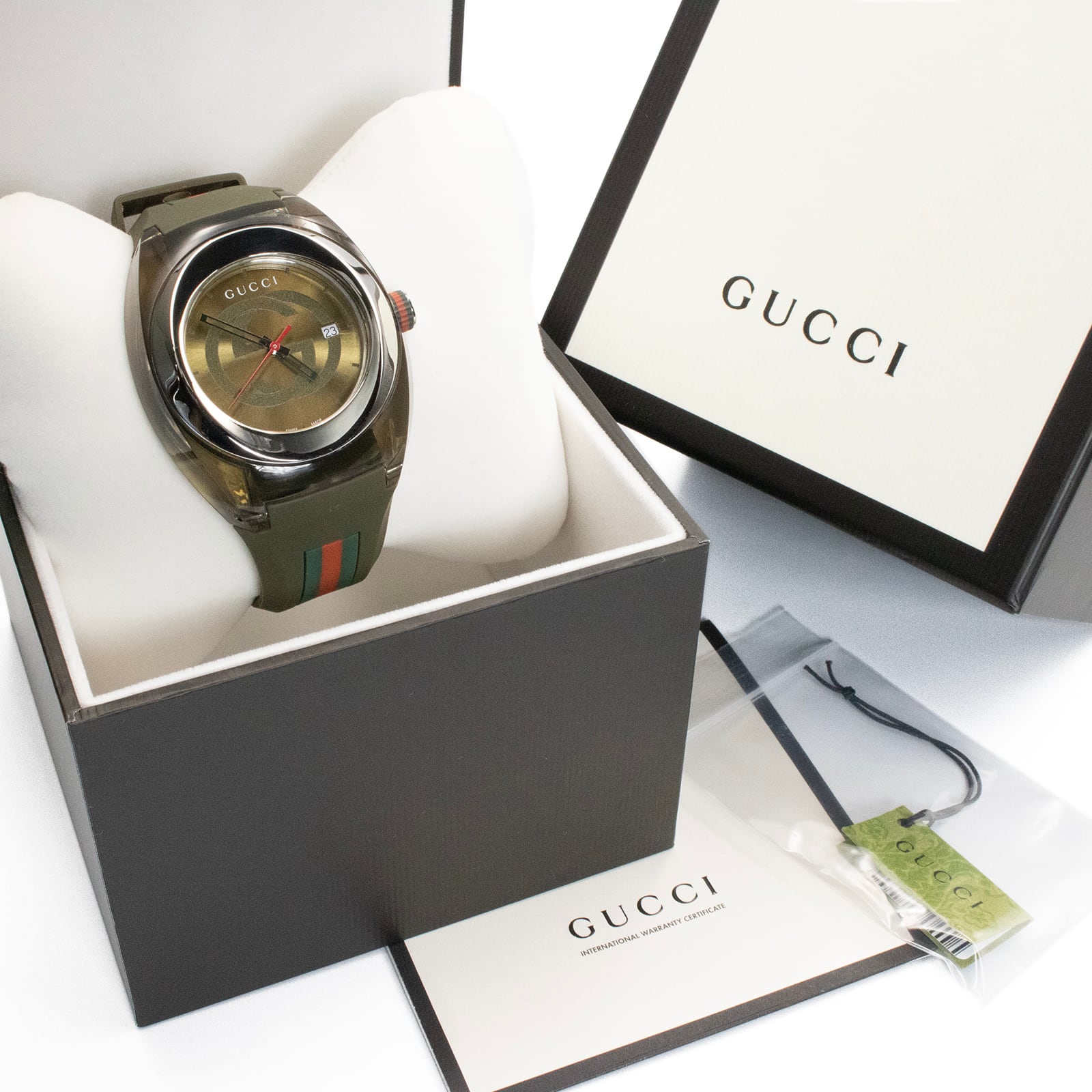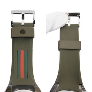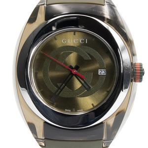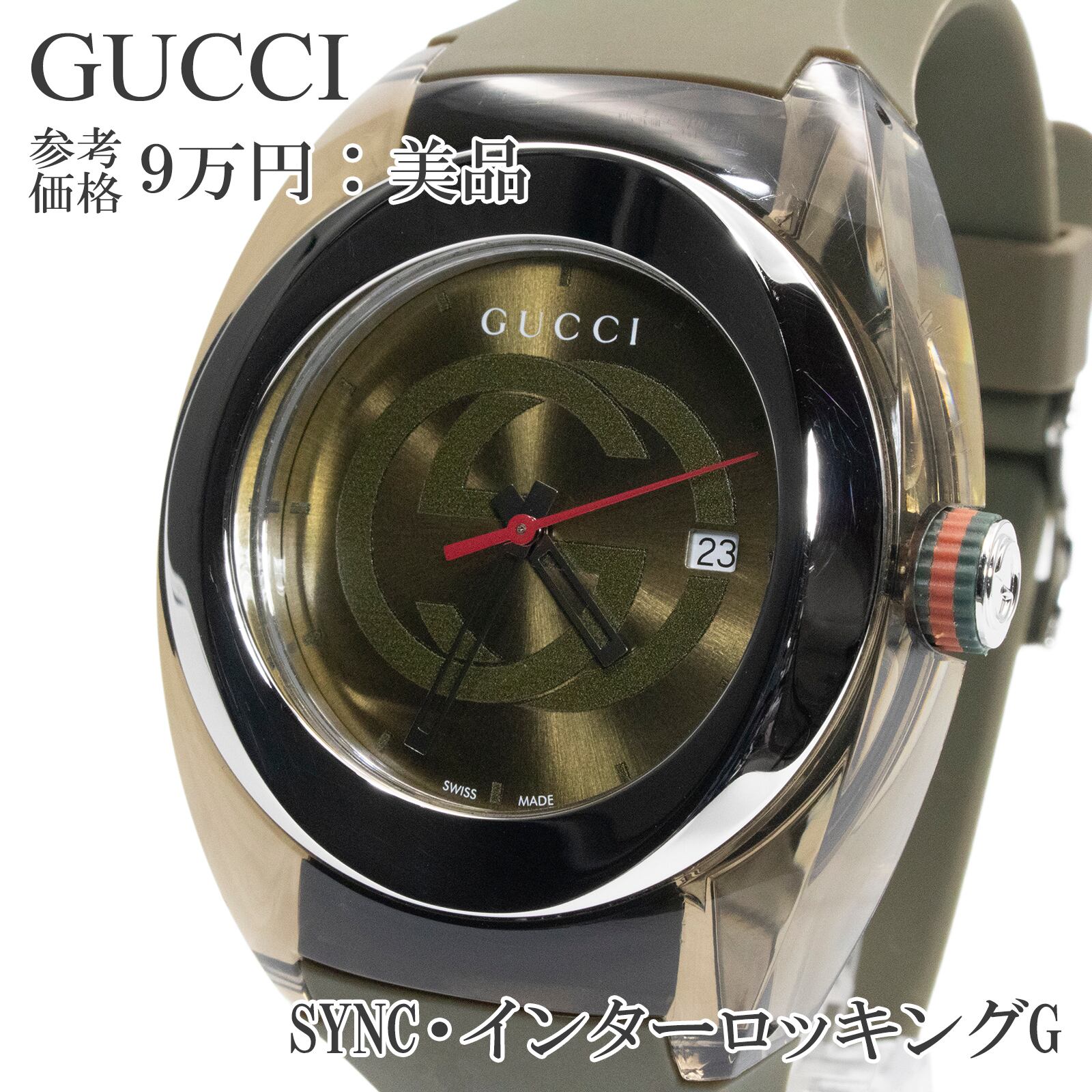 送料無料 グッチ 腕時計 クオーツ メンズ レディース SYNC シンク カーキグリーン レッド インターロッキングG ロゴ シェリー 綺麗 X073