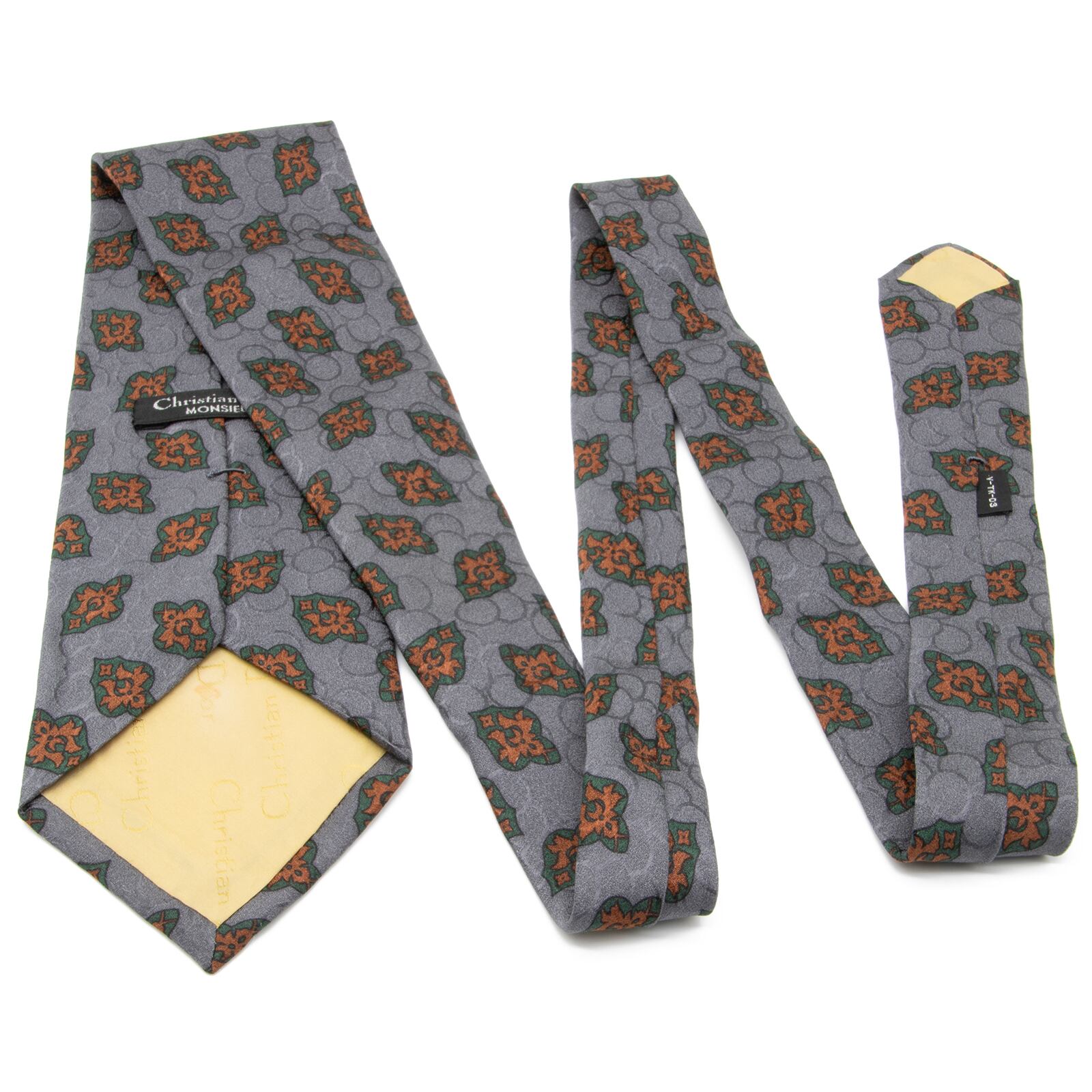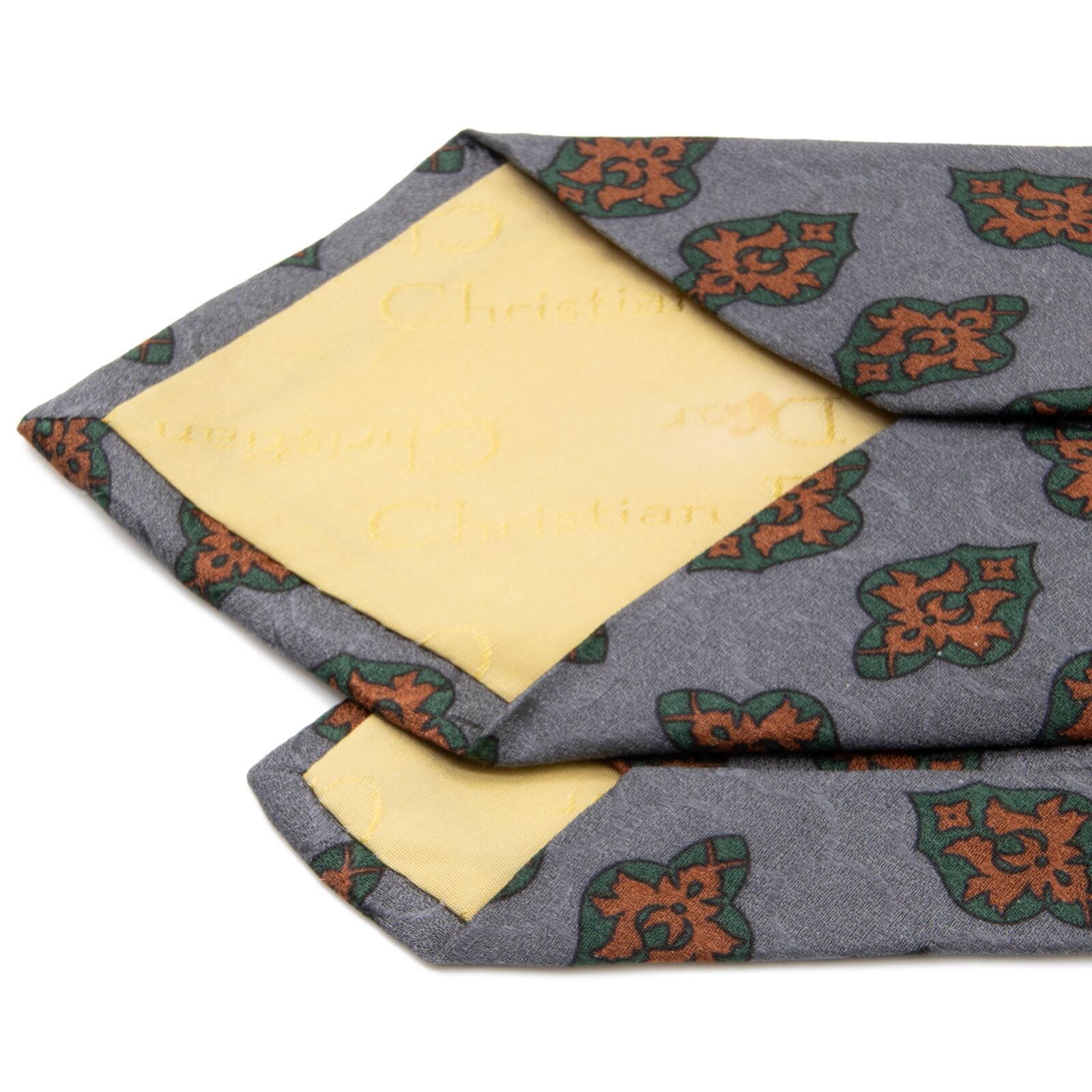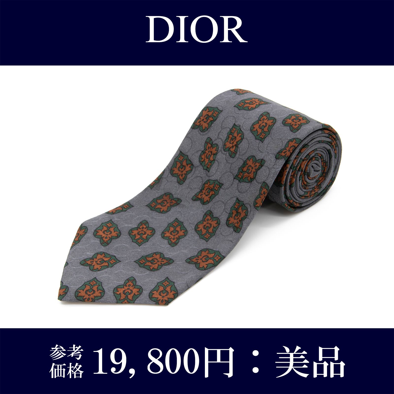 送料無料 ディオール ネクタイ レギュラータイ シルク フレンチグレー 緑色 茶色 ブラウン ビジネス カジュアル ブランド レア 綺麗 N286