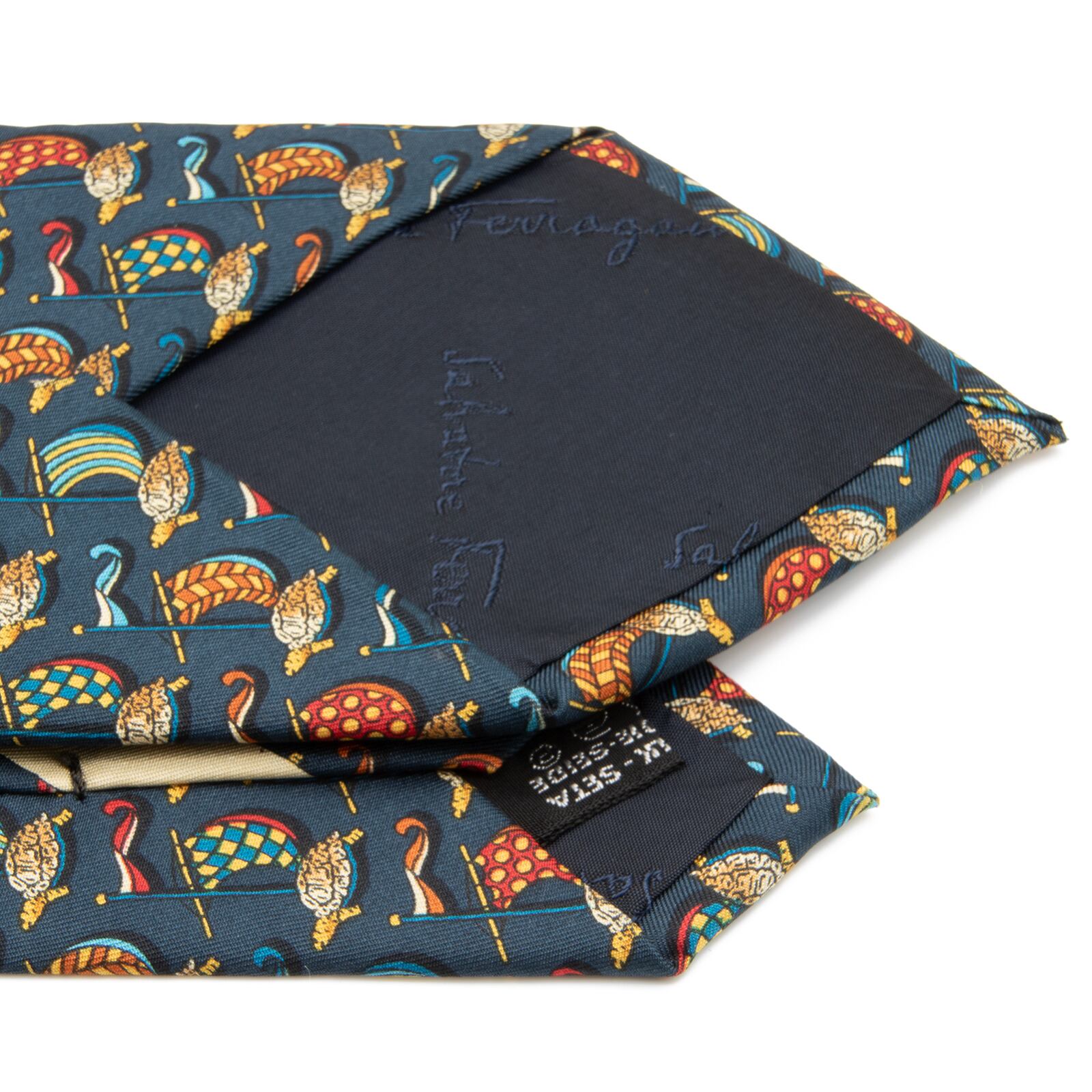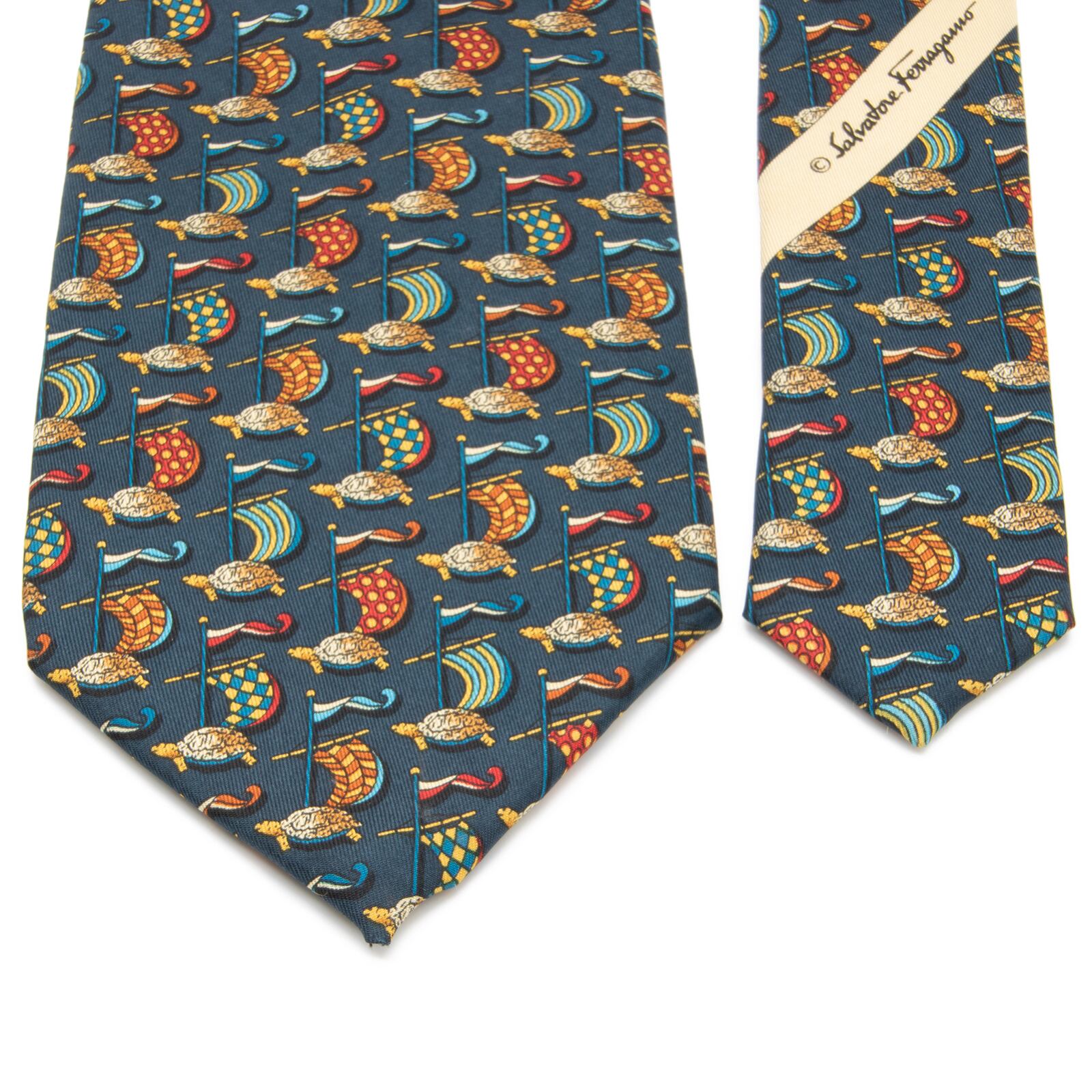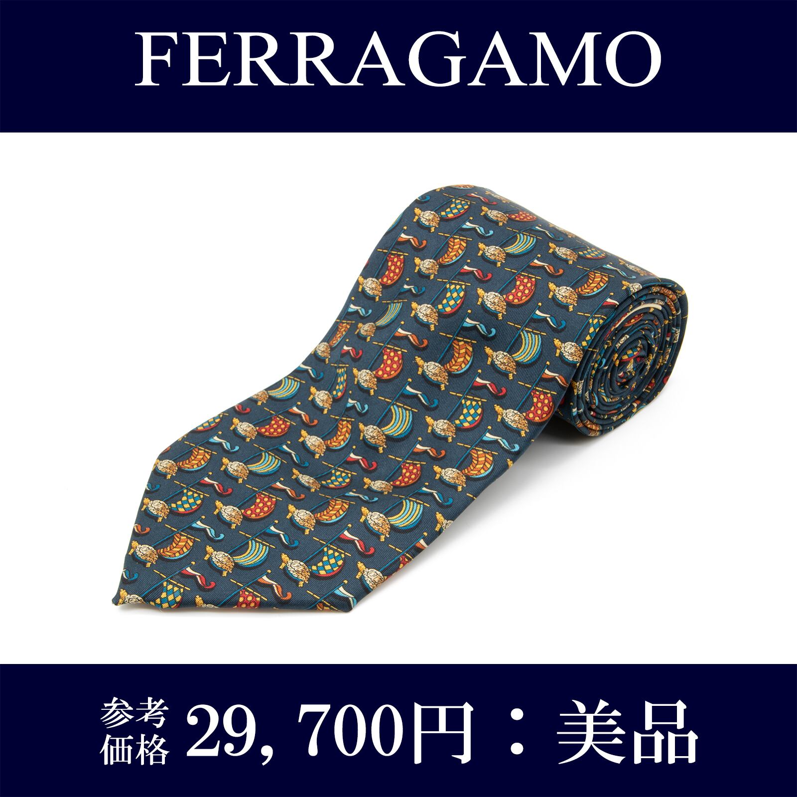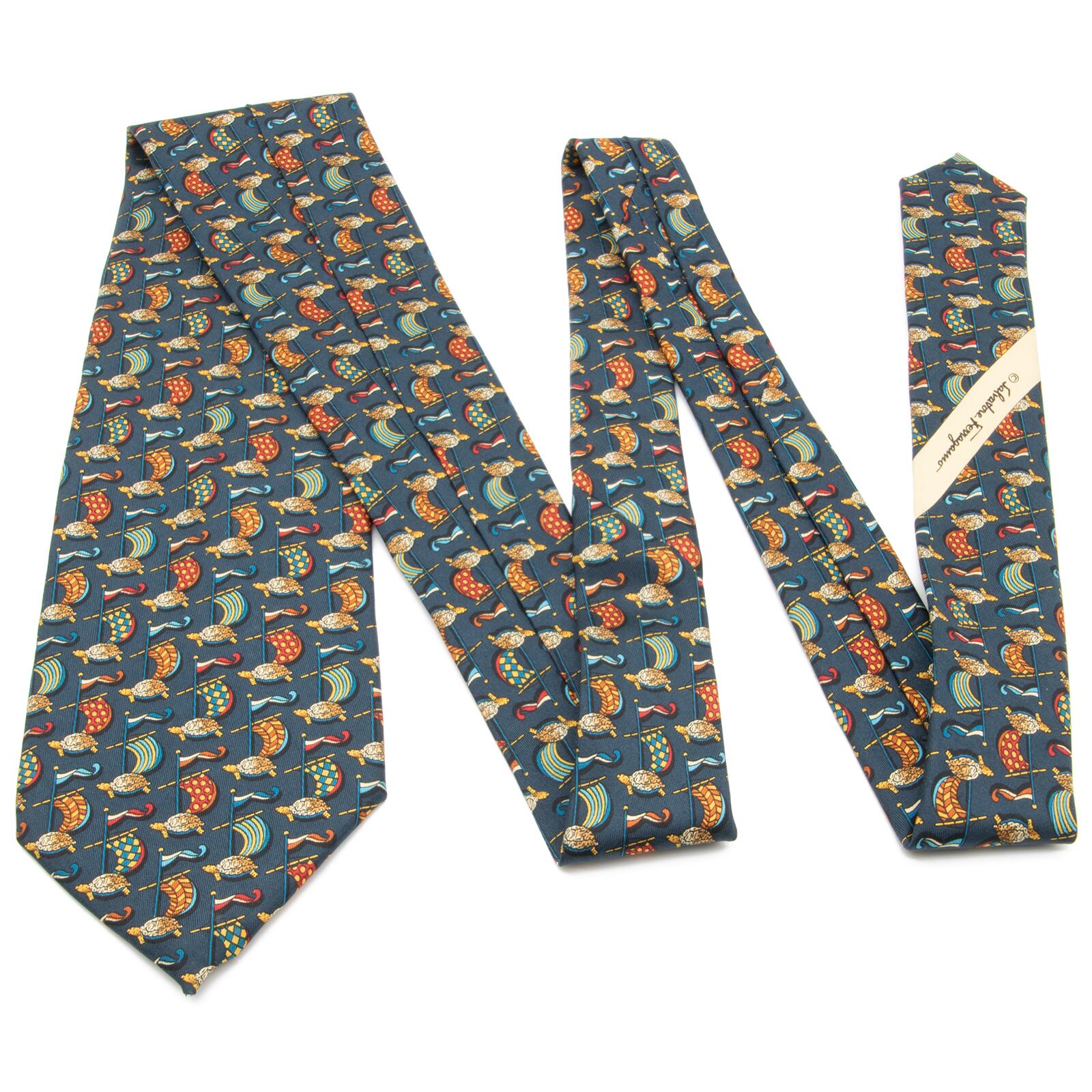 送料無料 フェラガモ ネクタイ レギュラータイ シルク 青 ブルー 茶色 ブラウン 赤 レッド オレンジ ブランド 亀 旗 レア 綺麗 N291