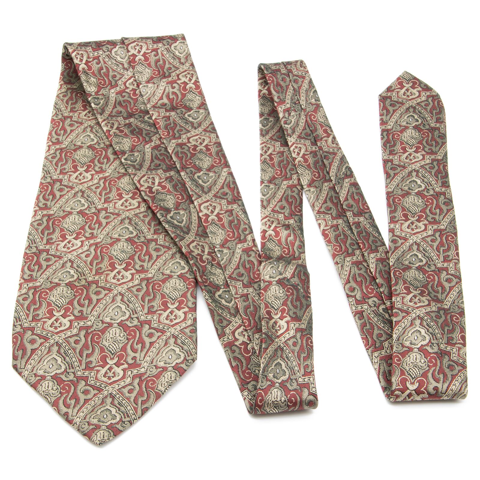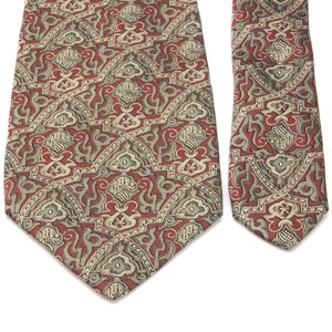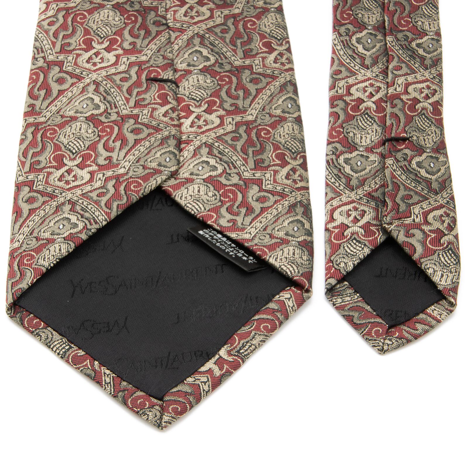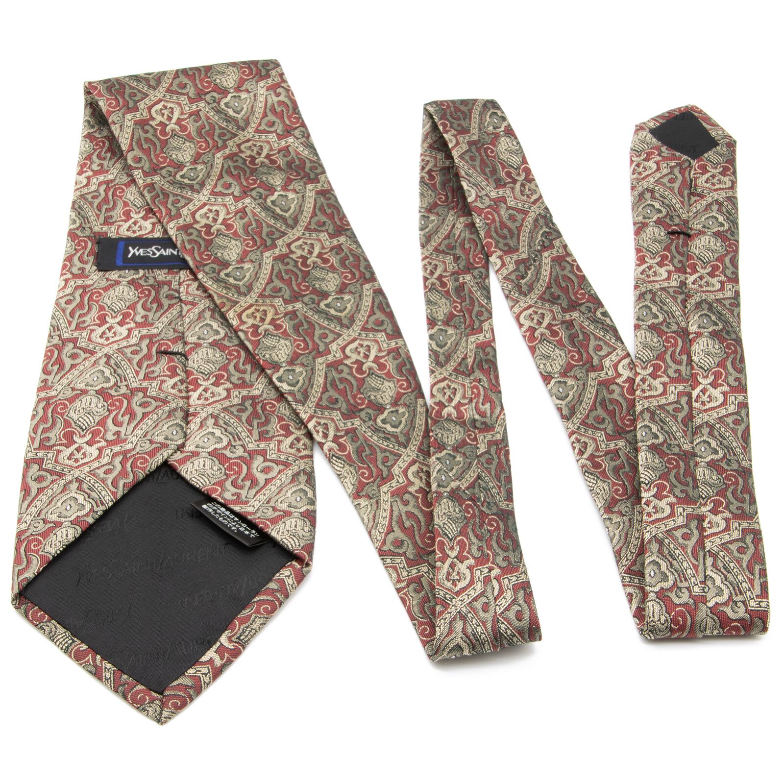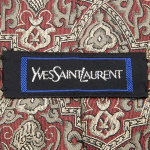 送料無料 サンローラン ネクタイ 新品同様 レギュラー ジャガードタイ シルク 赤 レッド ビジネス カジュアル ブランド 総柄 綺麗 N379