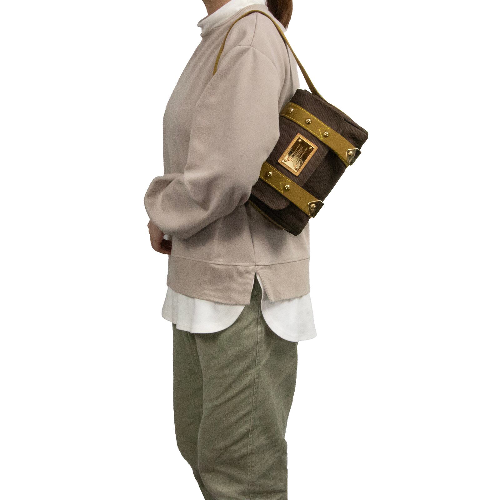 本物 送料無料 ヴィトン ショルダーバッグ レディース アンティグア サックラバ 茶色 ブラウン ロゴプレート マーク 小さい バック L129
