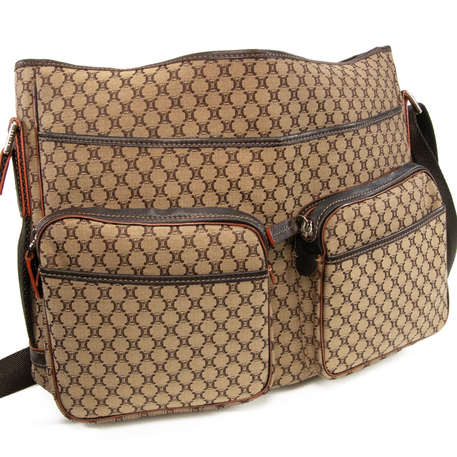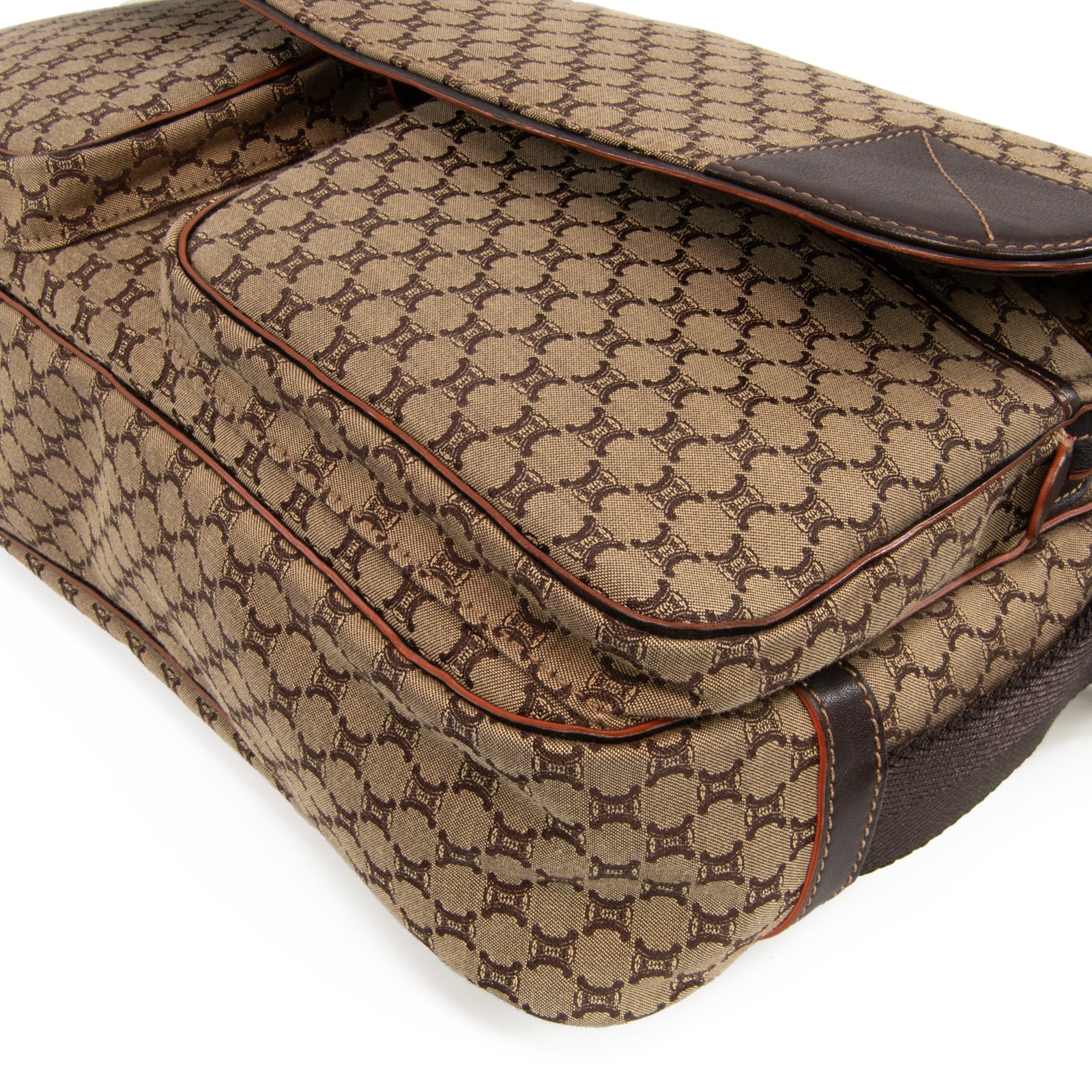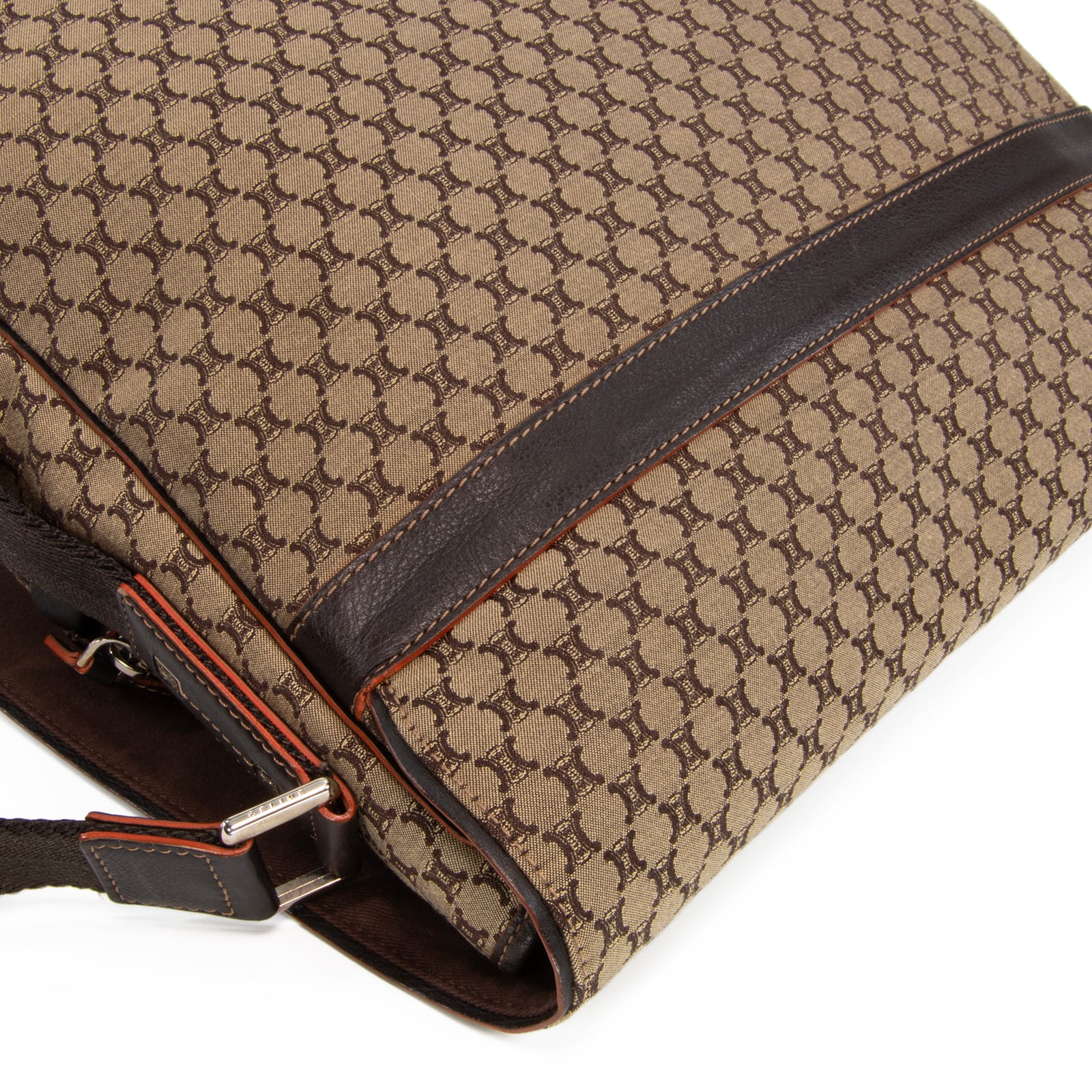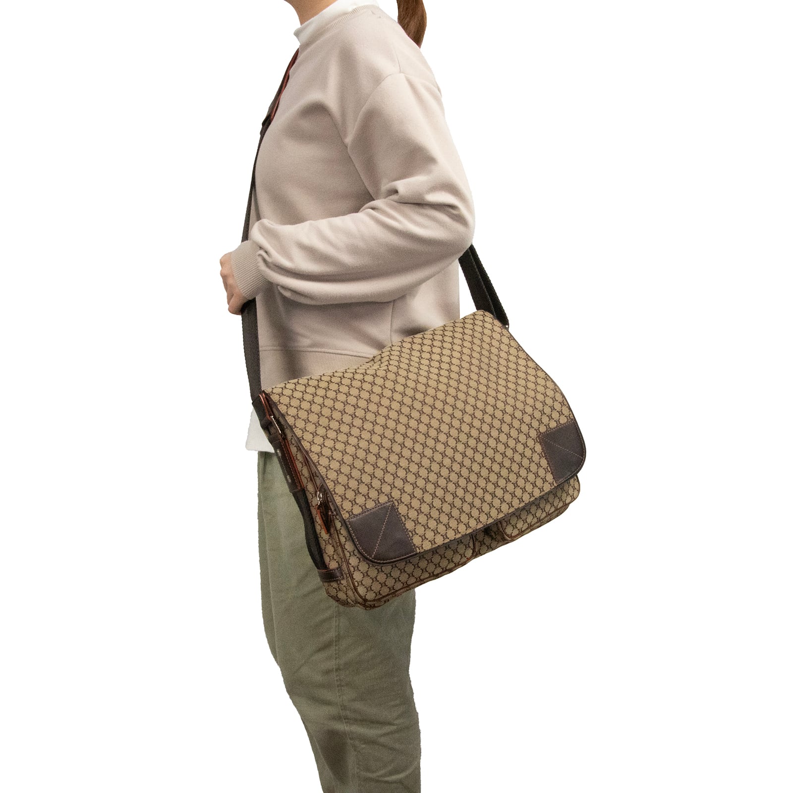 本物 送料無料 セリーヌ ショルダーバッグ メッセンジャーバッグ メンズ レディース マカダム 茶色 ロゴ マーク 大容量 鞄 バック L131