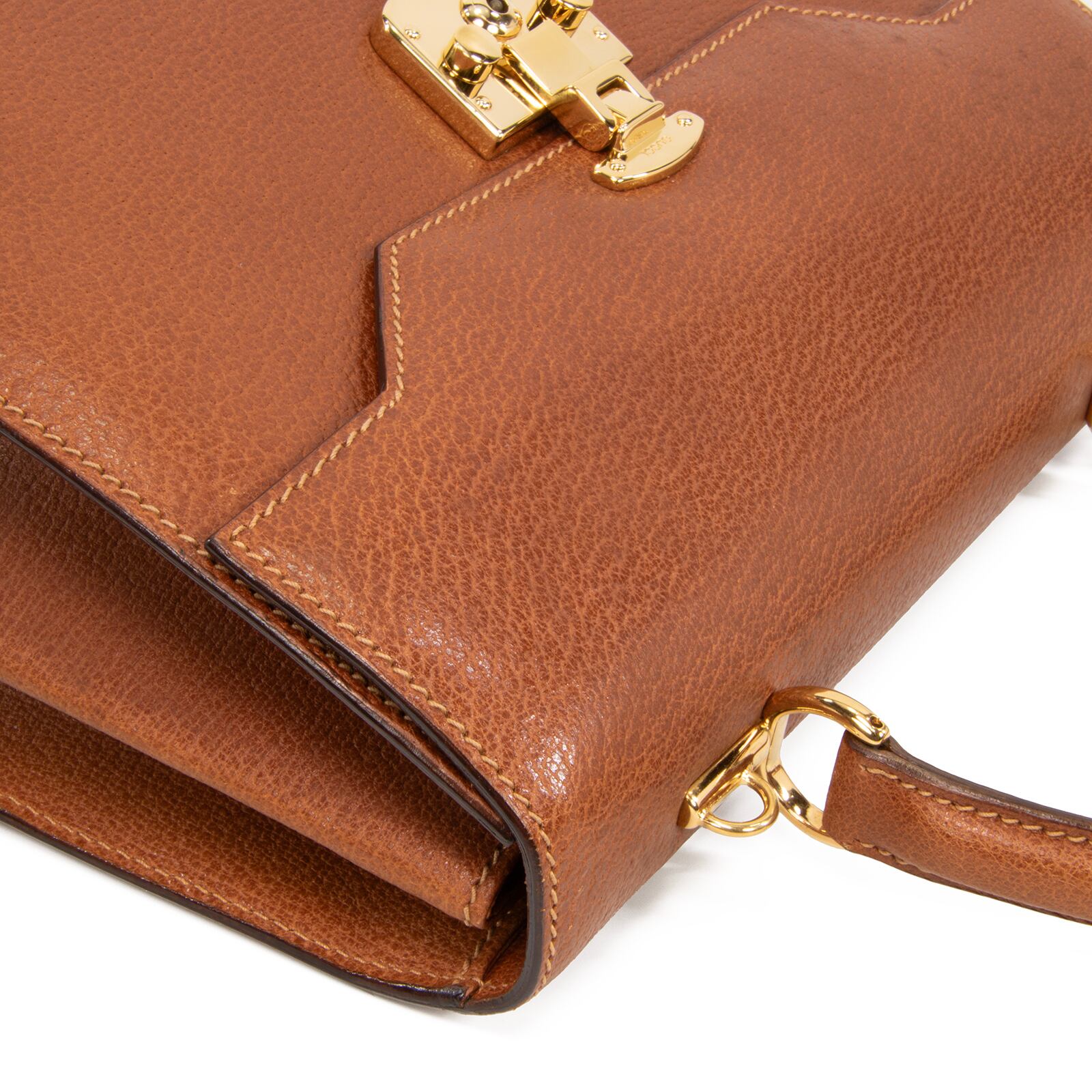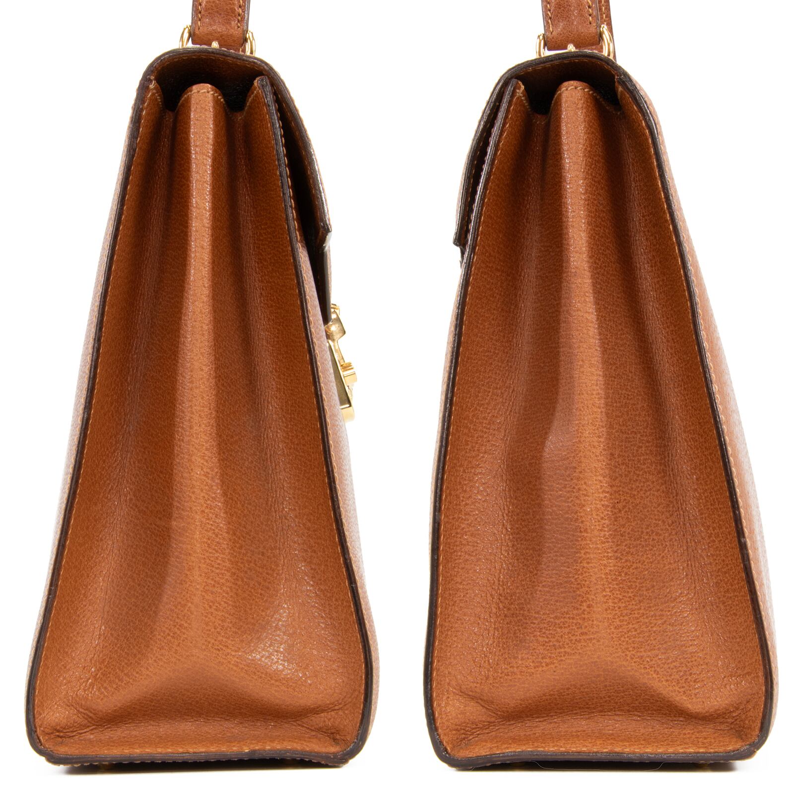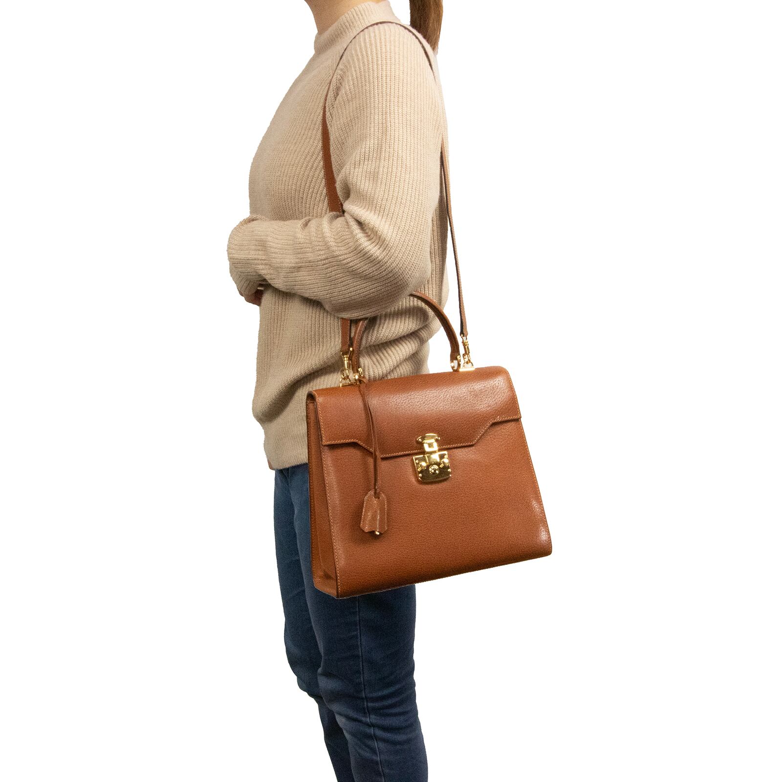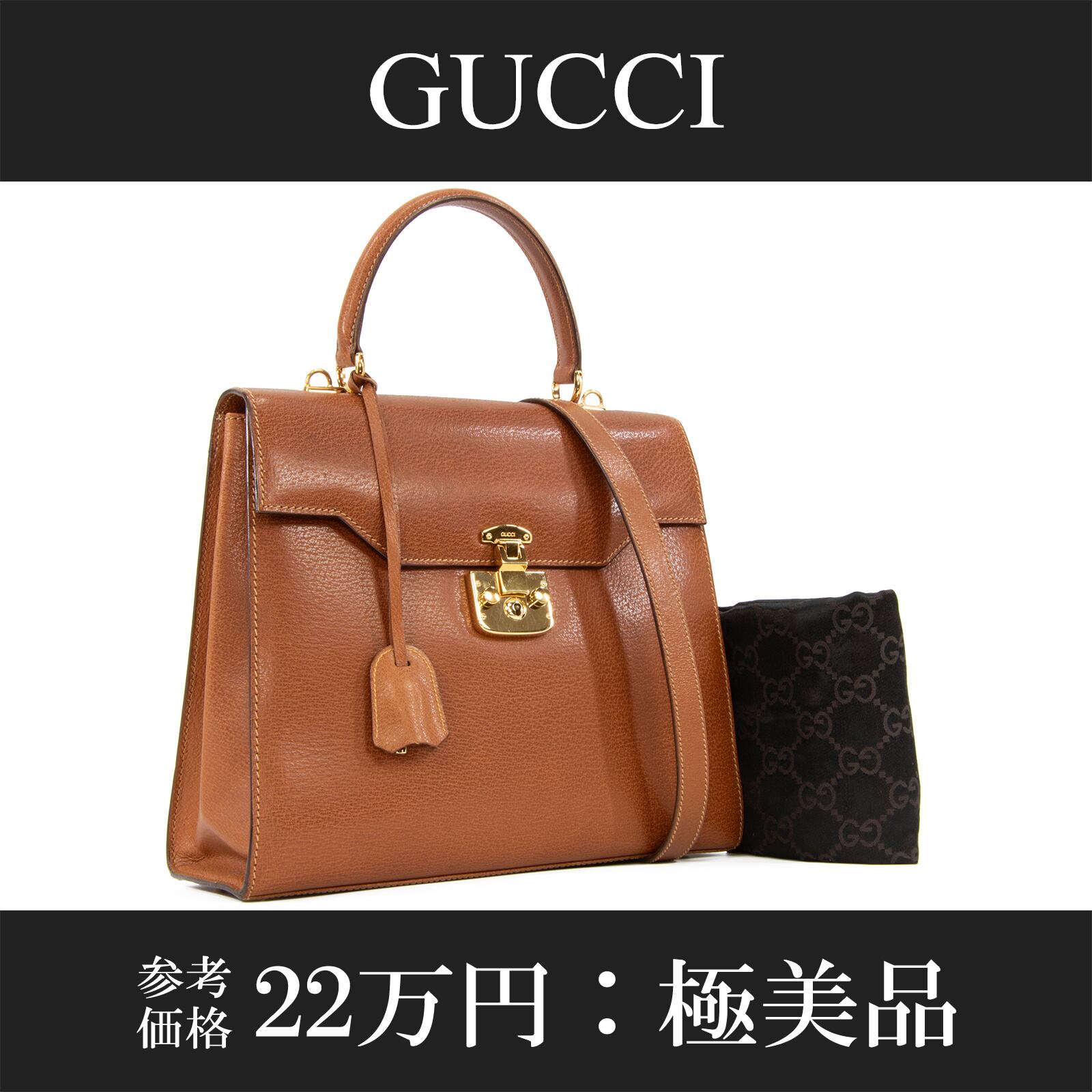 本物 送料無料 オールドグッチ 2WAYショルダーバッグ レディロック 茶色 ダイアナ妃愛用モデル ロゴ 自立可能 フォーマル 綺麗 バック L135