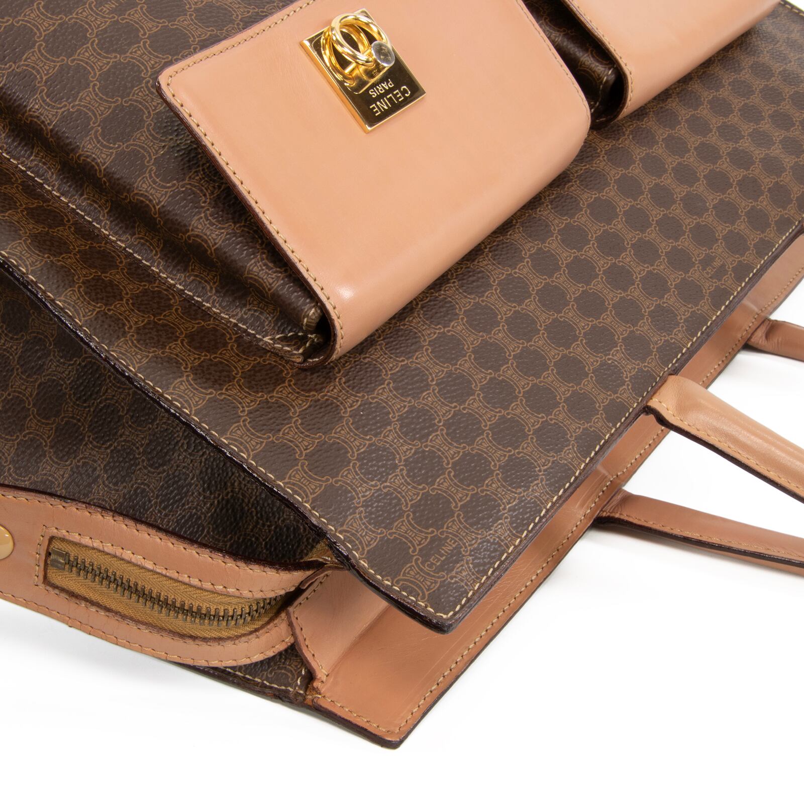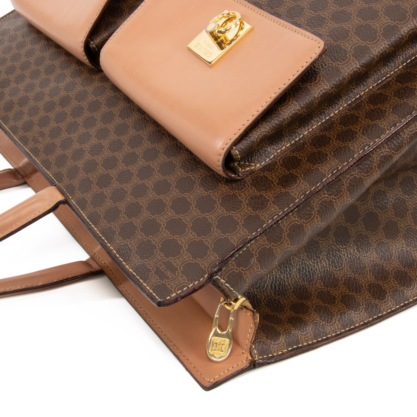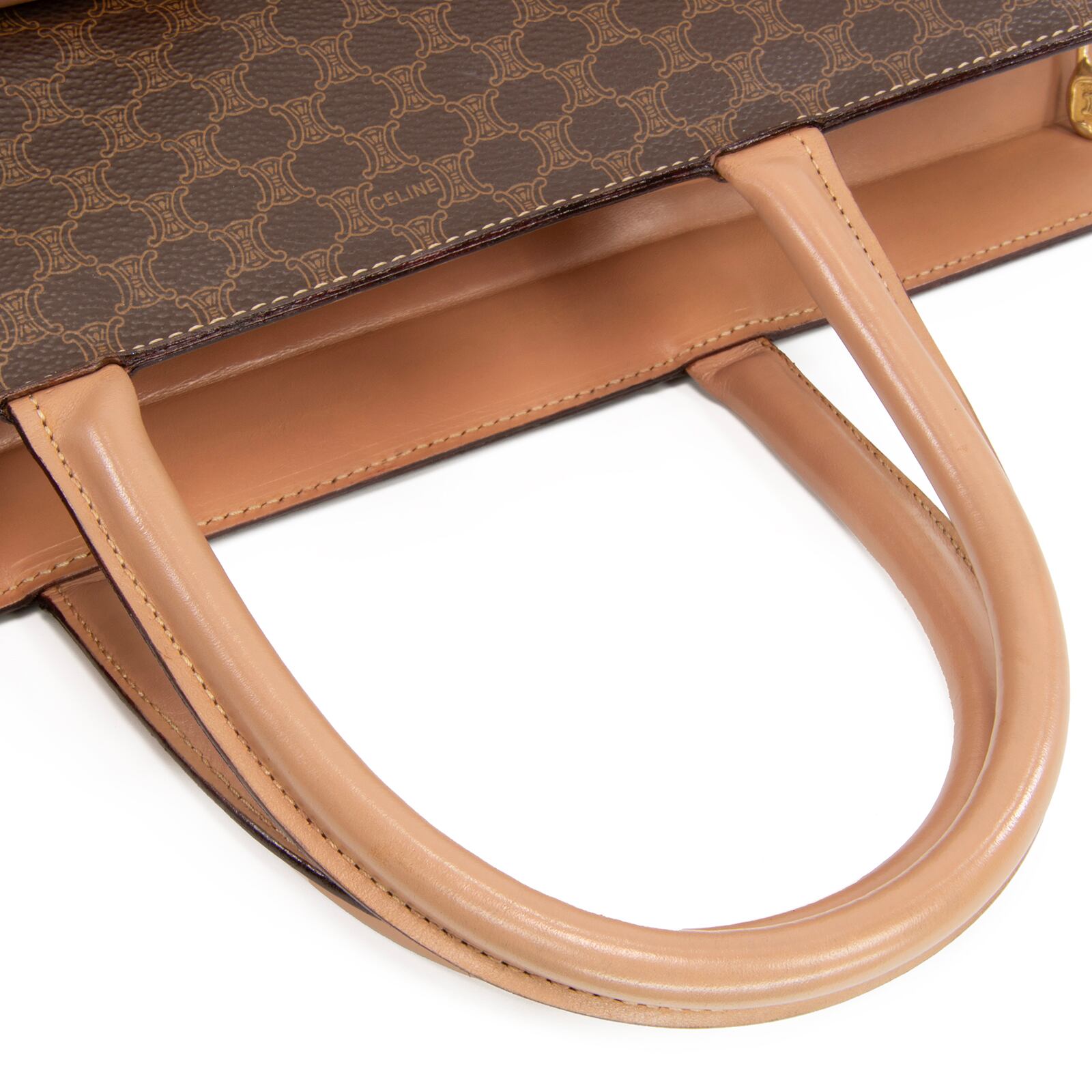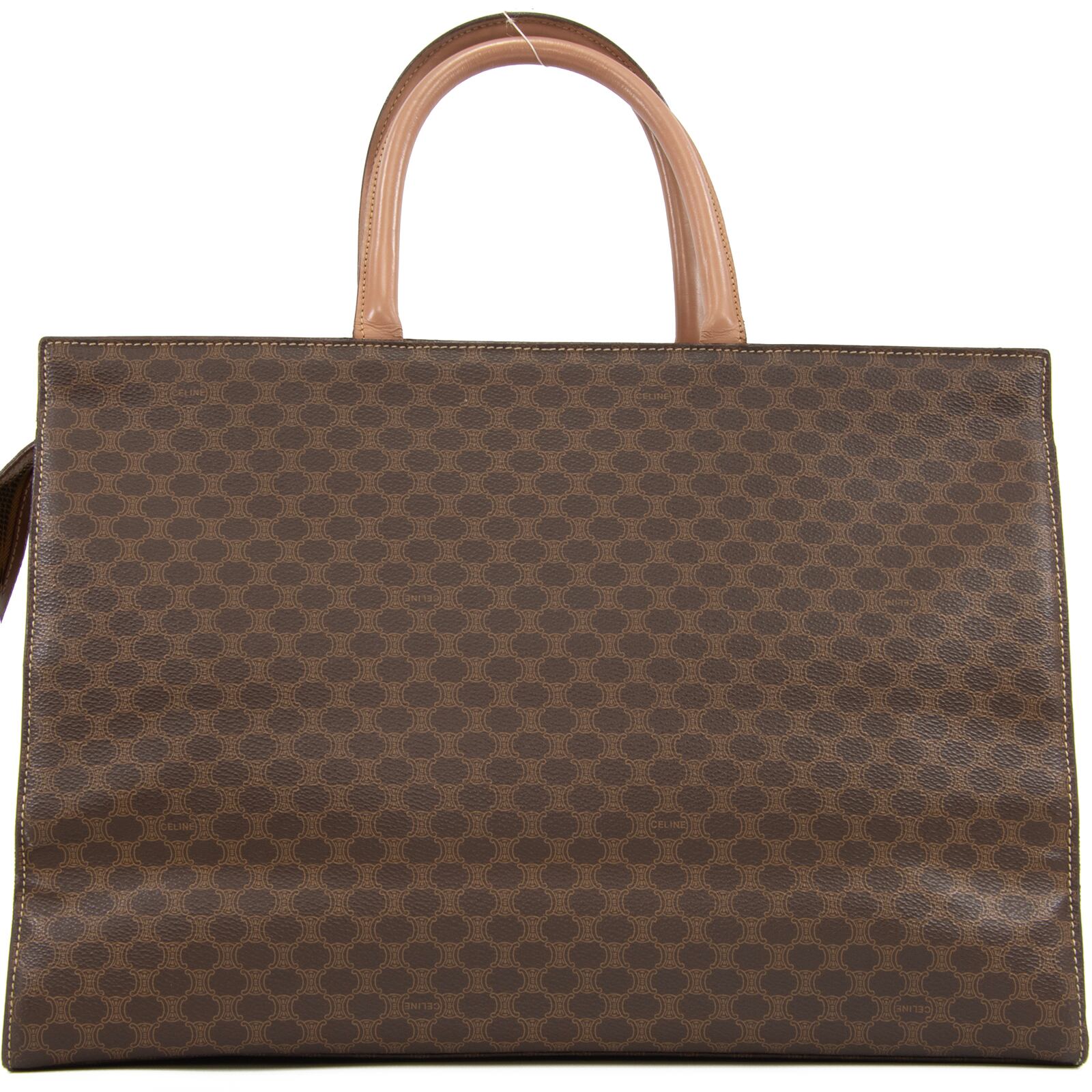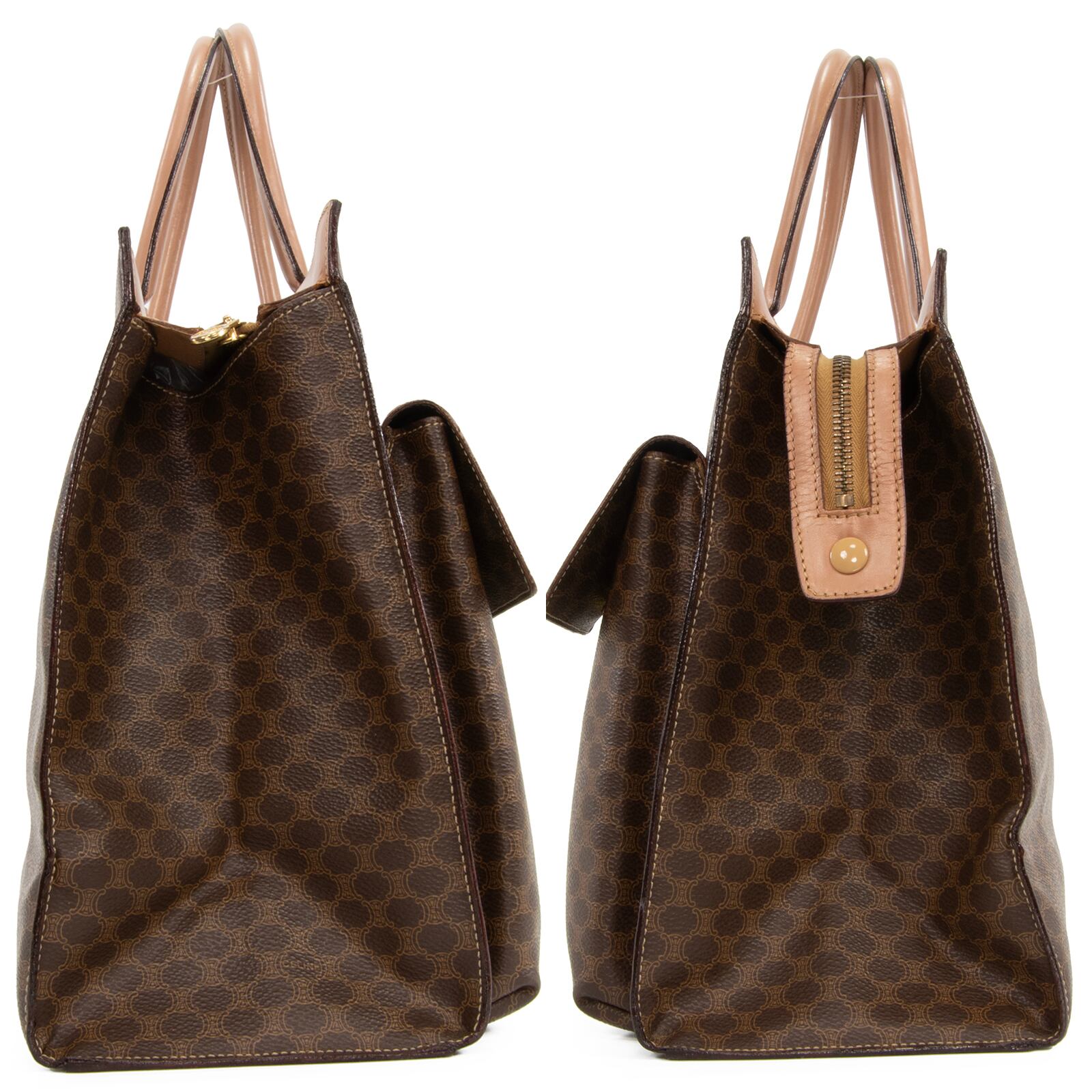 本物 送料無料 オールドセリーヌ ハンドバッグ メンズ レディース マカダム 茶色 ブラウン ヴィンテージ レア ロゴ マーク 鞄 バック L136