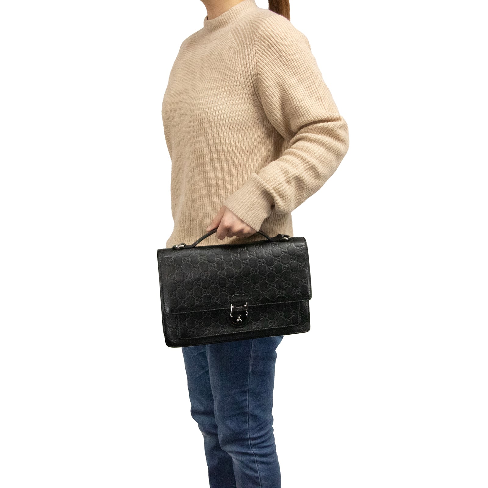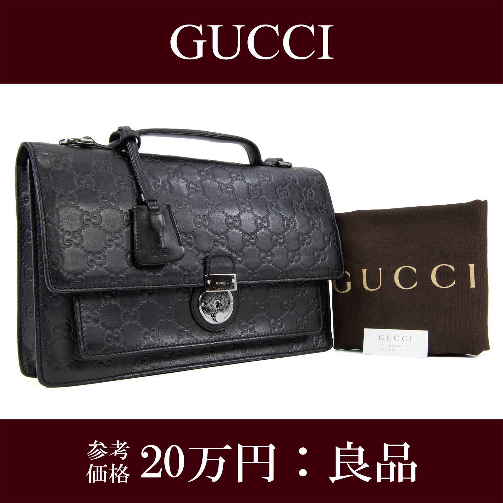 本物 送料無料 グッチ ハンドバッグ メンズ レディース シマレザー 黒 ブラック レア サッチェルバッグ GGロゴ マーク 総柄 鞄 バック F218