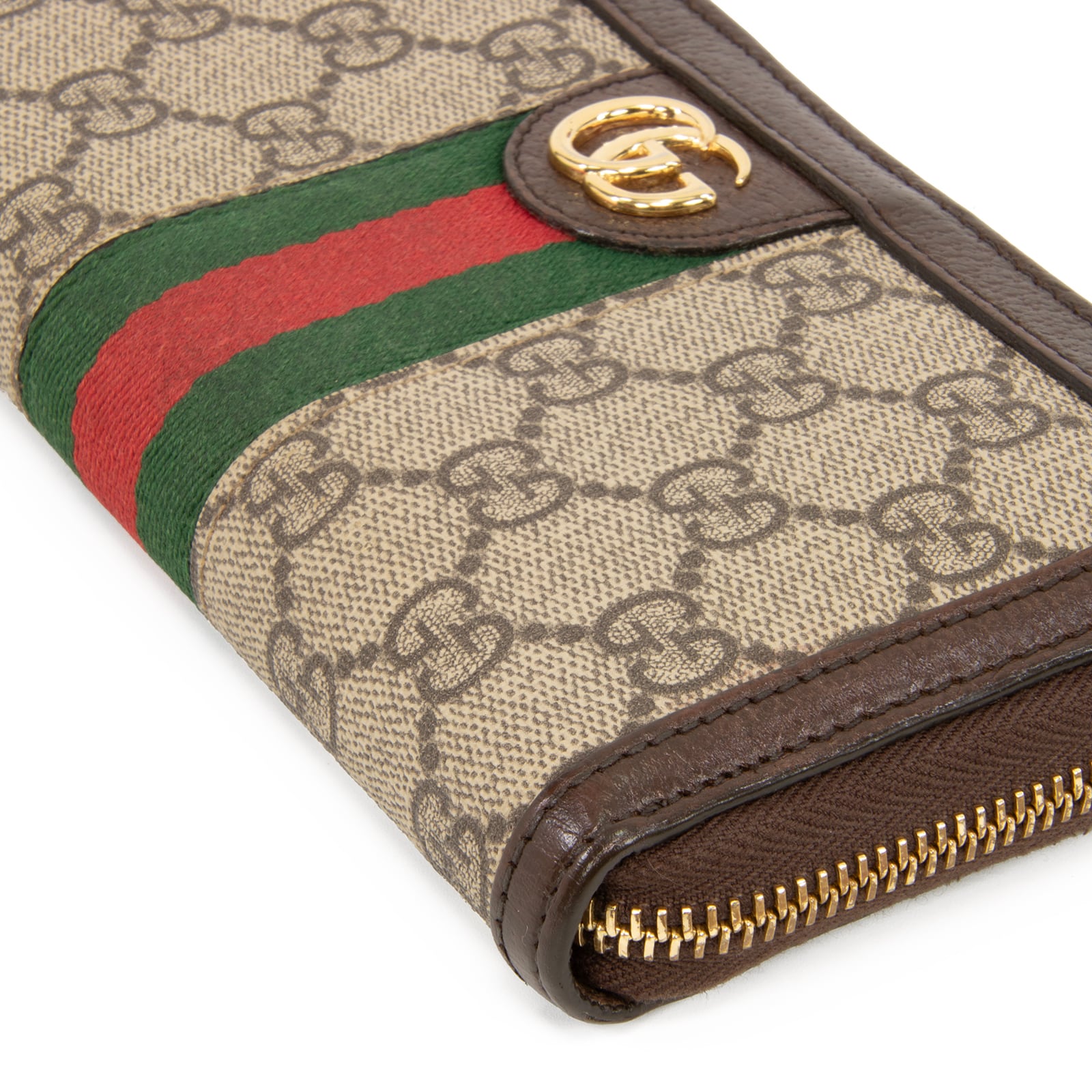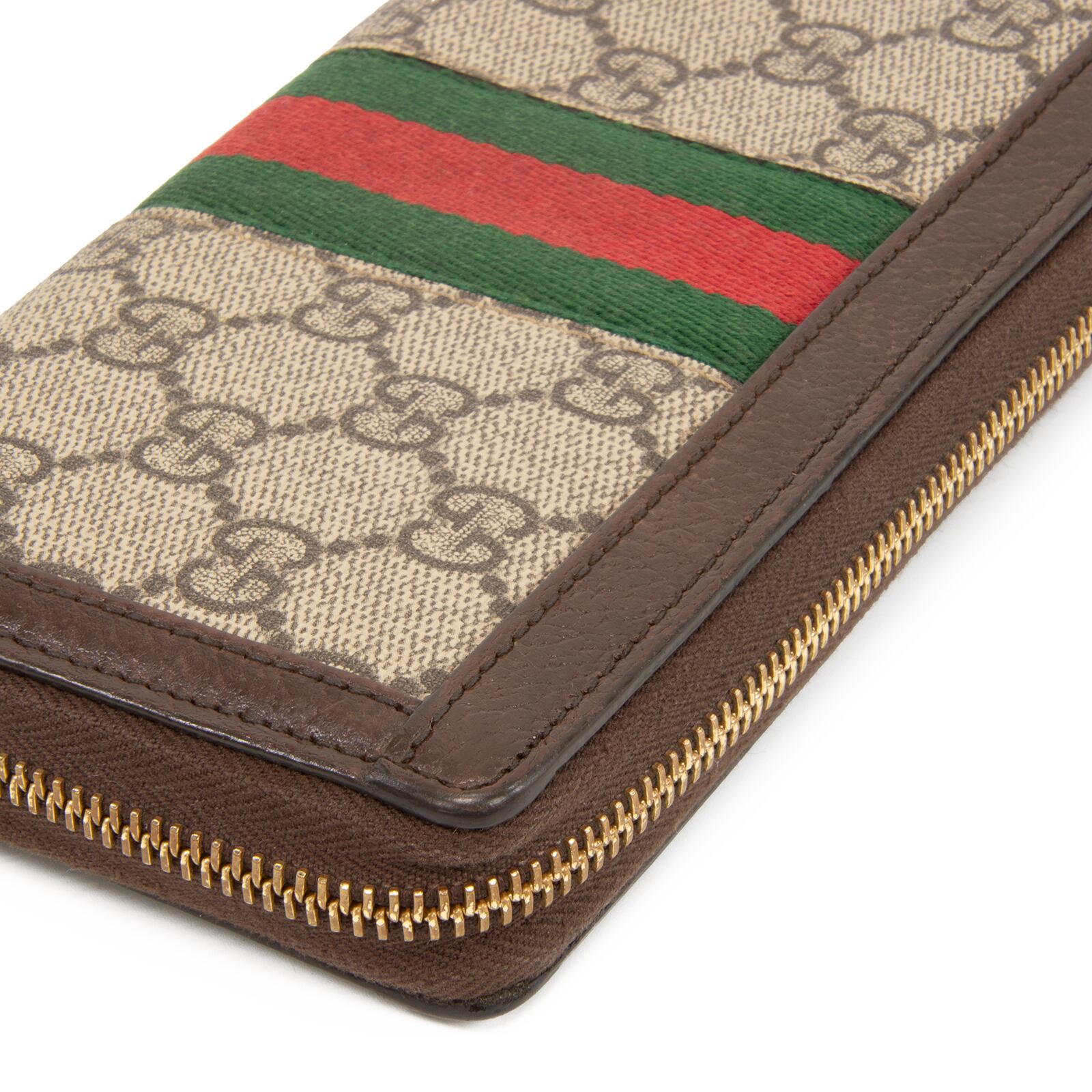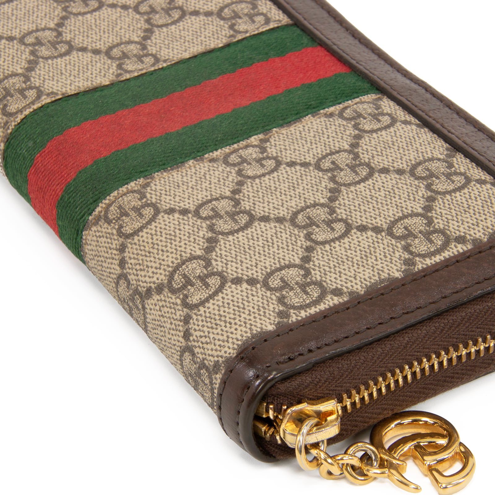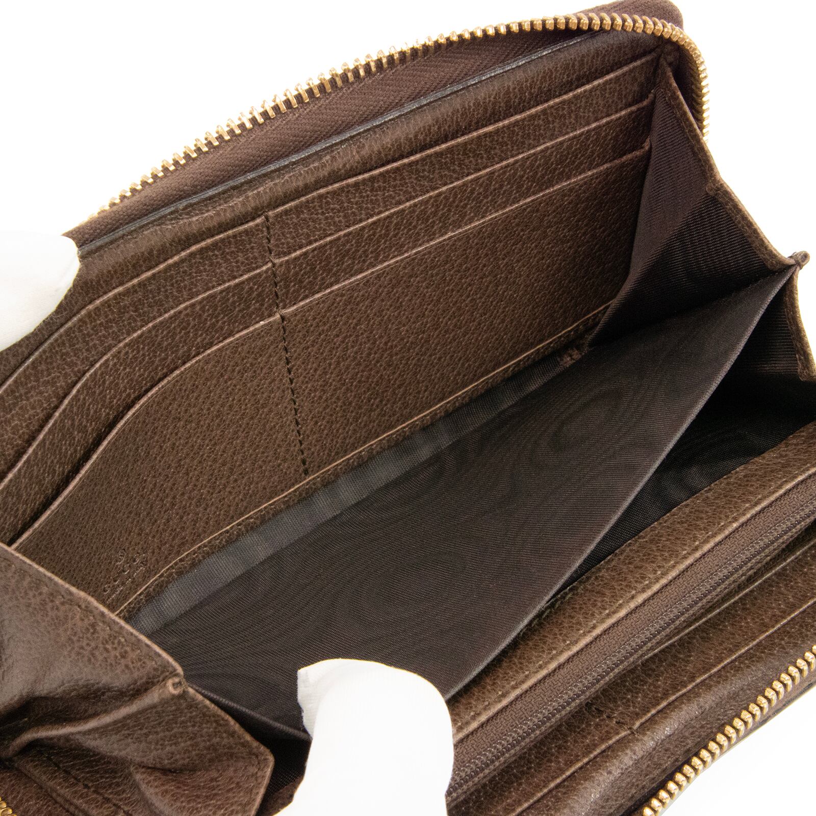 本物 送料無料 グッチ 長財布 ラウンドファスナー メンズ レディース オフィディア GGスプリーム 茶色 マーク シェリーライン 赤緑 H052