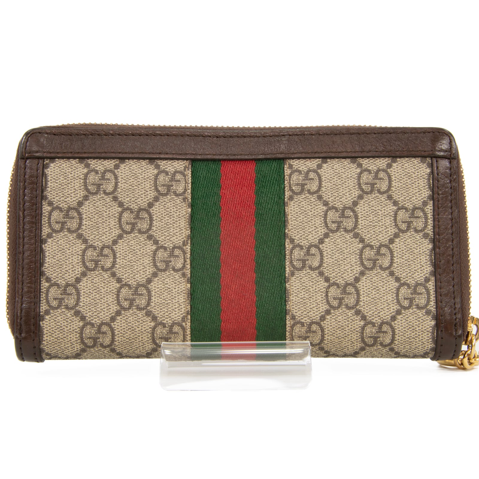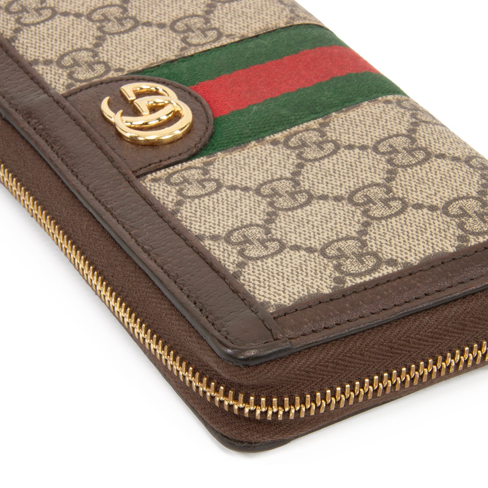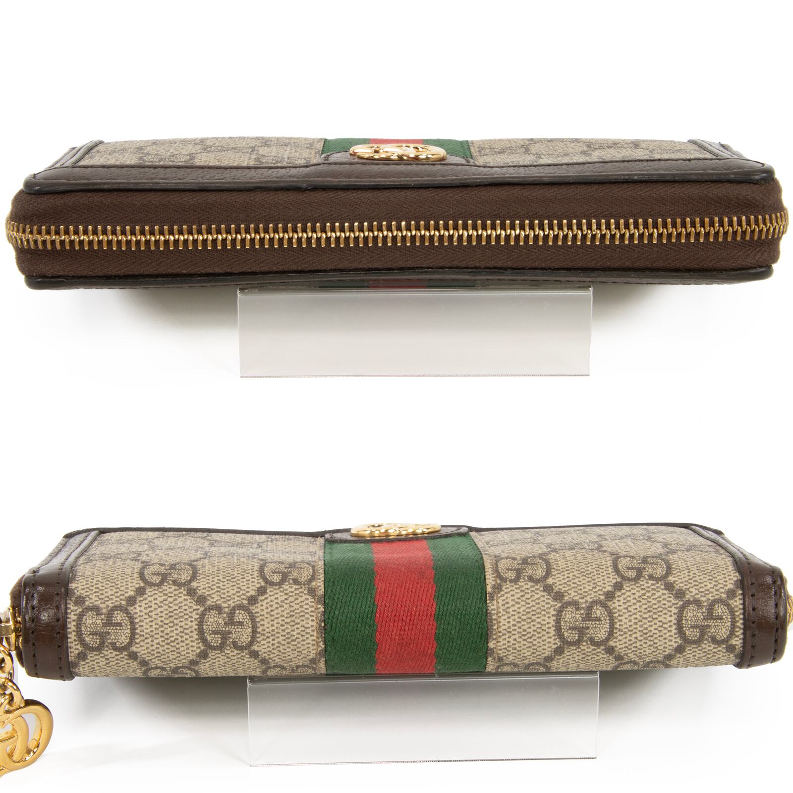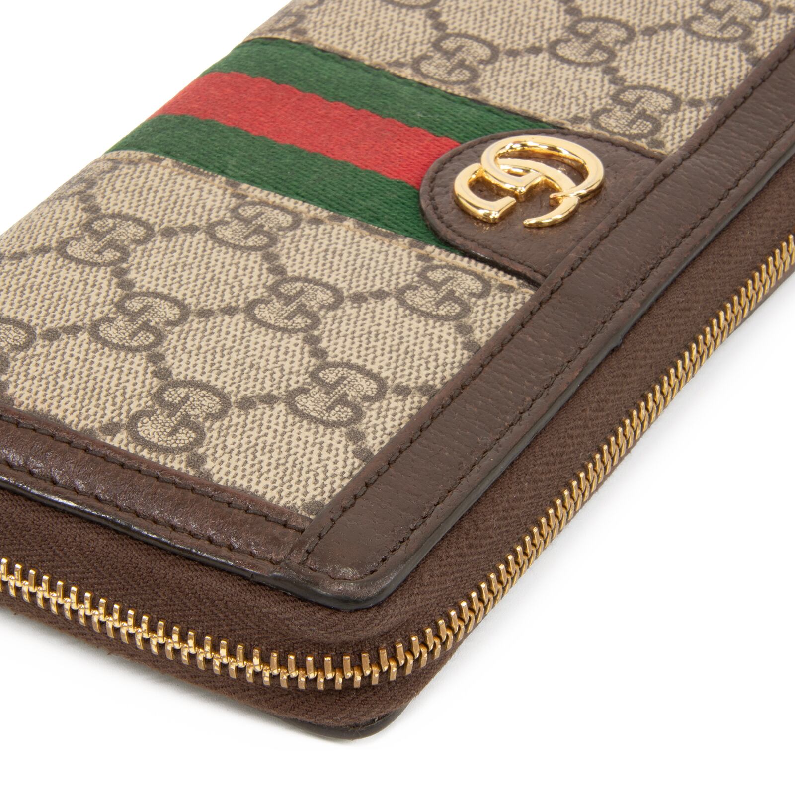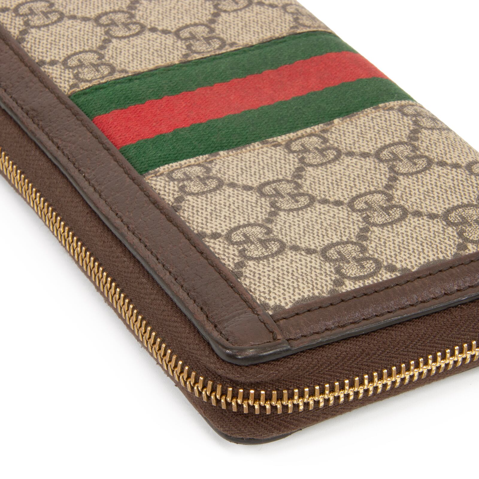 本物 送料無料 グッチ 長財布 ラウンドファスナー メンズ レディース オフィディア GGスプリーム 茶色 マーク シェリーライン 赤緑 H052