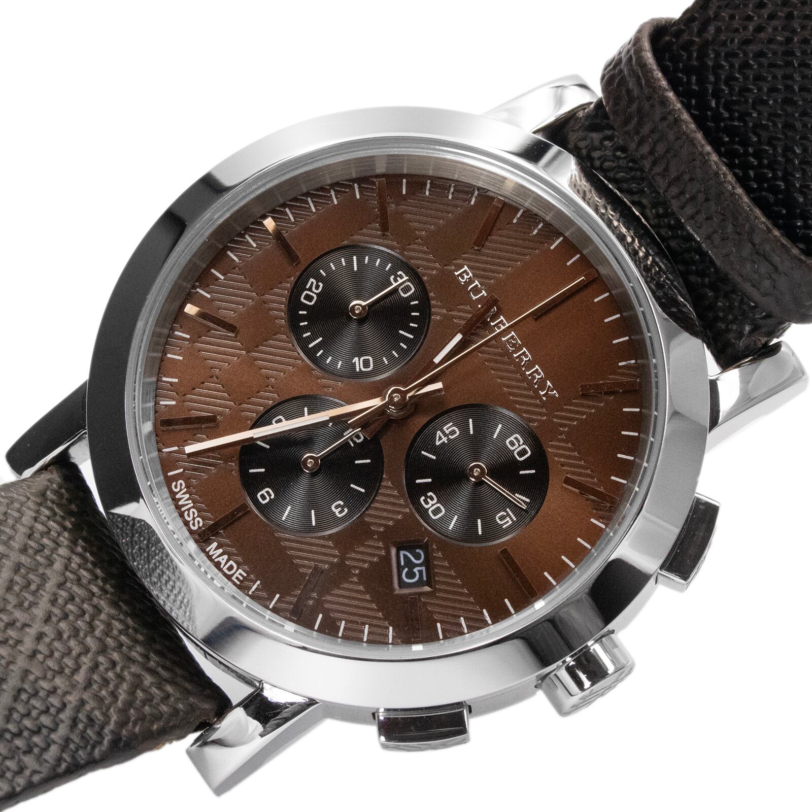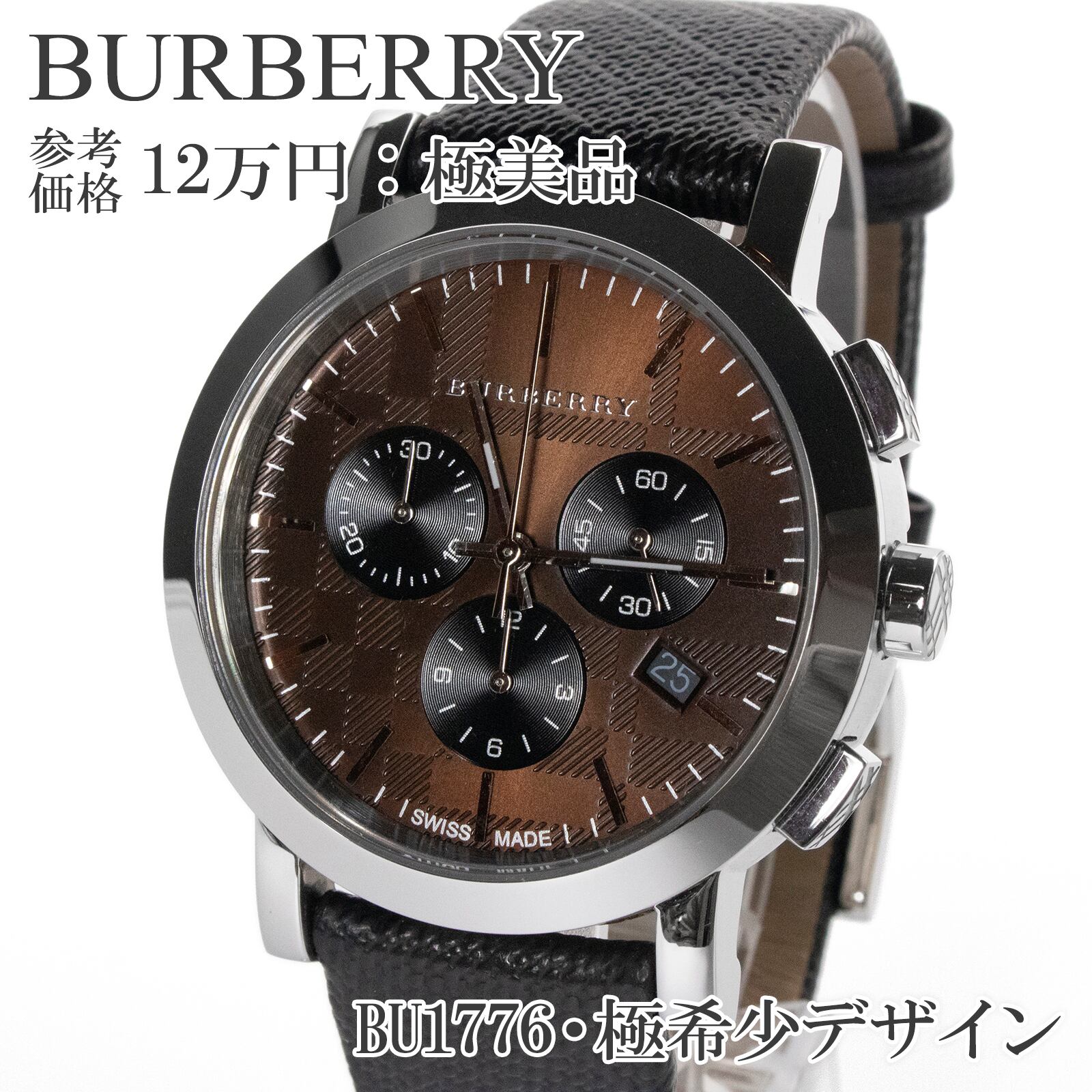 送料無料 バーバリー 腕時計 クオーツ メンズ ボーイズウォッチ BU1776 メタリックブラウン 茶色系 革ベルト レザー ロゴ マーク 海外限定モデル バーインデックス クール スタイリッシュ クロノグラフ 上品 レア 綺麗 X070