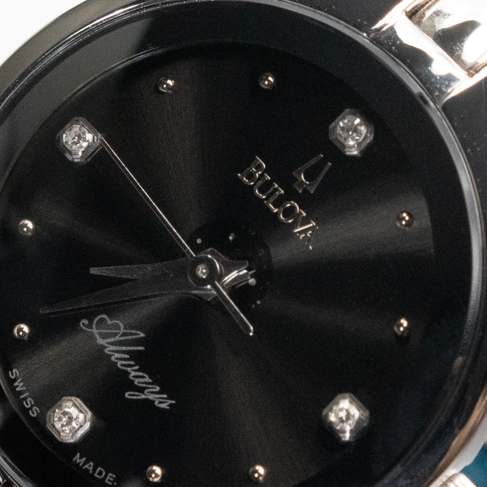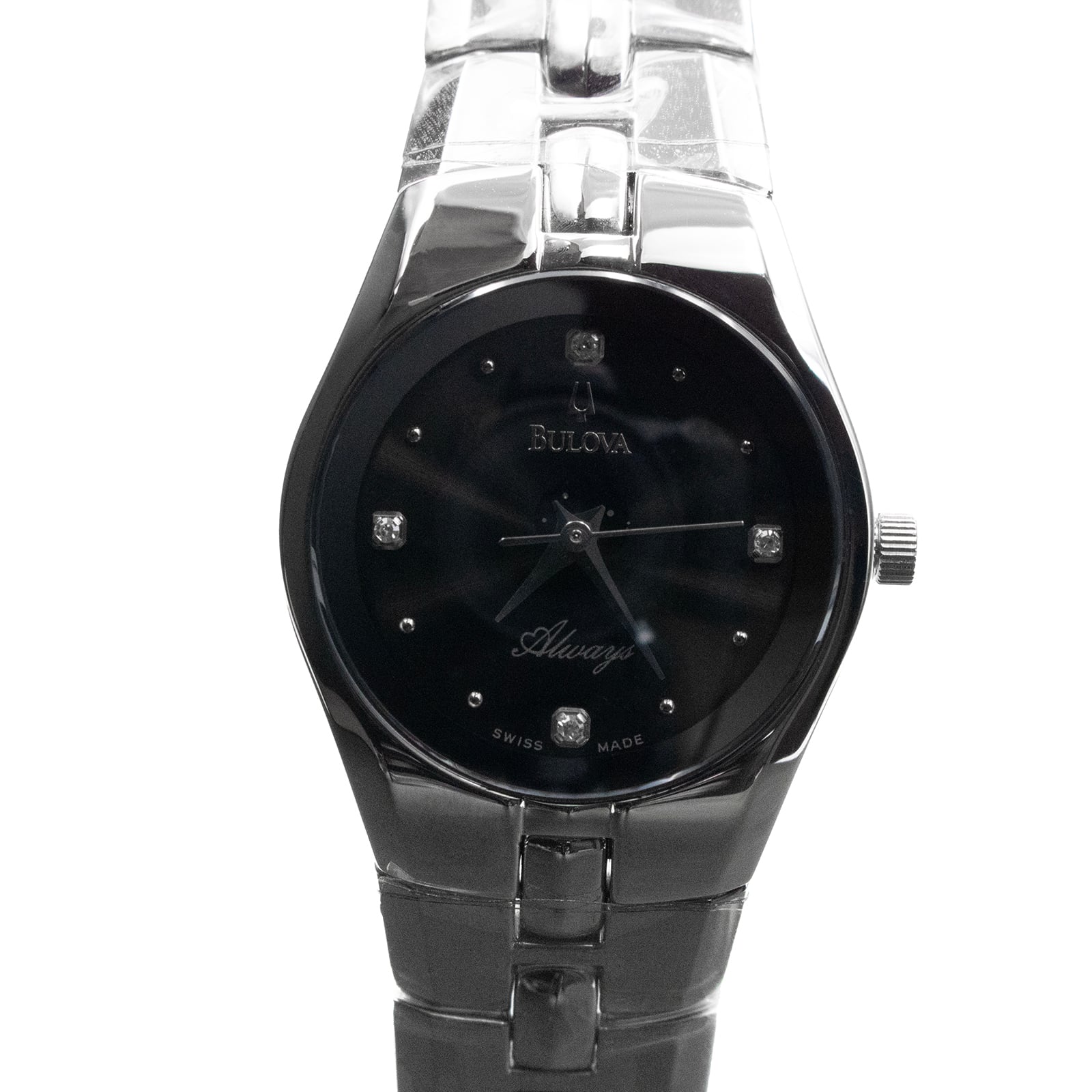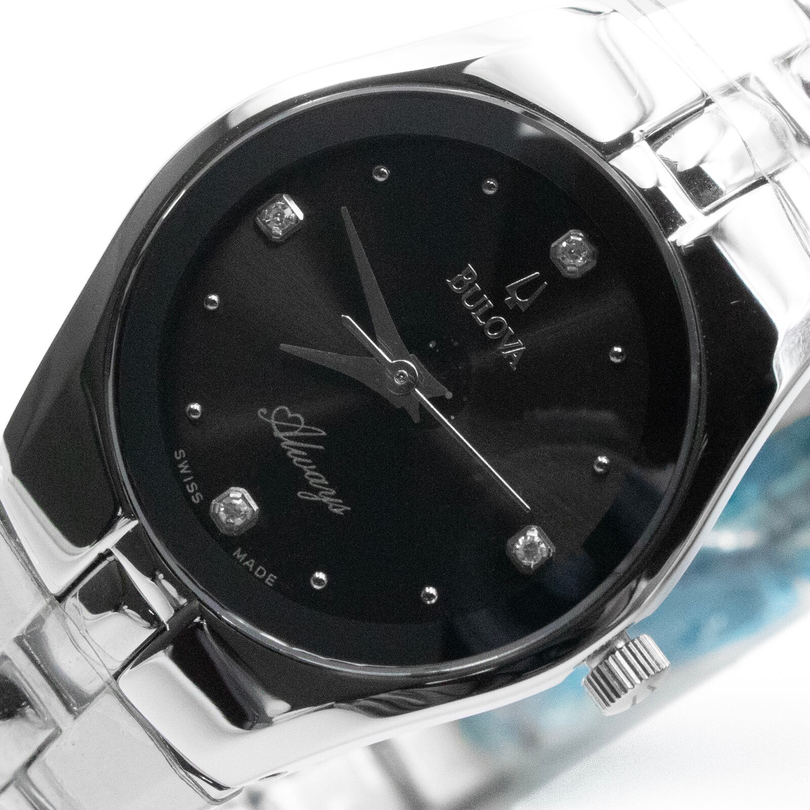 送料無料 ブローバ 腕時計 新品同様 クオーツ レディース always B137S ブラック シルバー ロゴ 4Pダイヤモンド 未使用 クォーツ 綺麗 X078