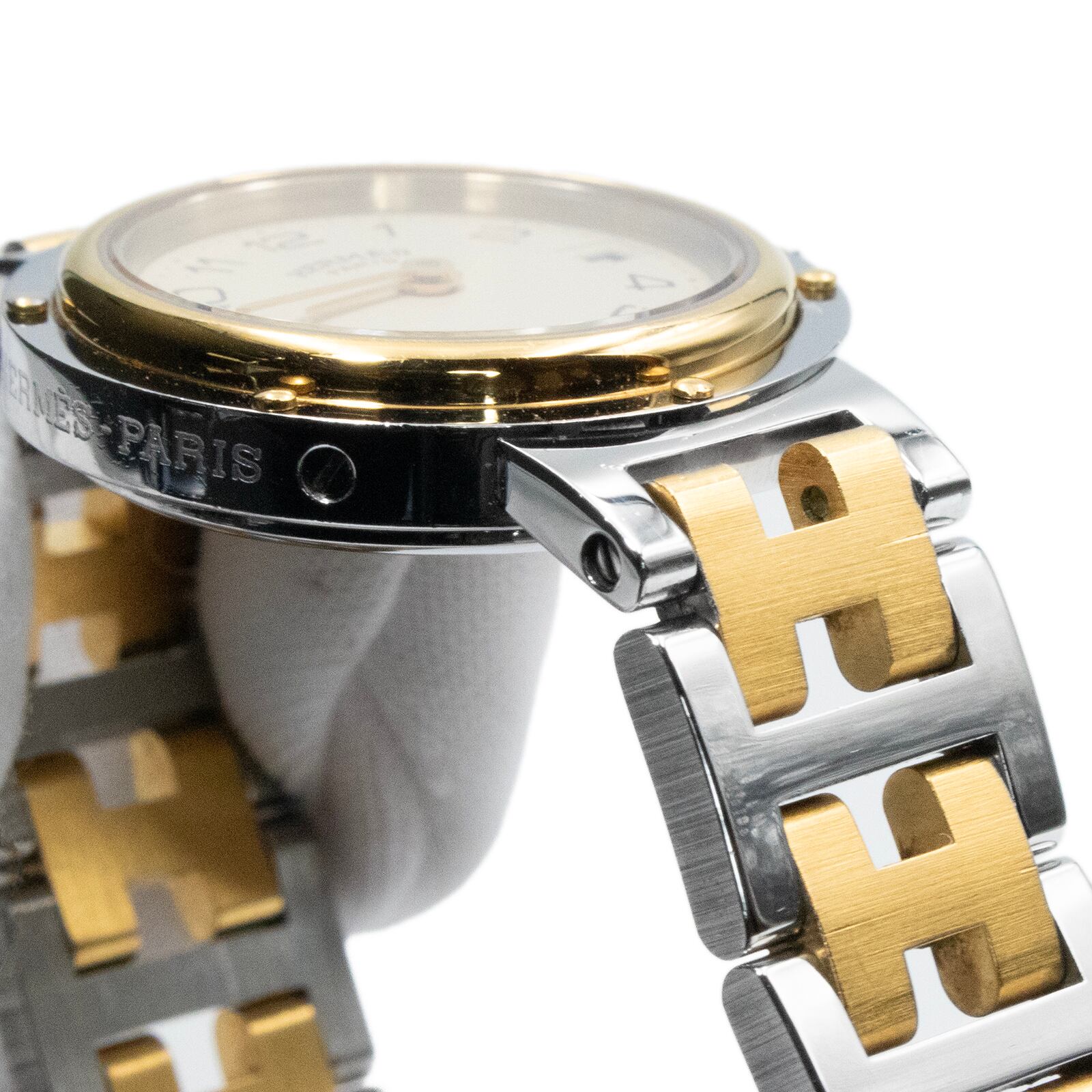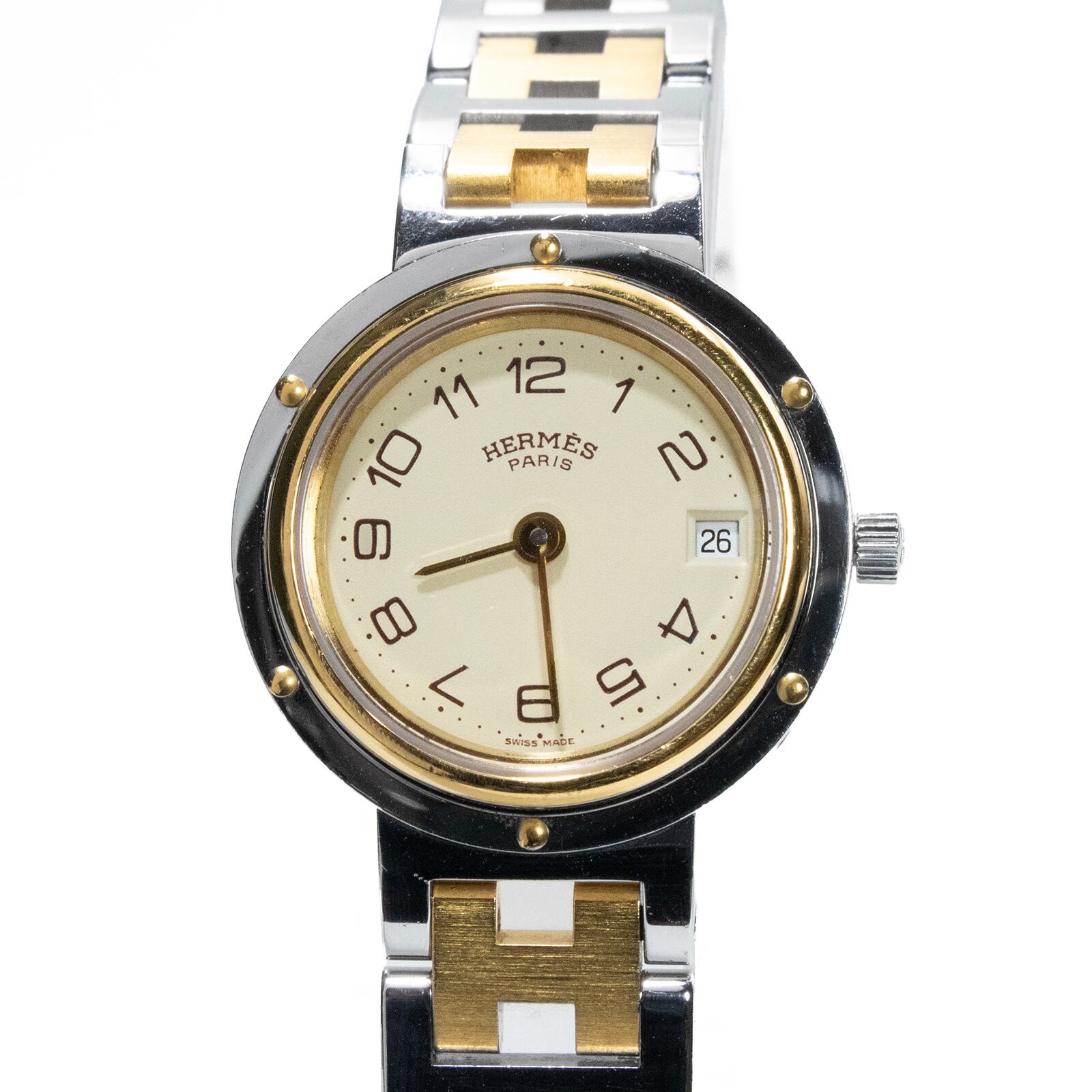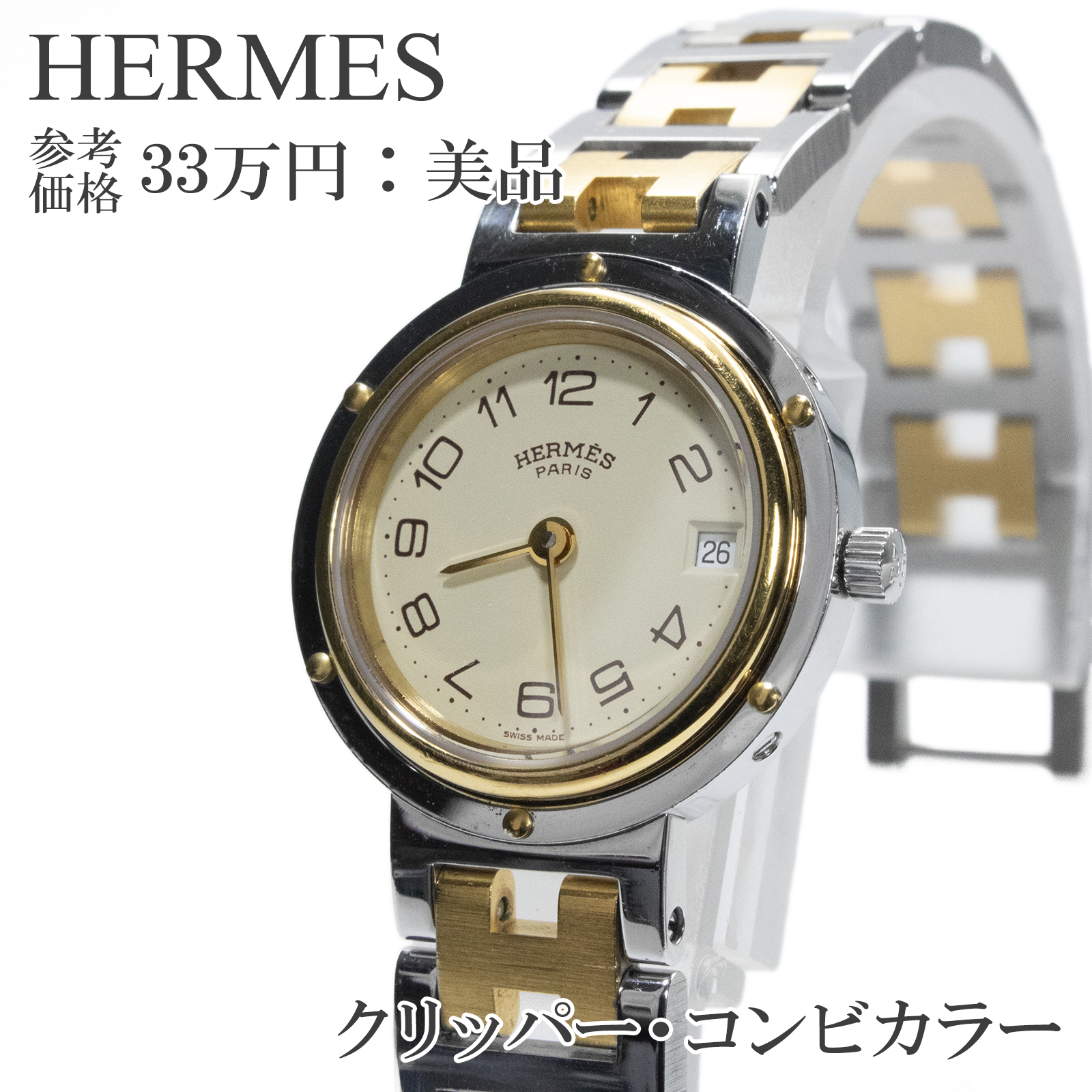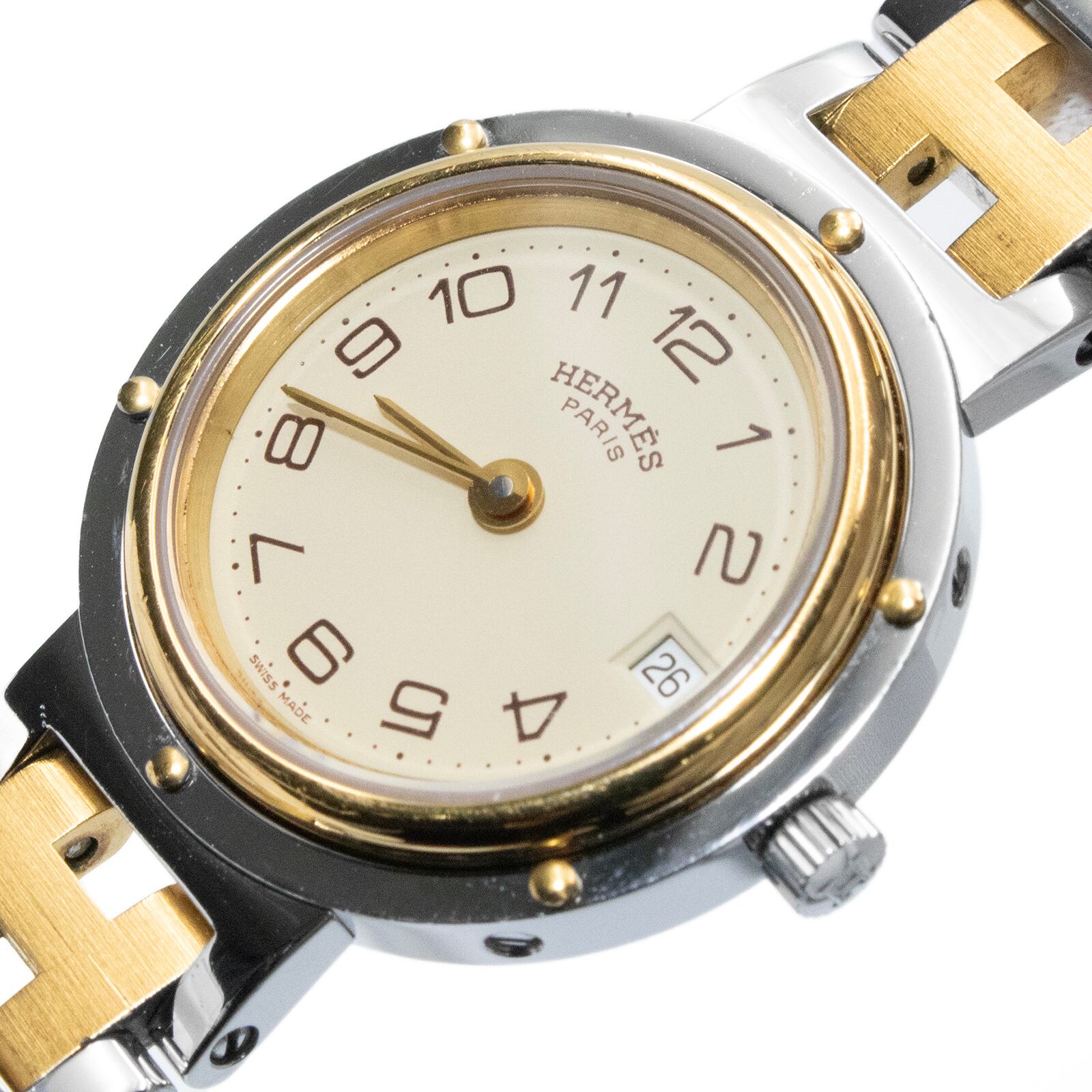 送料無料 エルメス 腕時計 クオーツ レディース ボーイズ クリッパー イエロー系 ゴールド コンビカラー 高級 ロゴ クォーツ 綺麗 X083