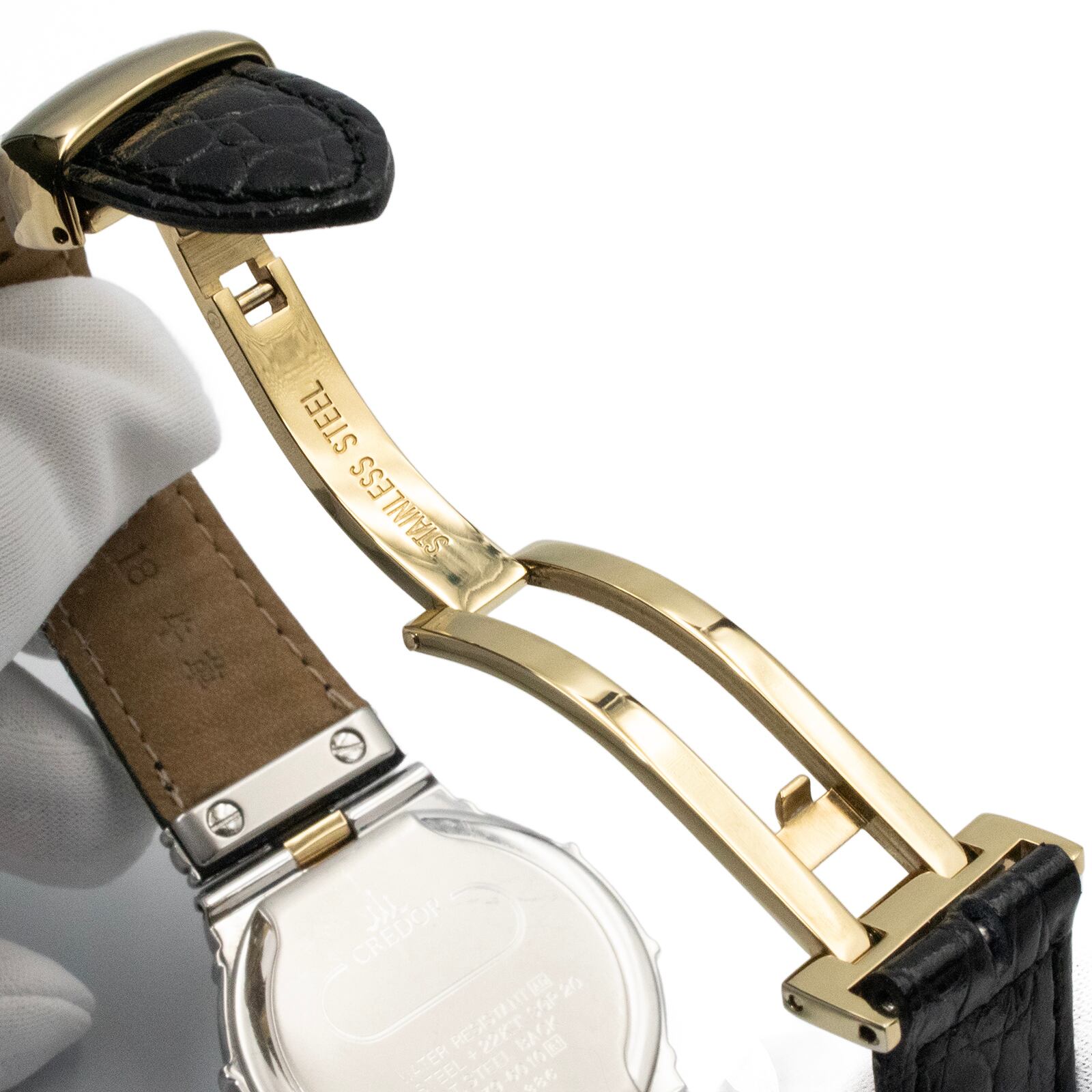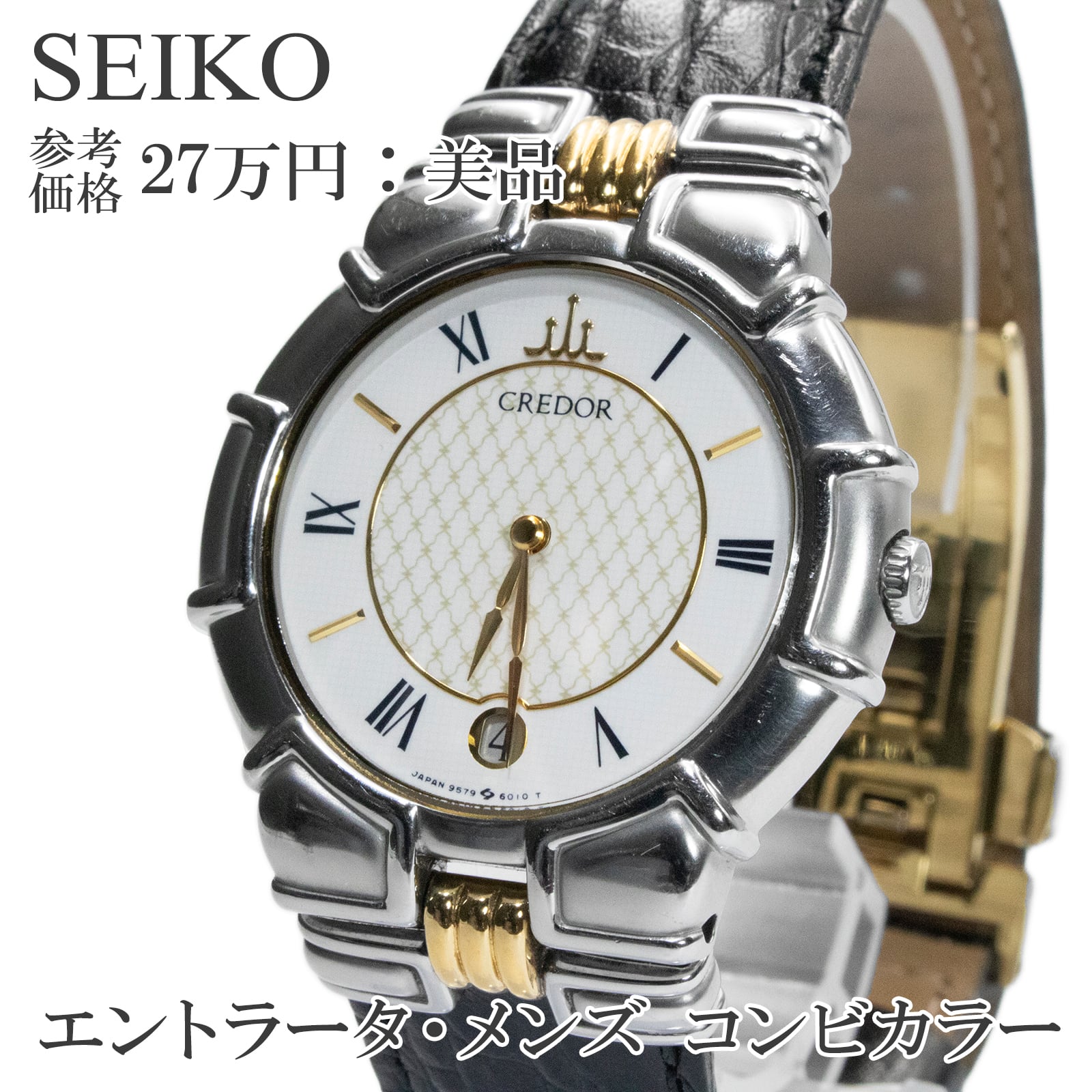 送料無料 セイコー 腕時計 メンズ CREDOR エントラータ GKJK040 ホワイト ゴールド ブラック コンビカラー ロゴ 22KT SGP レア 綺麗 Q036