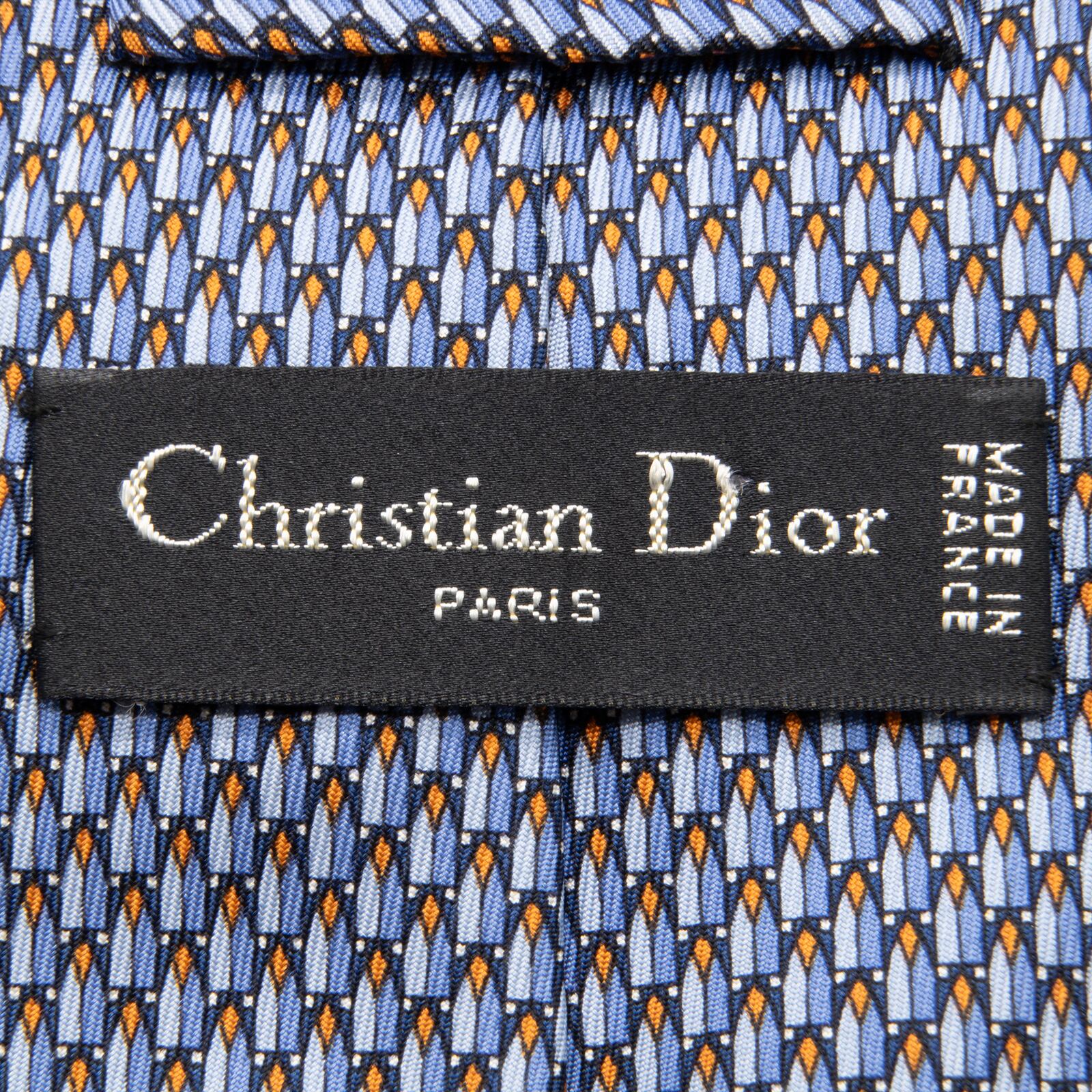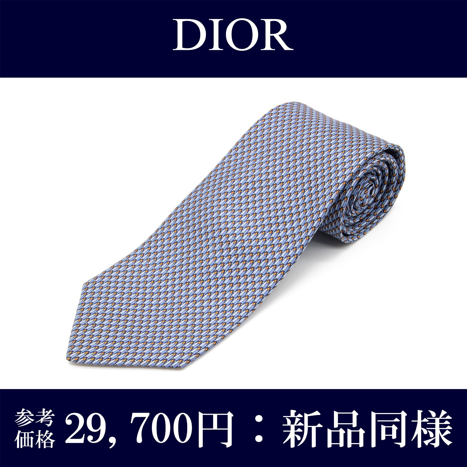 送料無料 ディオール ネクタイ 新品同様 レギュラータイ シルク 青 ブルー オレンジ ビジネス カジュアル ブランド フランス製 綺麗 N396
