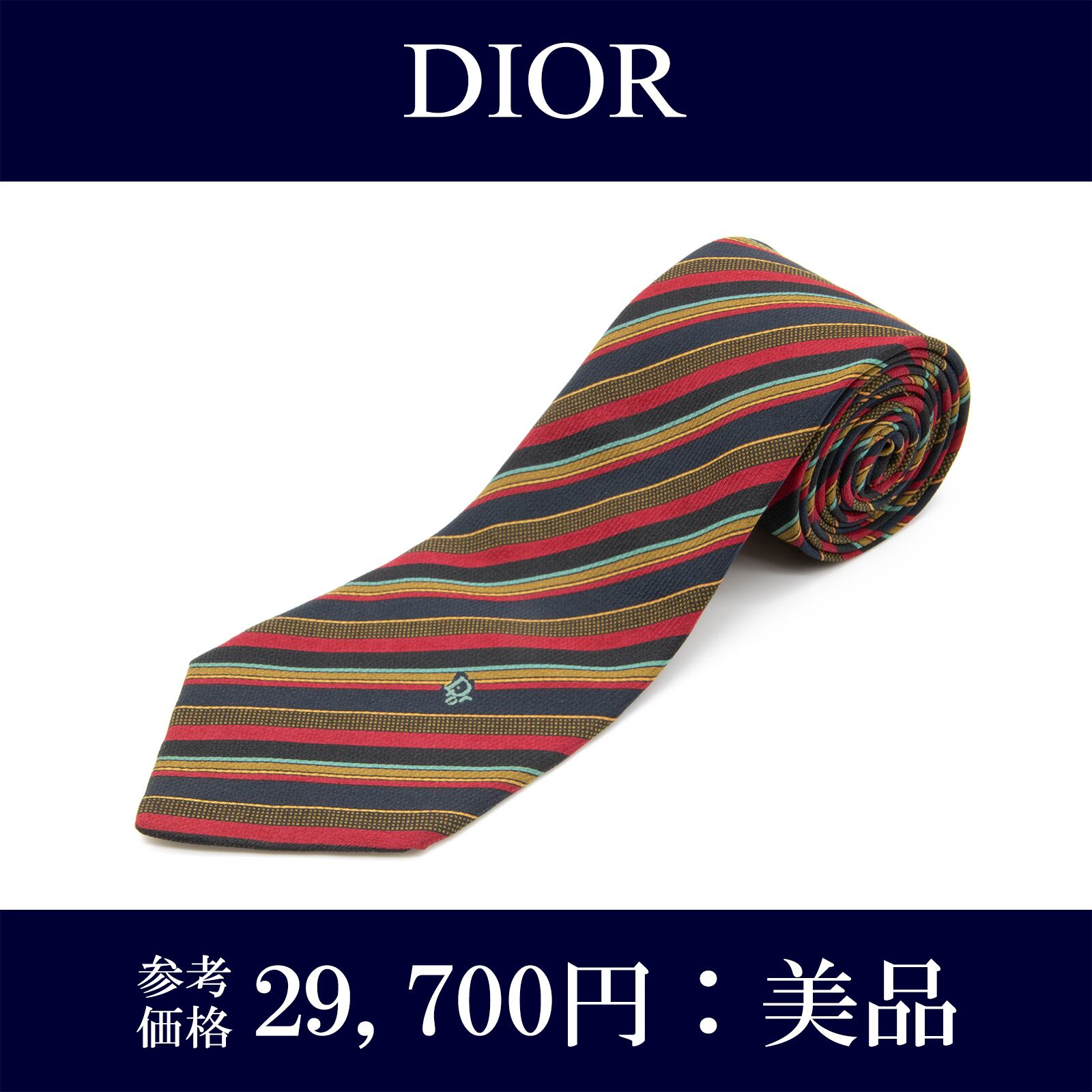 送料無料 ディオール ネクタイ レギュラー シルク ネイビーブルー 赤 レッド 黄色 ビジネス ブランド ストライプ シンプル ロゴ 綺麗 N397