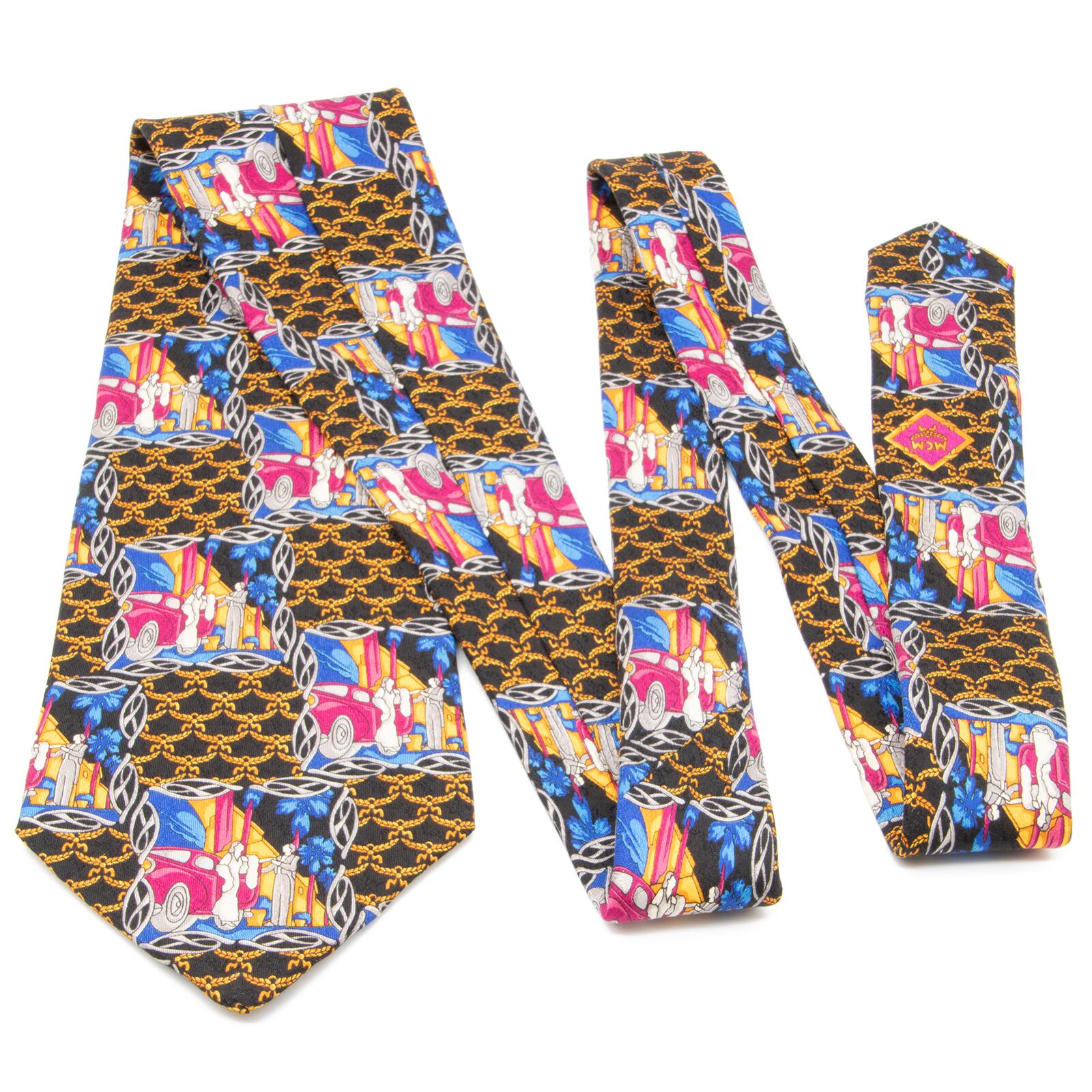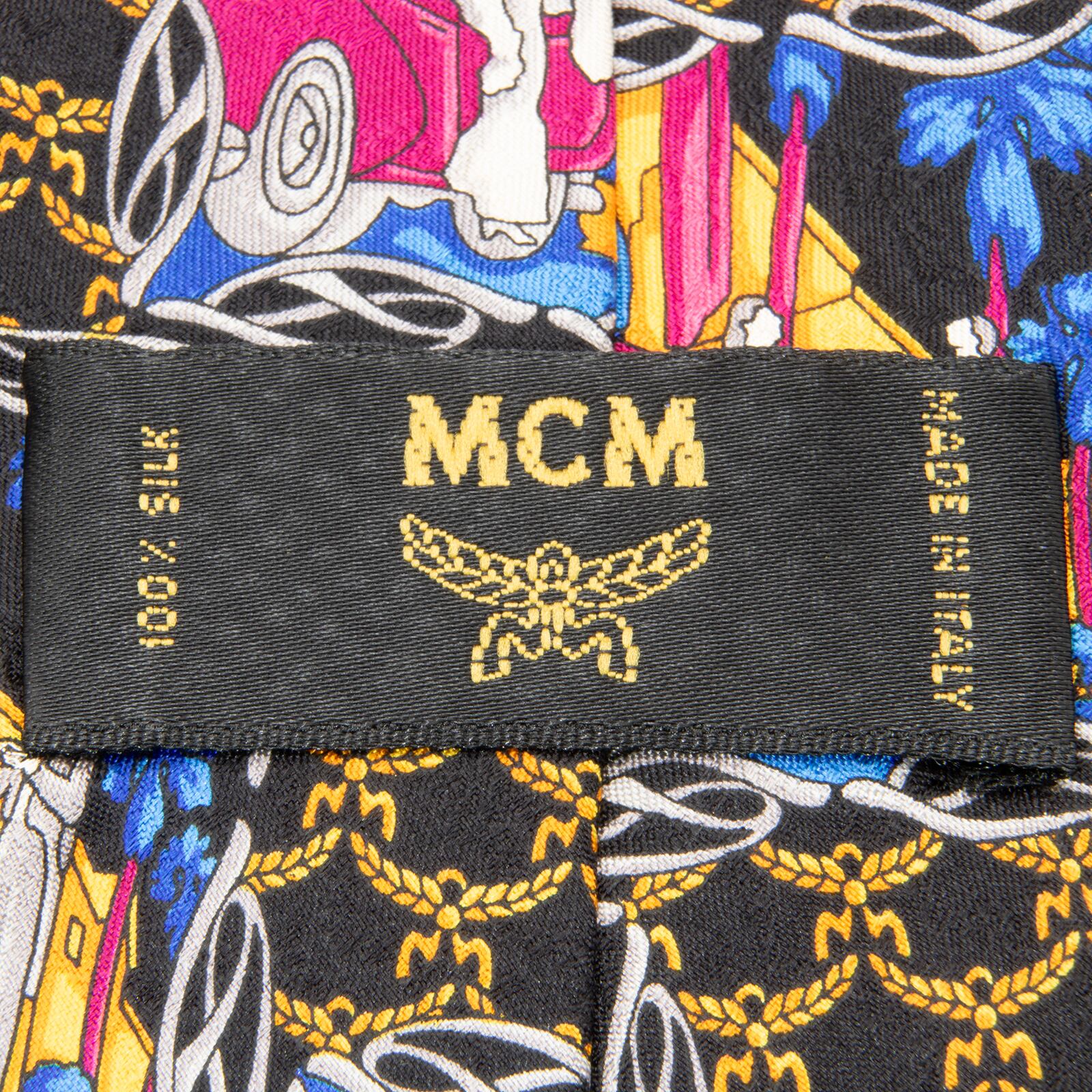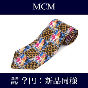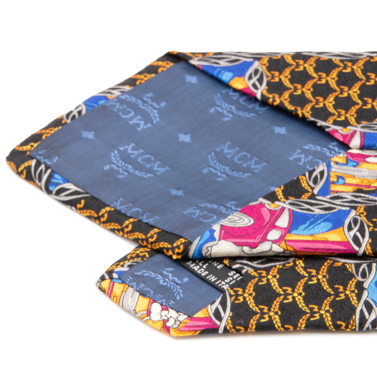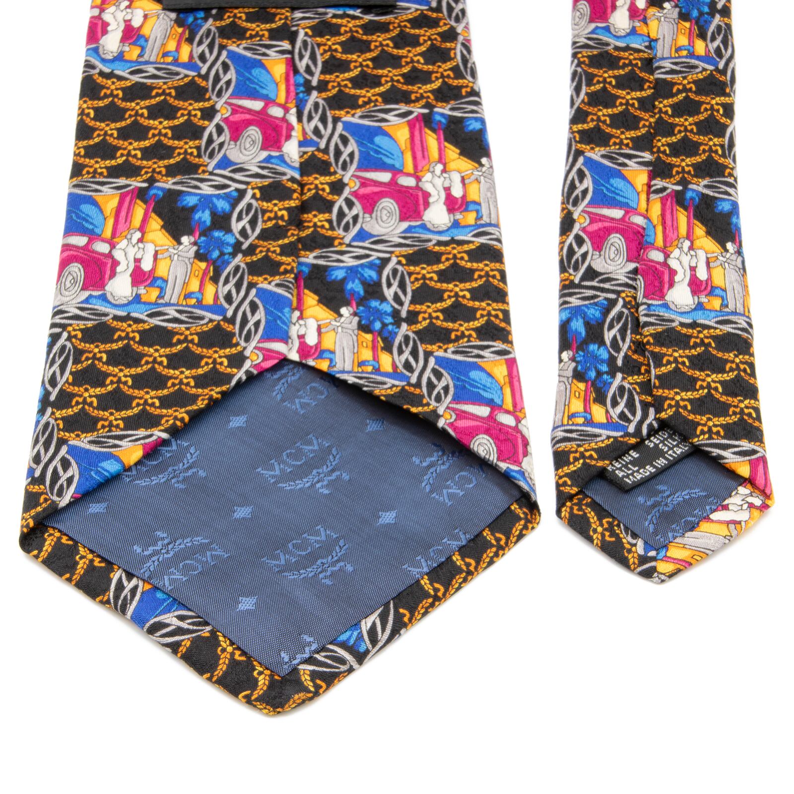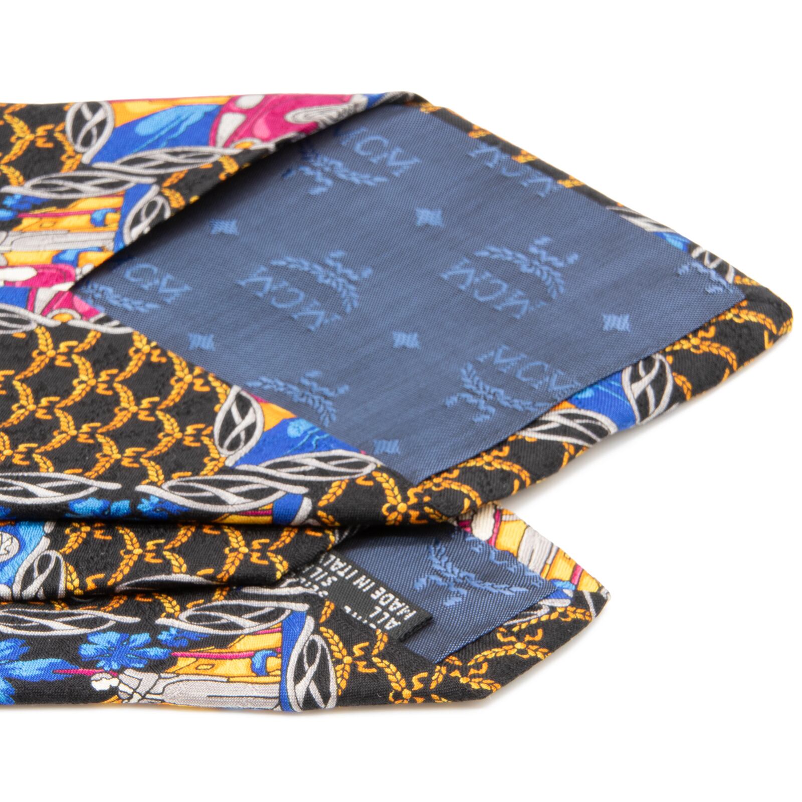 送料無料 MCM ネクタイ 新品同様 ワイドタイ シルク 黒 ブラック 黄色 青 ブルー 紫 カジュアル ブランド 派手 目立つ イタリア レア N405