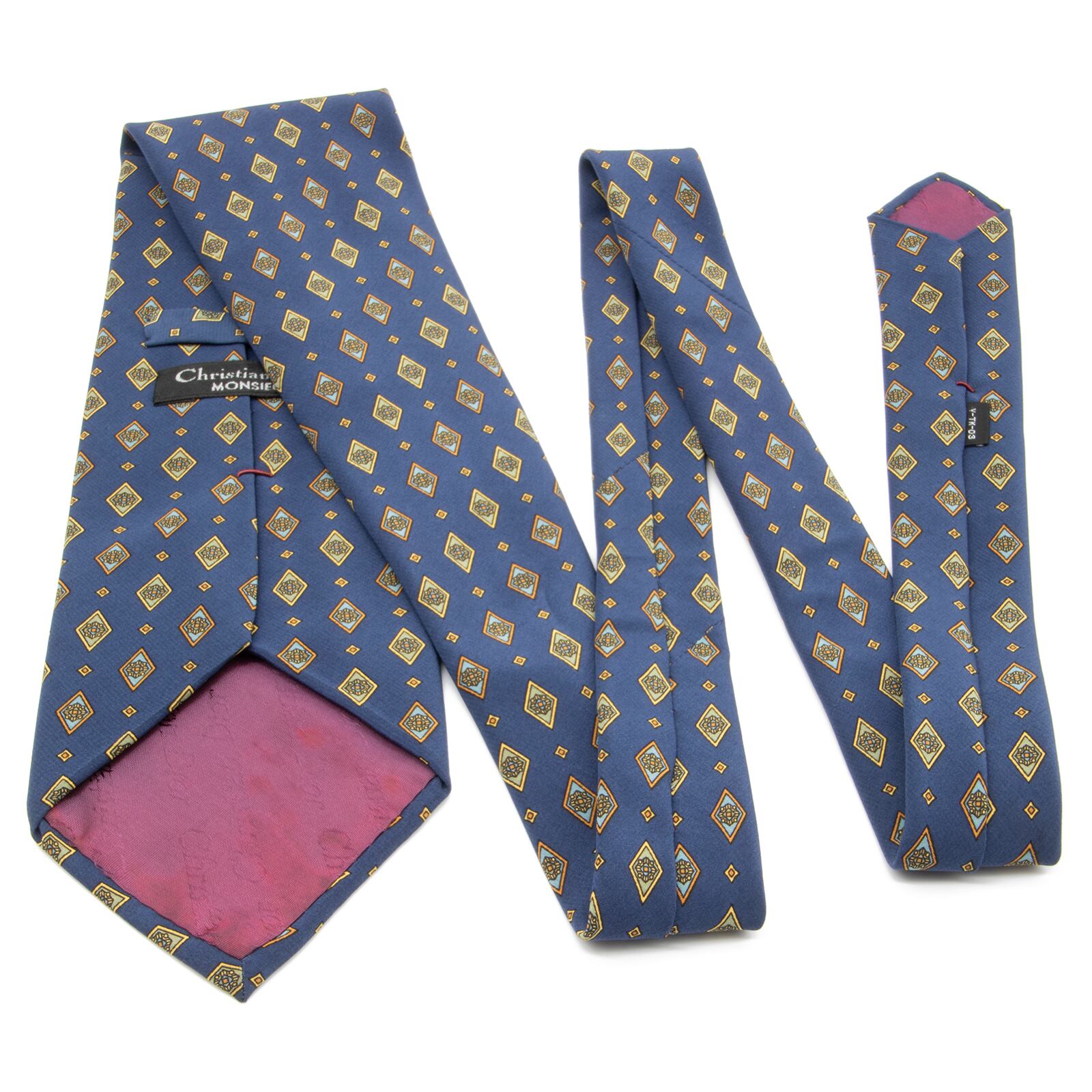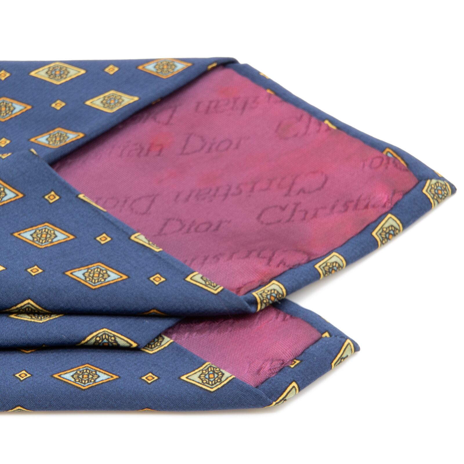 送料無料 ディオール ネクタイ レギュラータイ シルク 青 ブルー 黄色 イエロー オレンジ ビジネス カジュアル ブランド レア 綺麗 N406