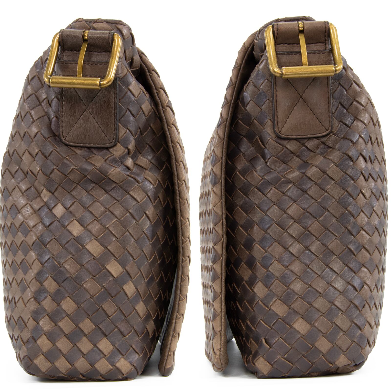 本物 送料無料 ボッテガ ショルダーバッグ メッセンジャーバッグ メンズ イントレチャート 茶色 ブラウン 斜め掛け A4対応 鞄 バック L143