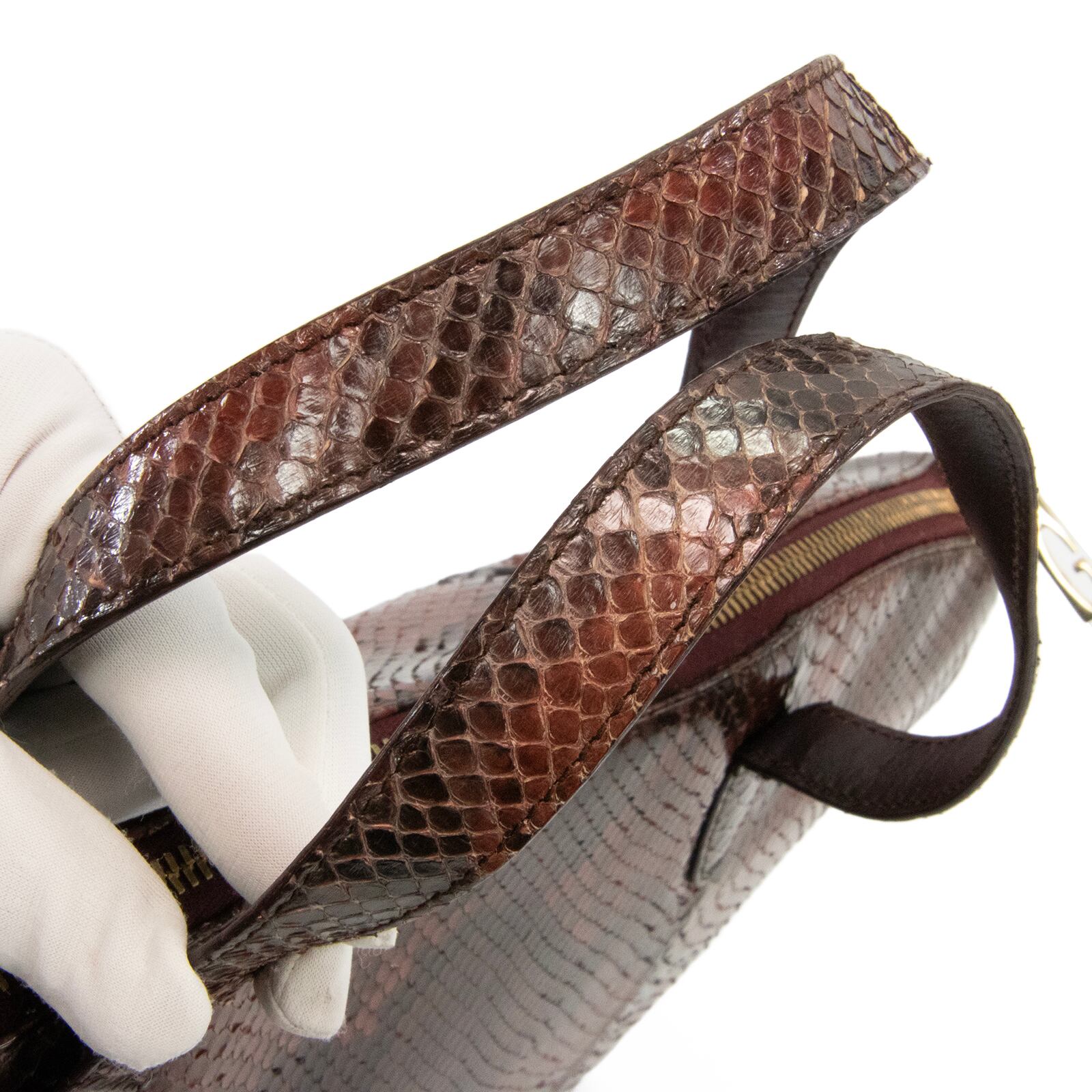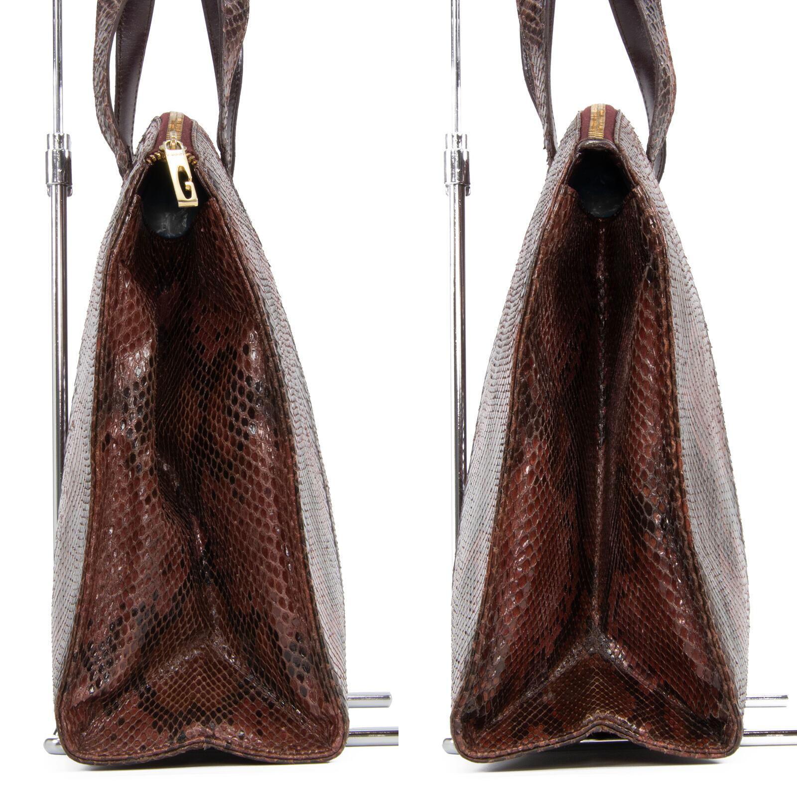本物 送料無料 オールドグッチ ハンドバッグ メンズ レディース パイソン 茶色 ブラウン 最高級 自立可能 かっちり 綺麗 鞄 バック L148