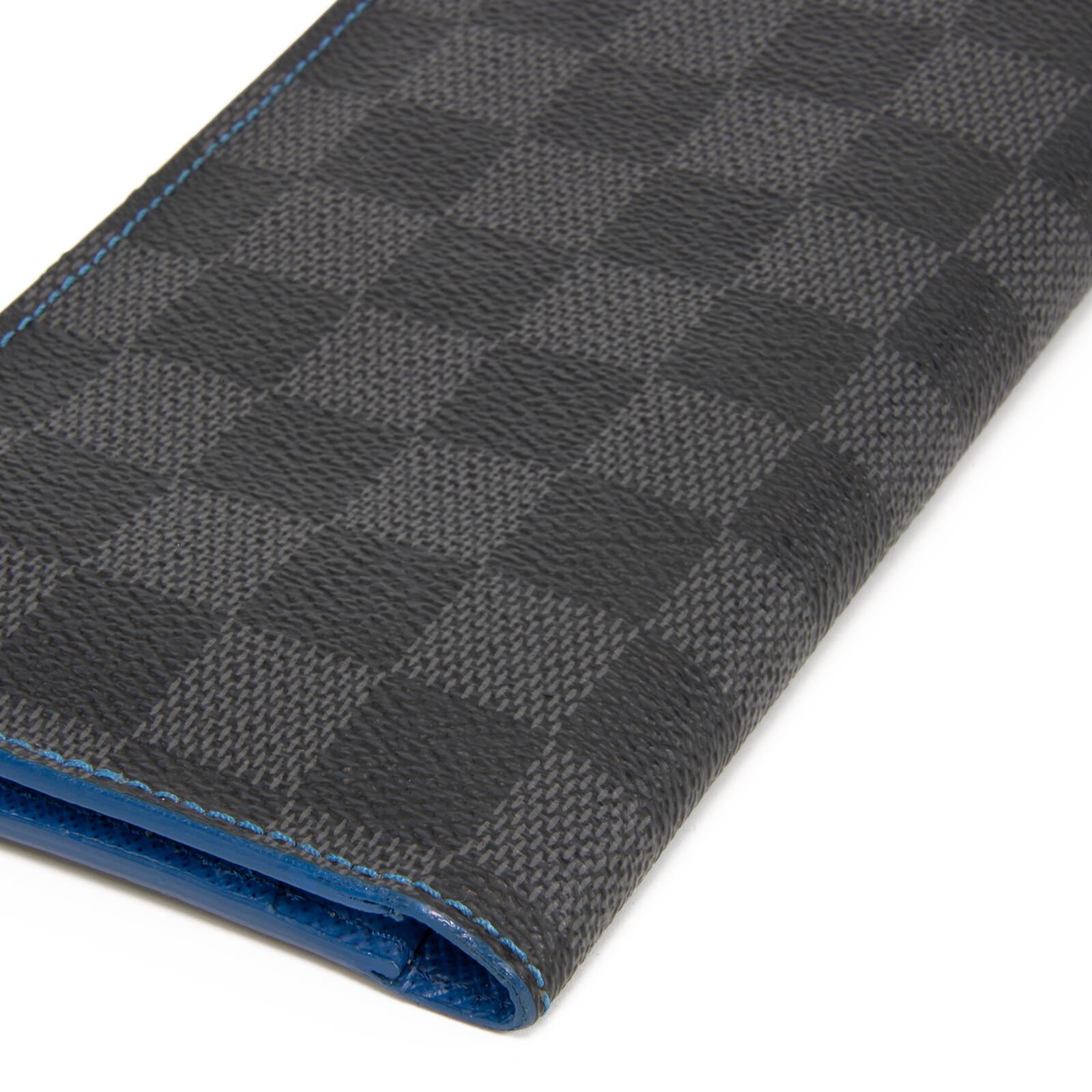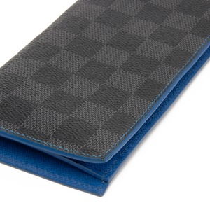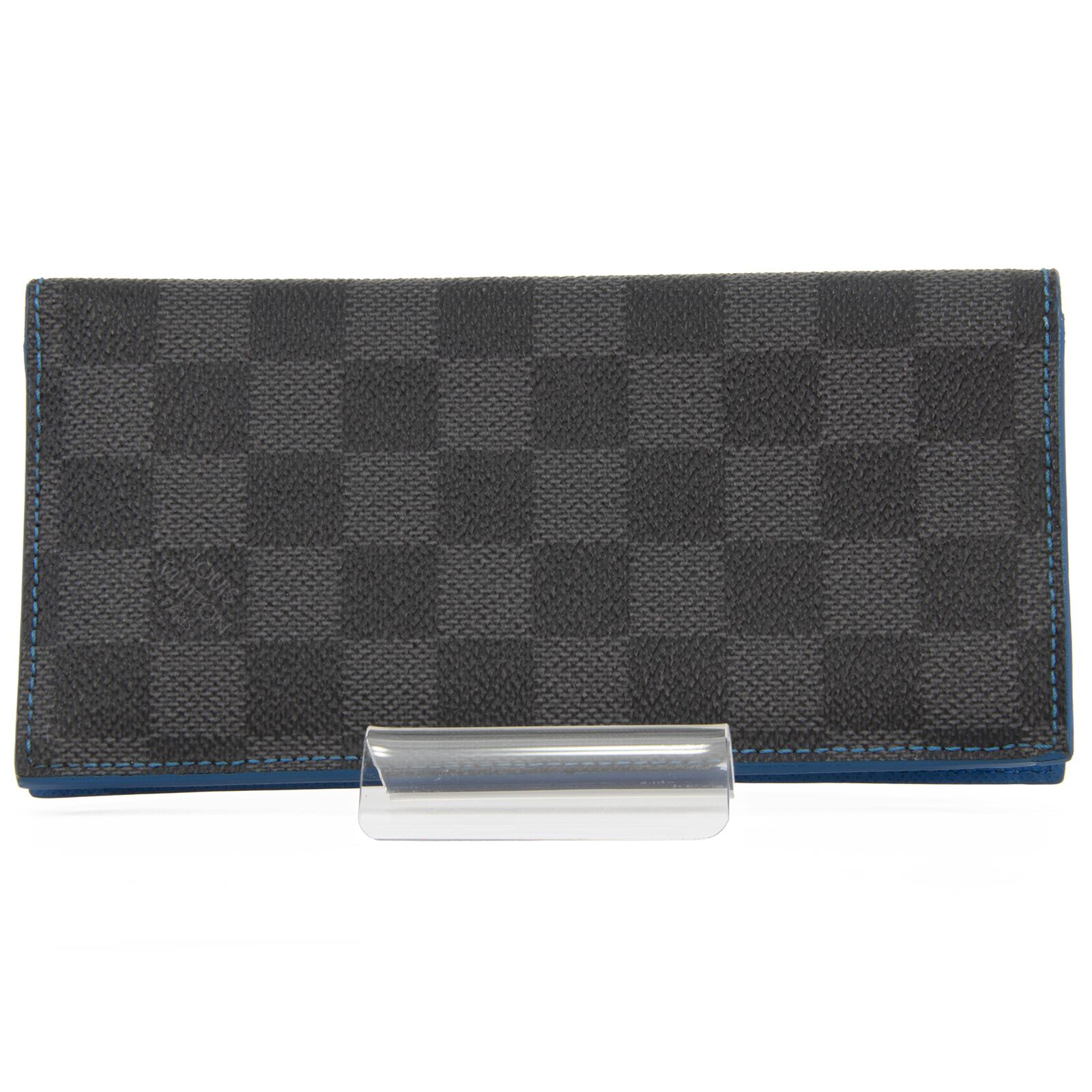 本物 送料無料 ヴィトン 長財布 二つ折り財布 メンズ アレクサンドルNM ダミエ グラフィット 黒 グレー 青 レア ロゴ スリム 綺麗 D181